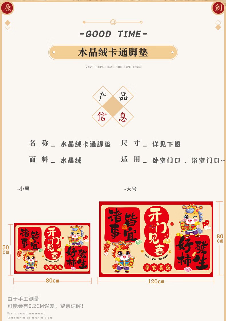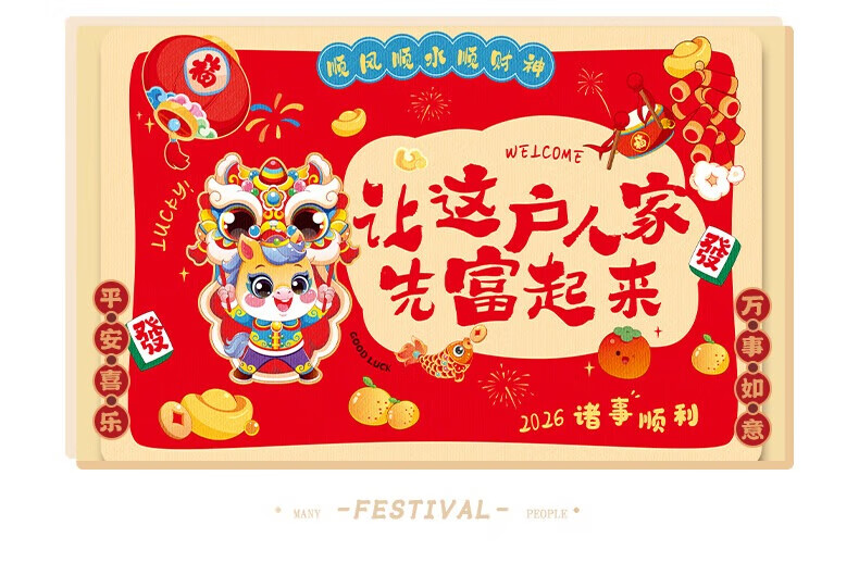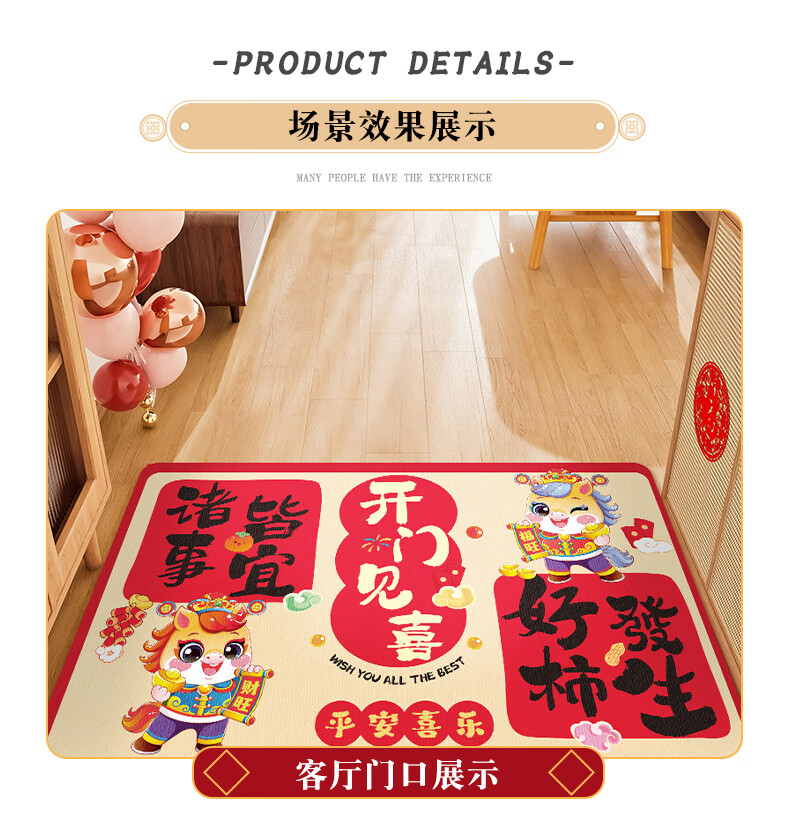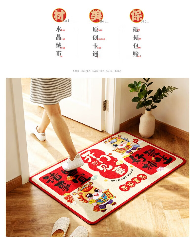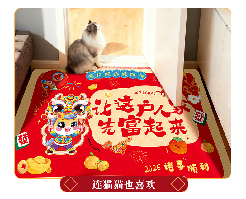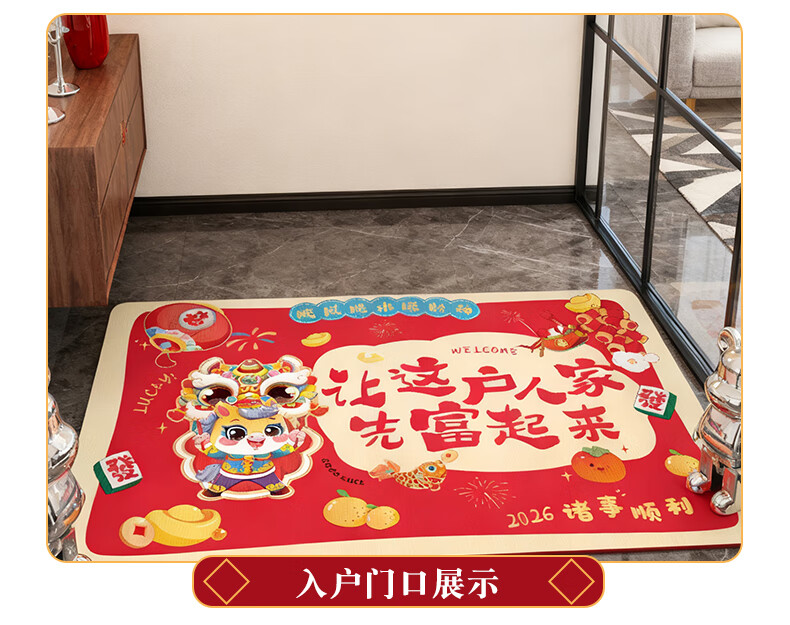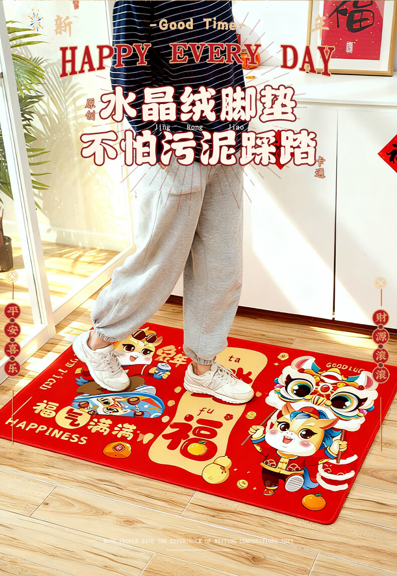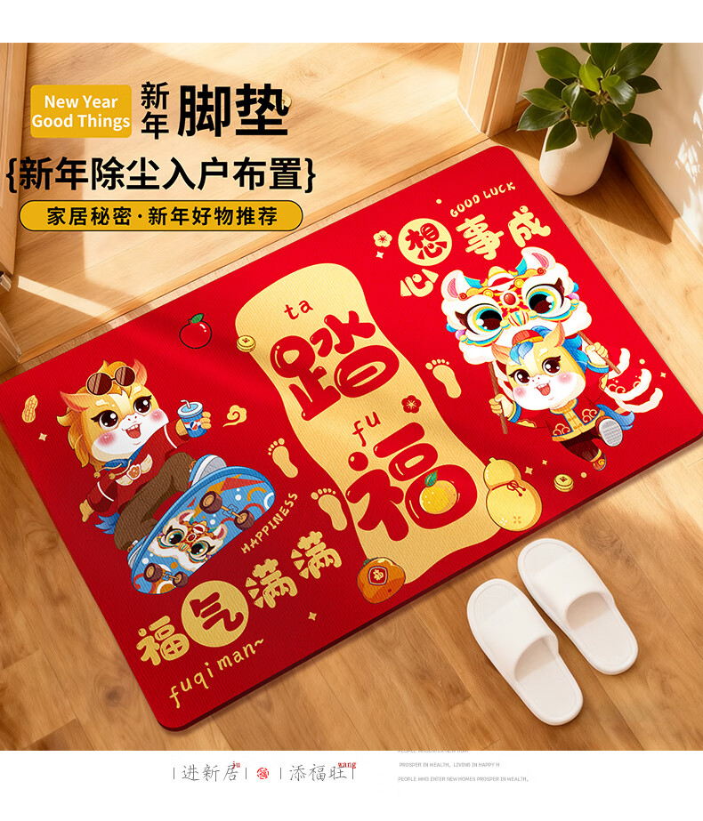 2026新款脚垫入户地垫喜庆红色进门防滑地垫新年民俗布置 新年踏福(50*80)