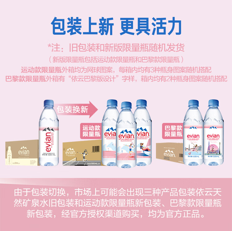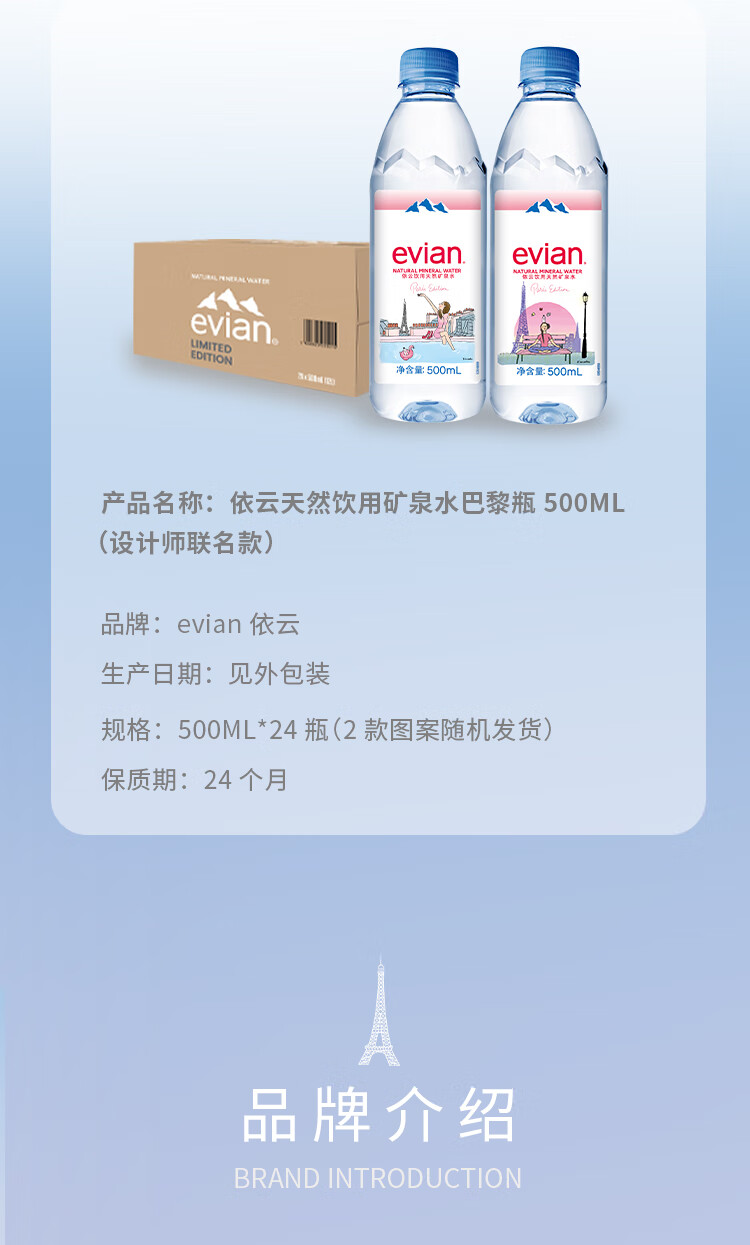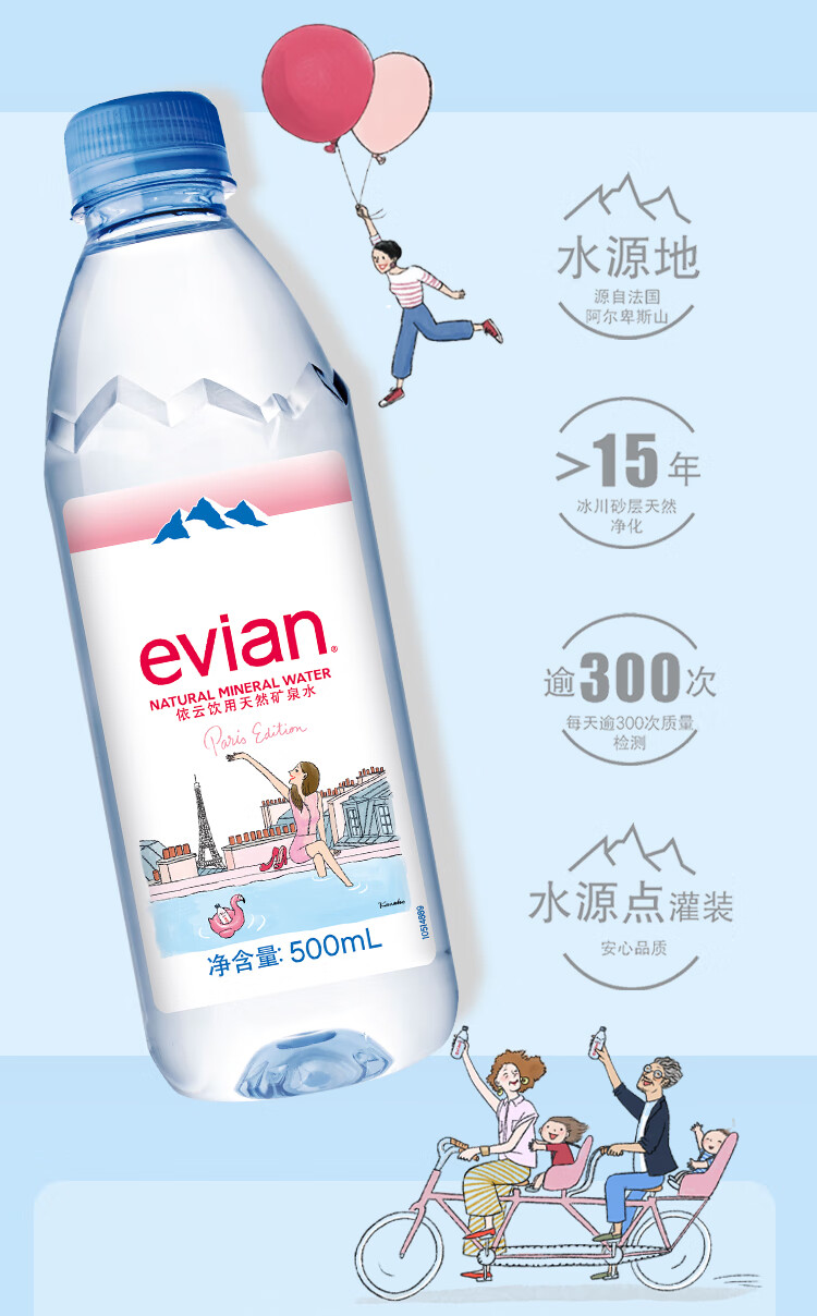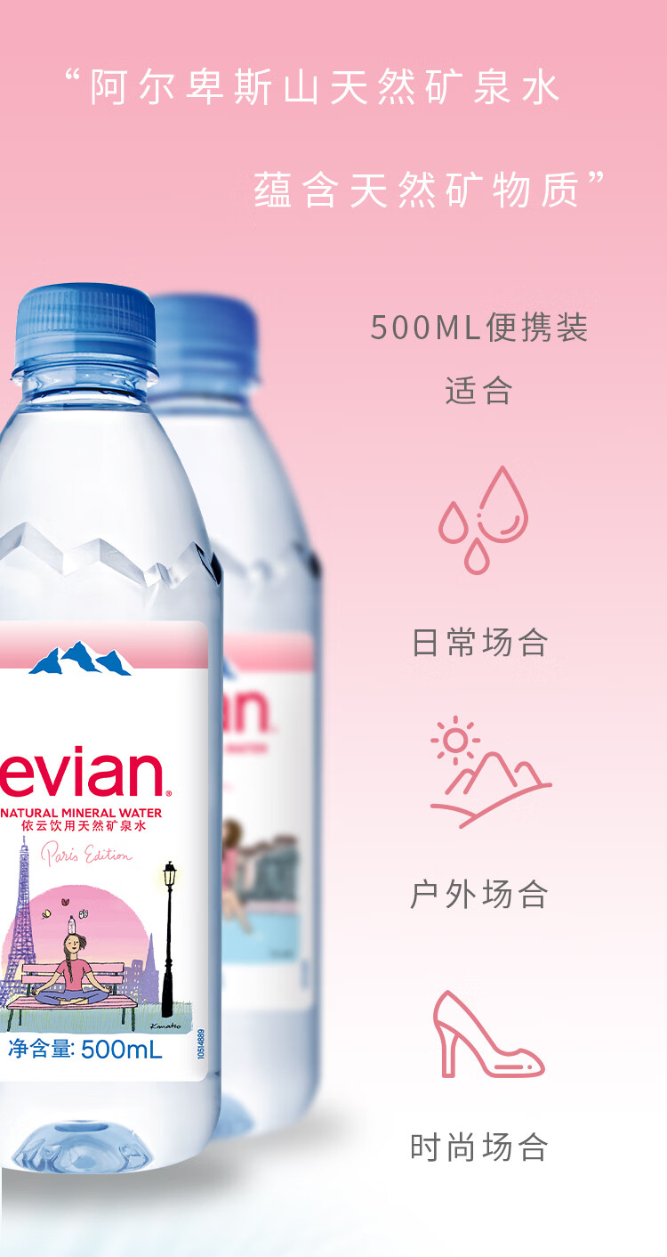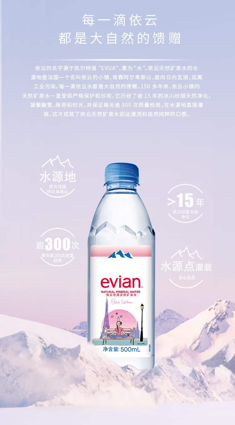 依云(evian)矿泉水 500ml*24瓶 饮用水 高端矿泉水 法国进口 会议商务用水