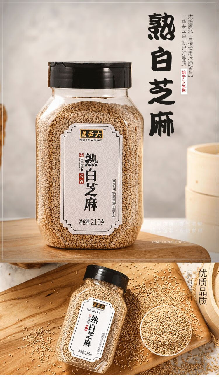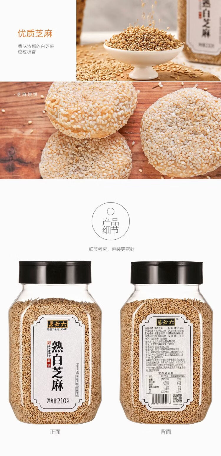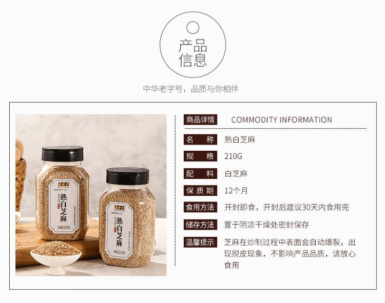 六必居 熟白芝麻 210g 香辛料 中华老字号