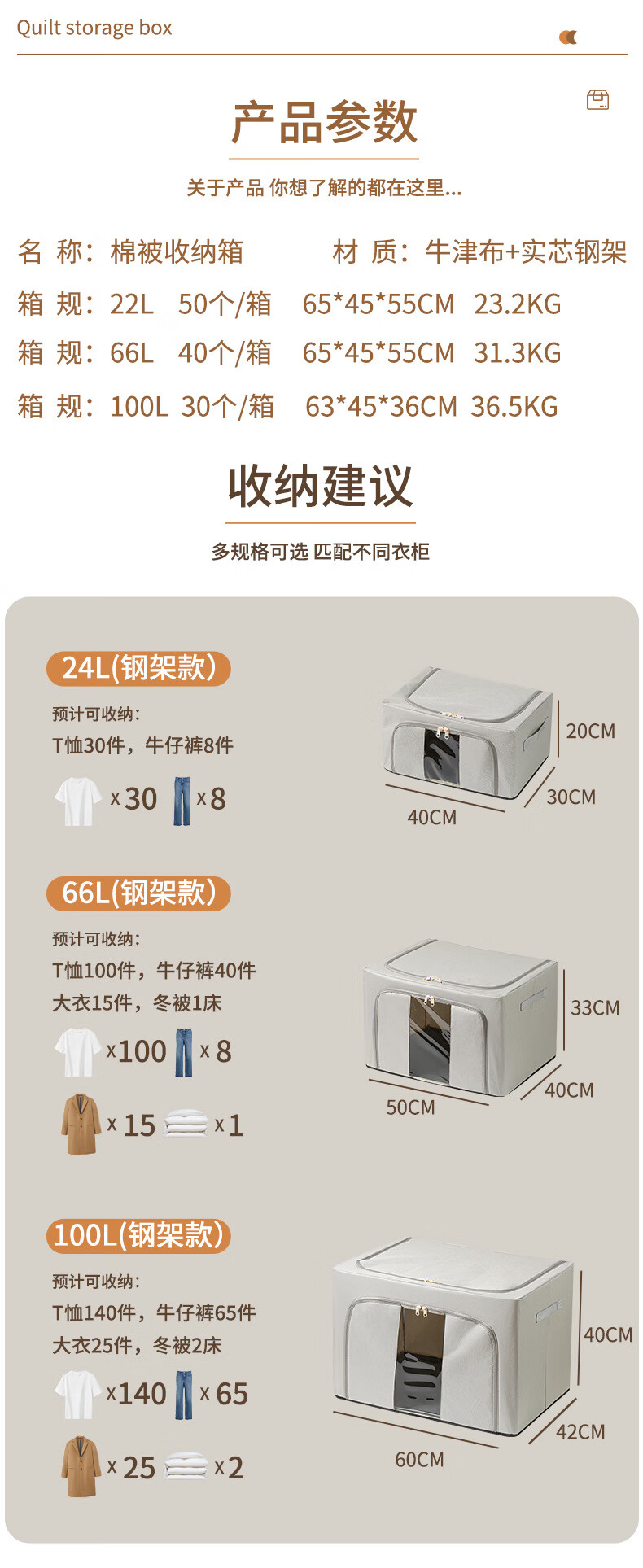 换季衣物收纳箱加大加厚羽绒服棉被收纳大容量牛津布可折叠百纳箱 大容量百纳箱 50*40*33cm 【66升】1个