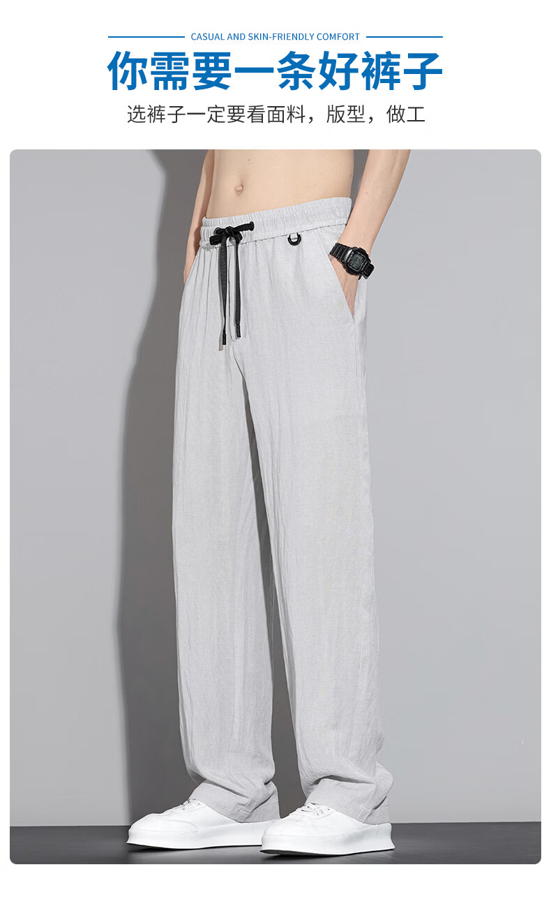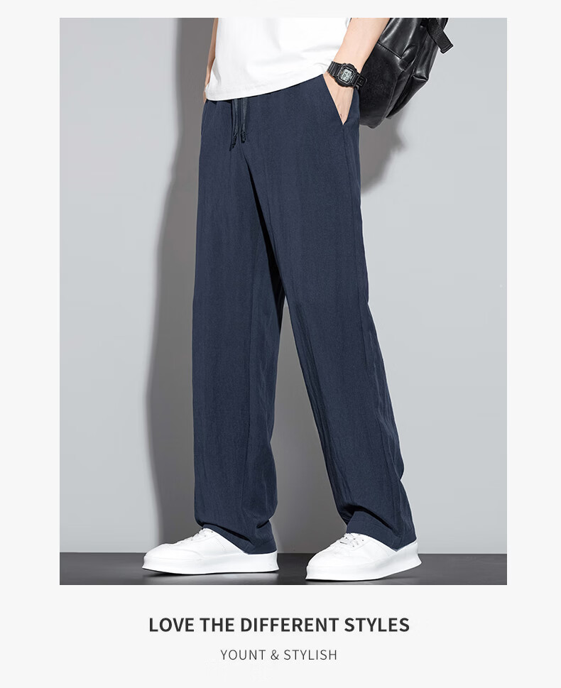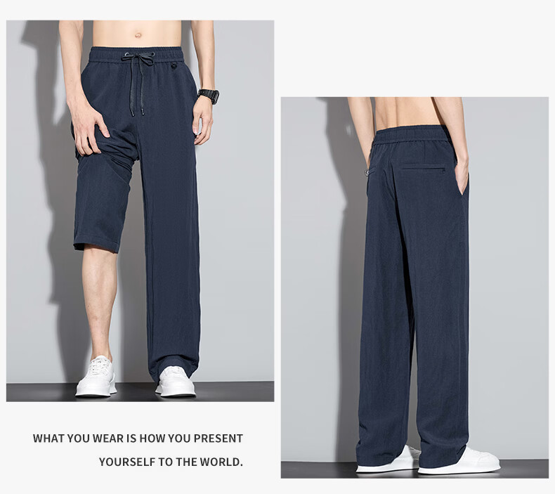 真维斯休闲裤男春夏季宽松百搭直筒裤男2026新款透气垂感舒适冰丝裤子男 藏蓝 M