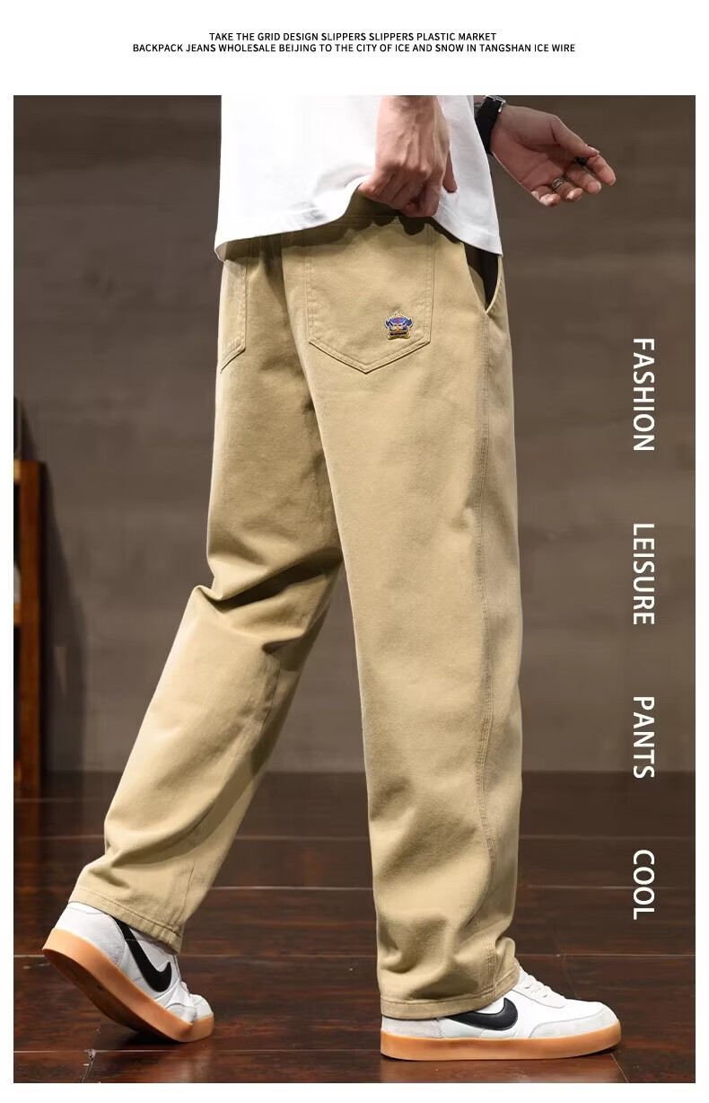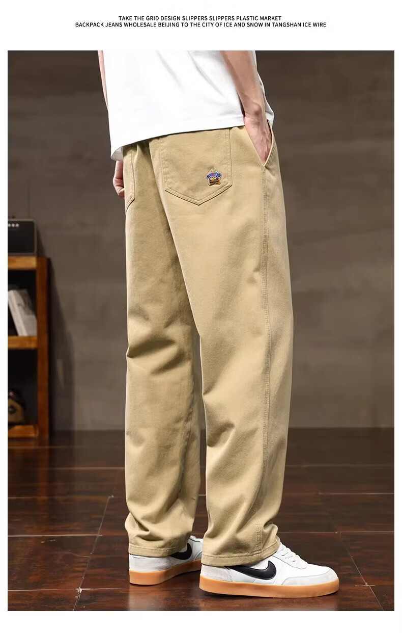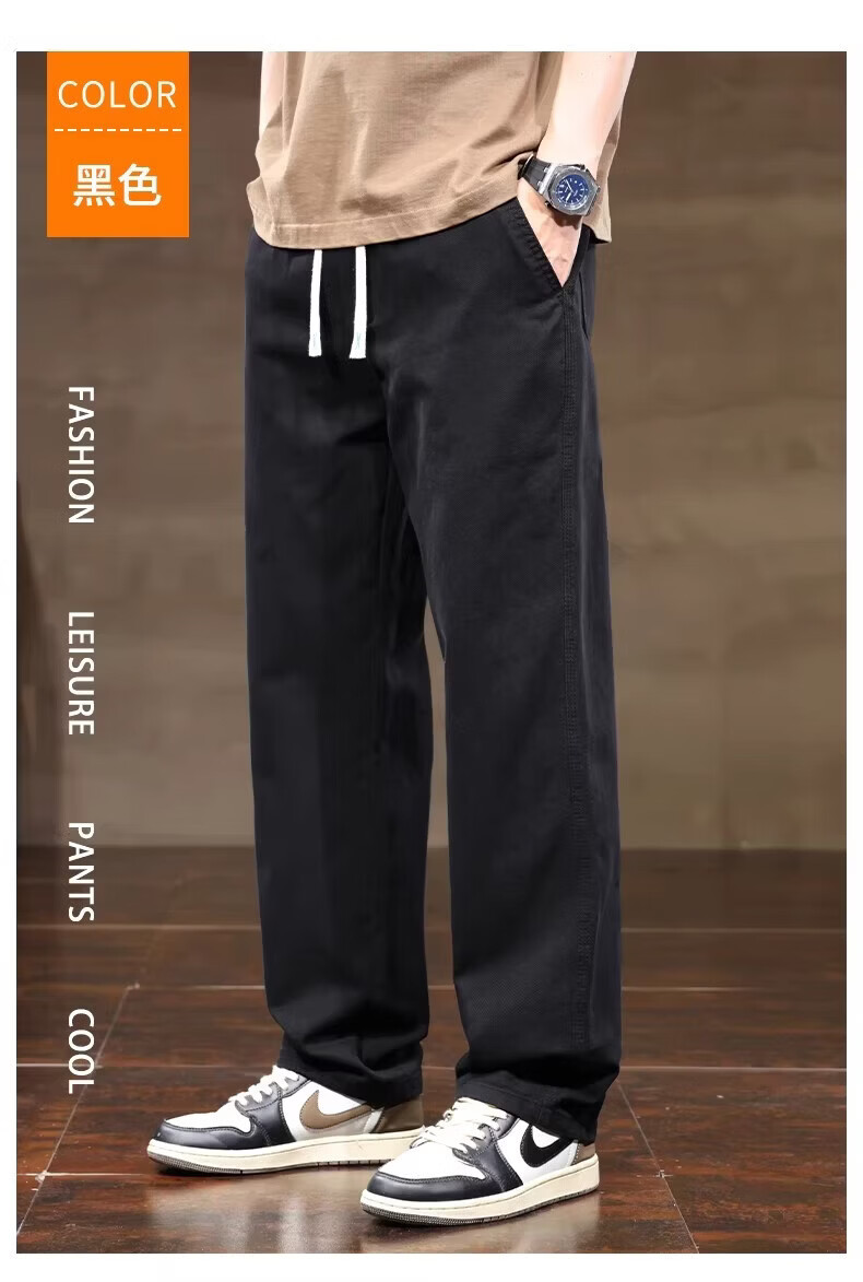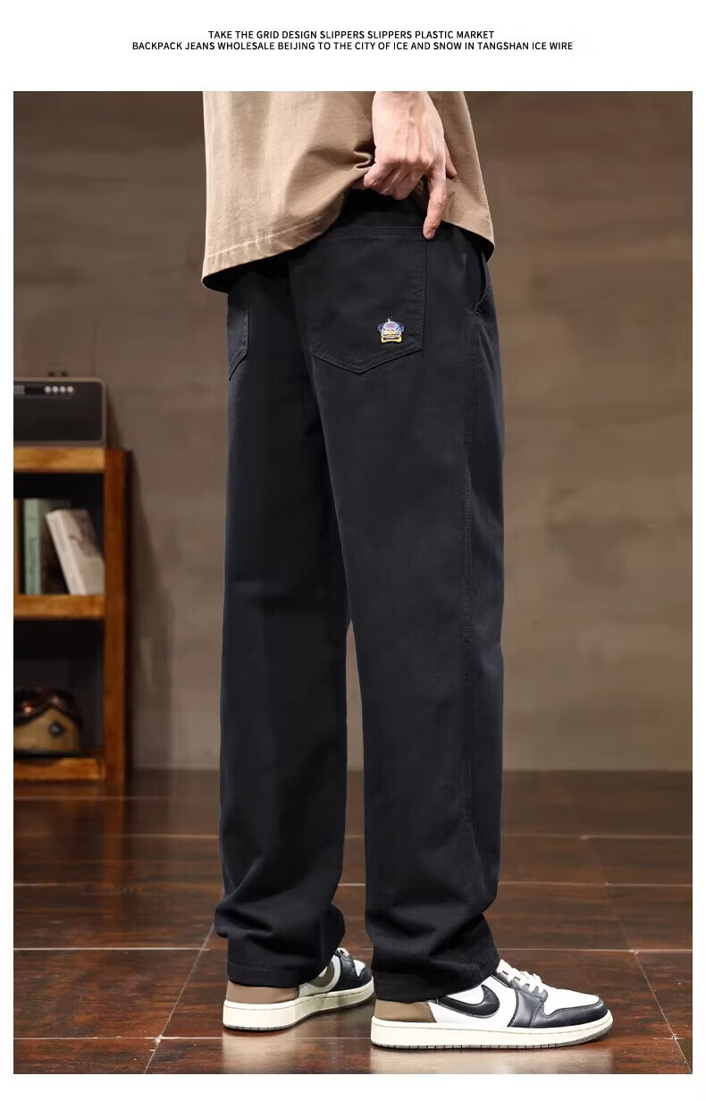 真维斯(Jeanswest)2026春夏季休闲裤子男士新款潮牌宽松纯棉直筒裤男生阔腿工装长裤 黑色 3XL