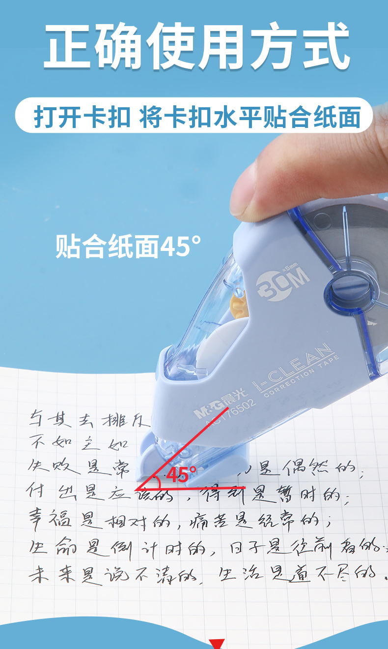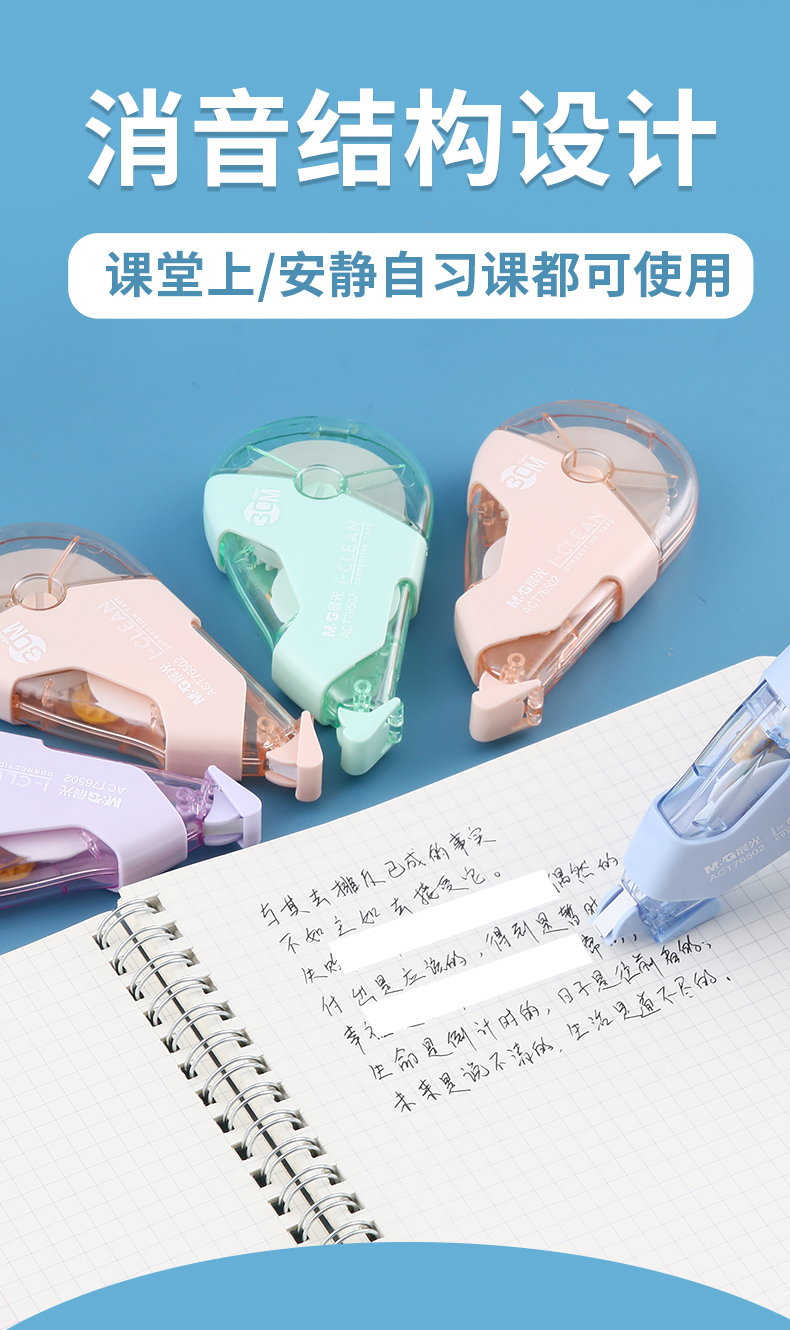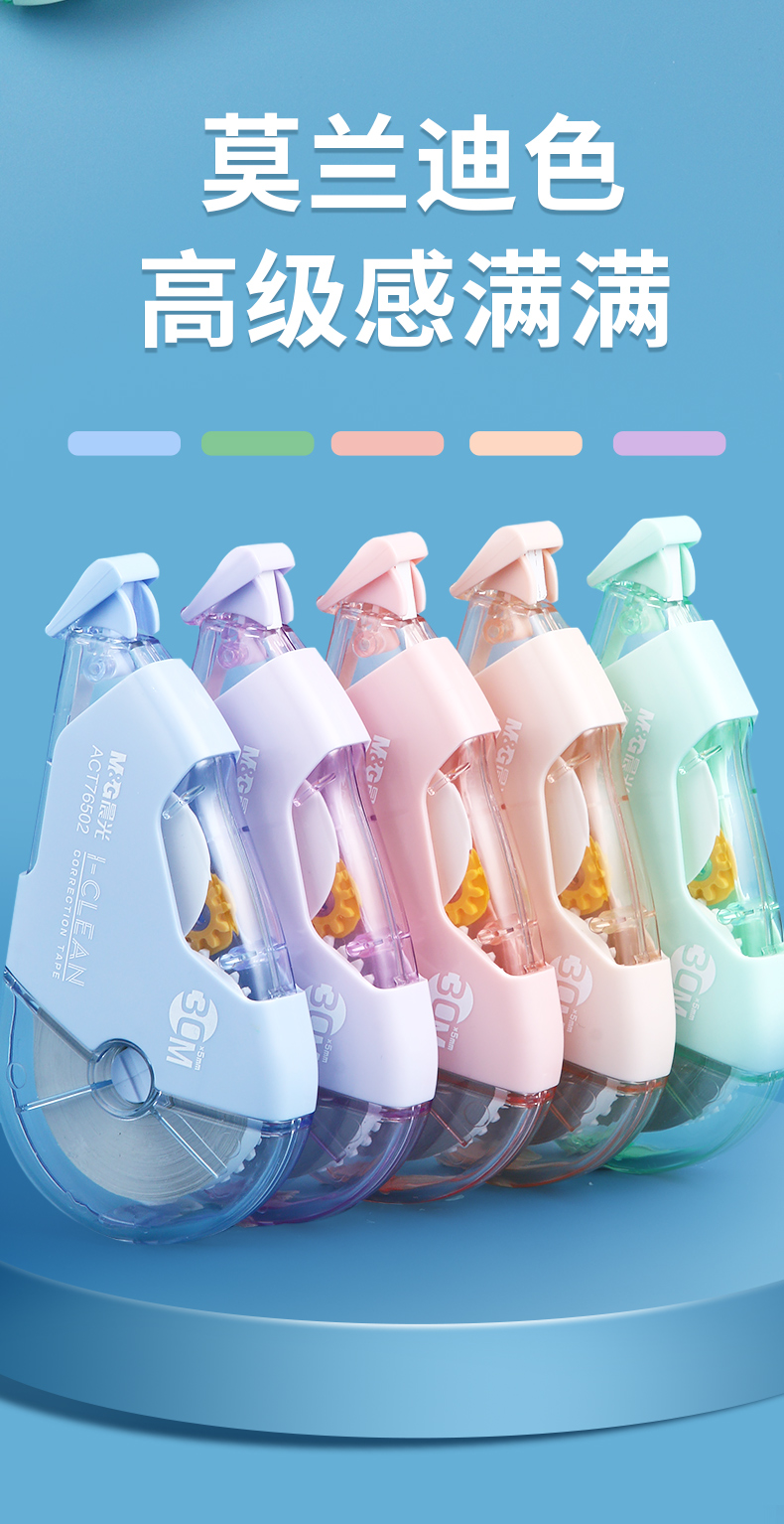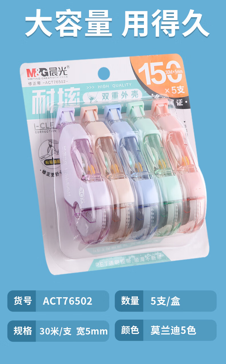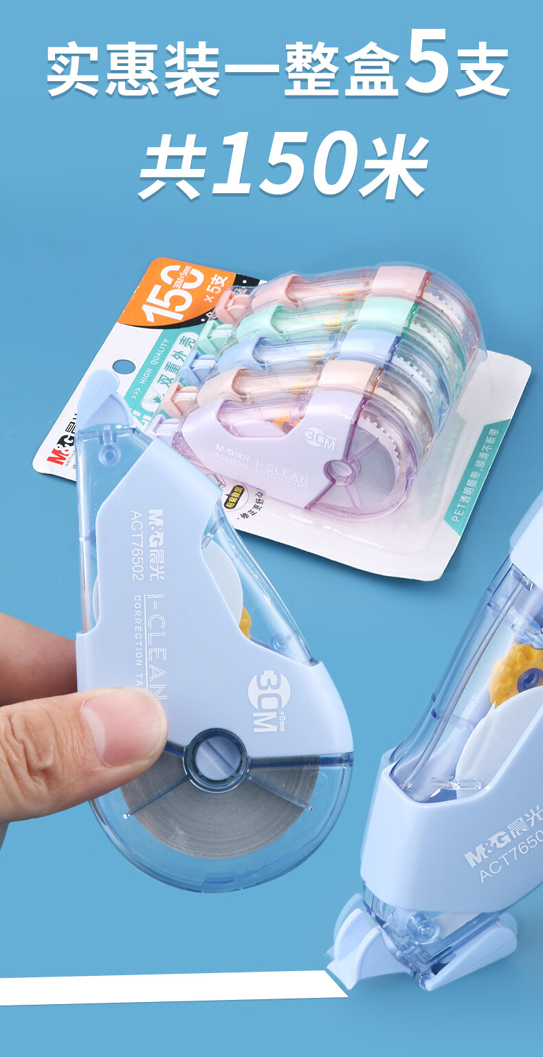 晨光(M&G)修正带大容量不断带静音涂改带学生用莫兰迪色系ins可爱女生高中生改正带初中生改字带 【热销款】蓝白加量款 5支装/共150米
