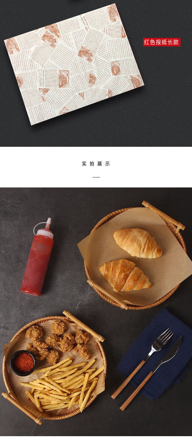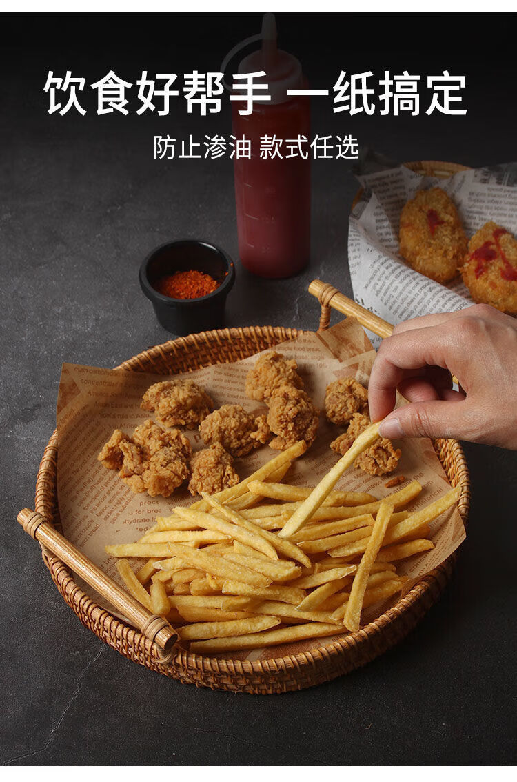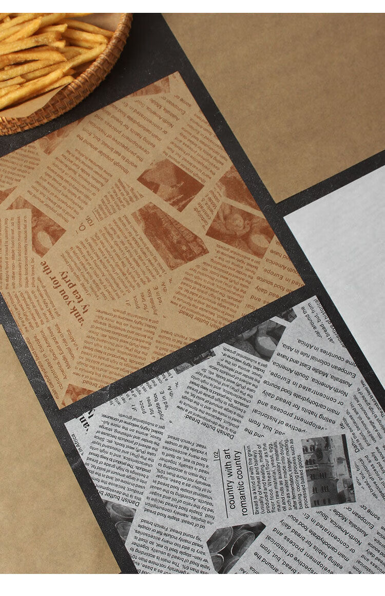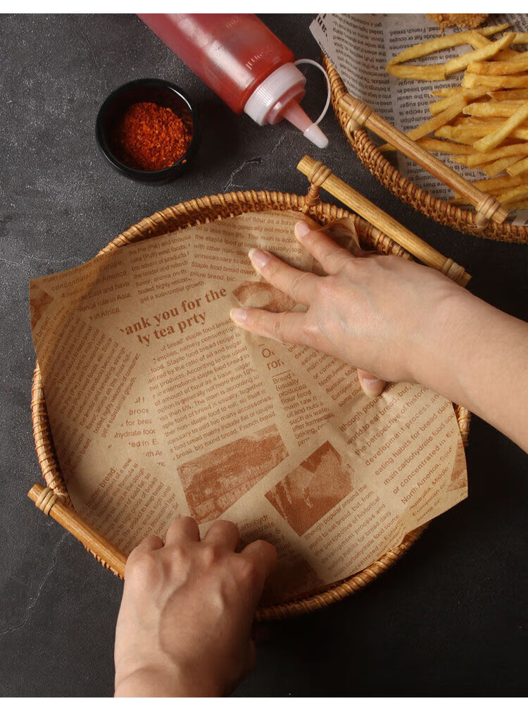 油炸垫纸吸油纸食物专用点心纸烘焙托盘纸油纸英文报纸隔油纸 22cm【食物垫纸】 一百张【原木色加厚款】