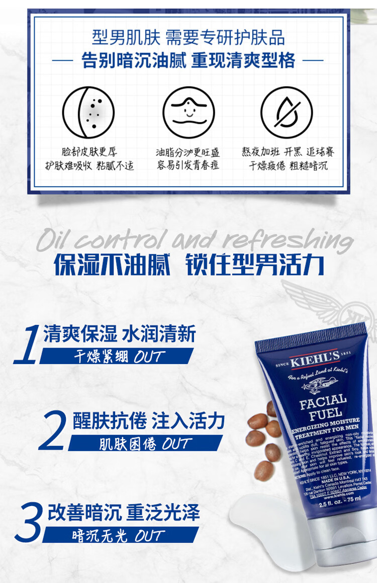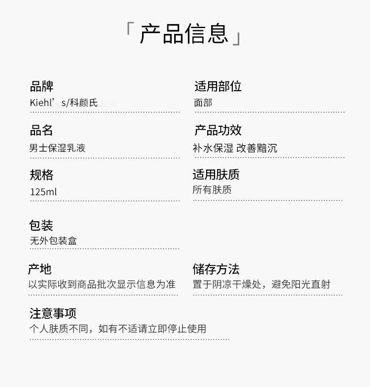 Kiehl's科颜氏男士保湿乳液125ml控油清爽滋润霜补水活力改善暗沉送男友 男士保湿乳液125ml*1(23年5月产 国际5年效期)介意勿拍