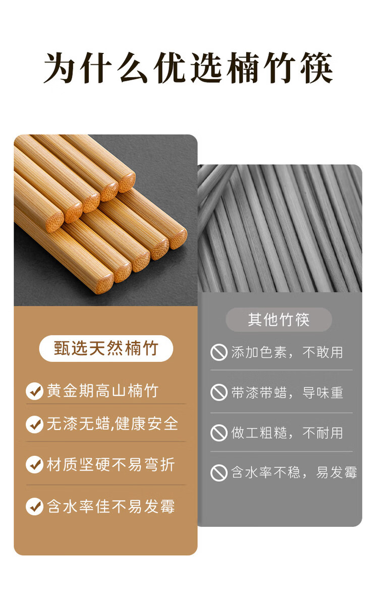 咏幻高端天然楠竹筷子家用高档新款抗菌防霉无漆无蜡中式木耐高温防滑 楠竹筷[30双装]无漆无蜡