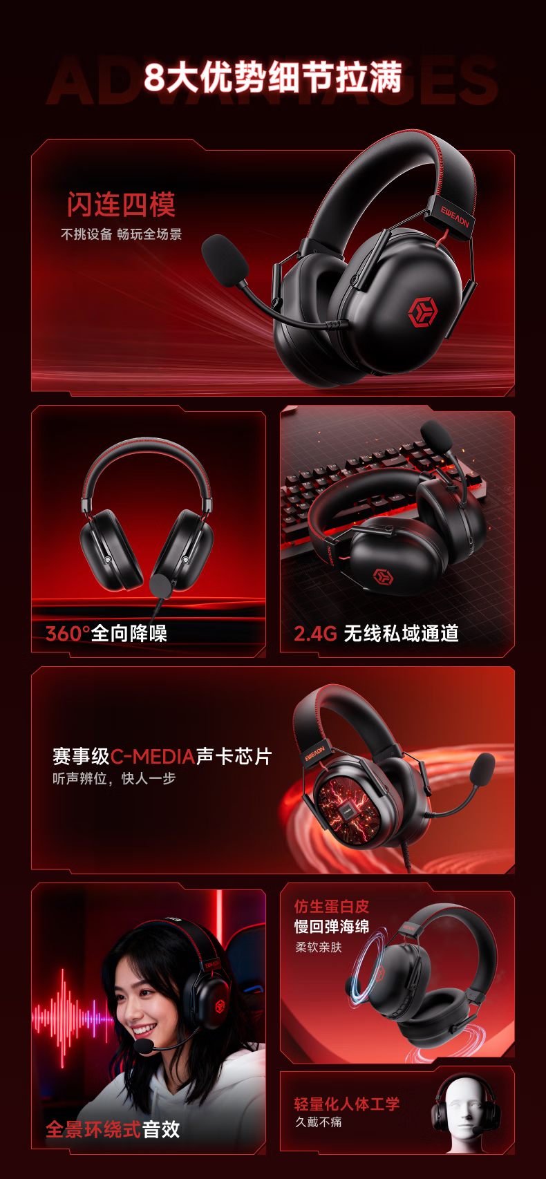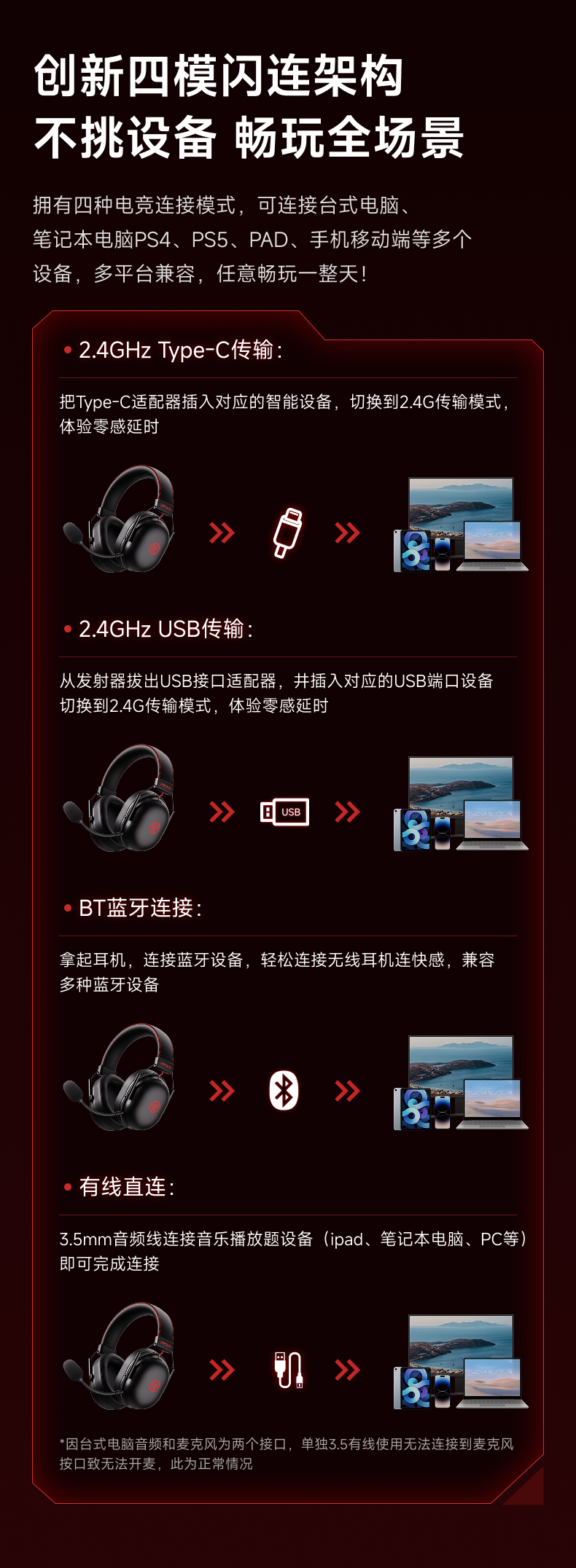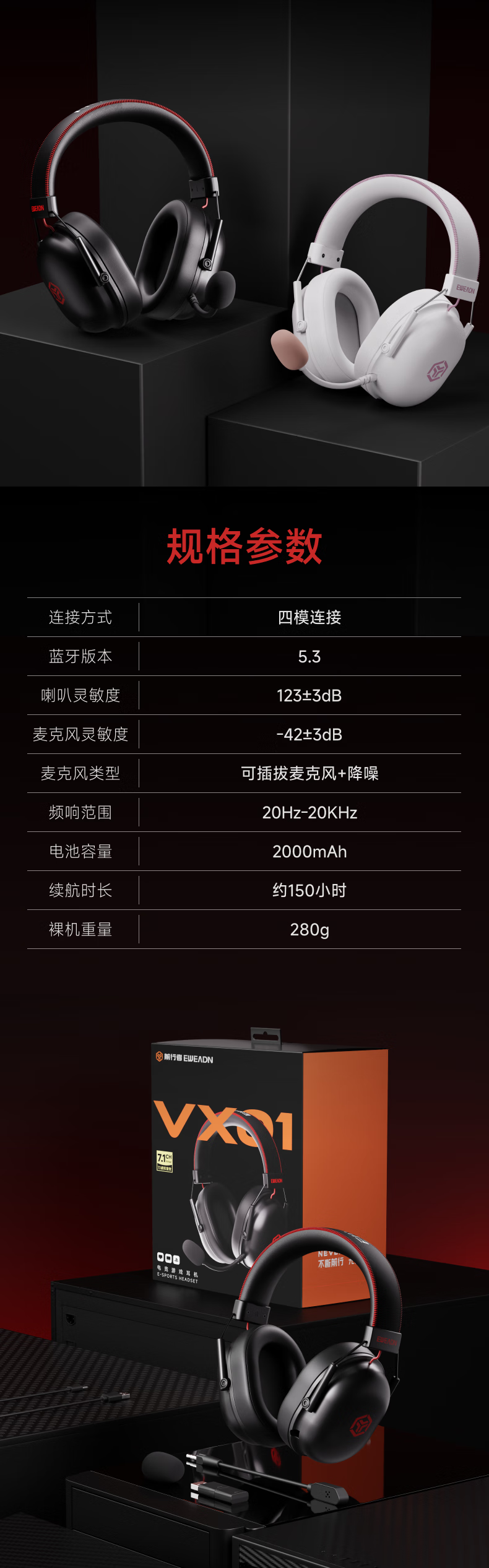 前行者(EWEADN)VX01新款电竞耳机四模头戴式无线蓝牙有线吃鸡游戏耳麦电脑台式 白粉【单USB口】7.1声道-有线版