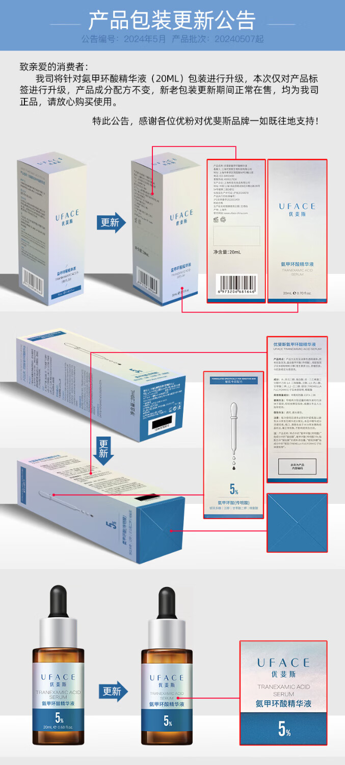 优斐斯(uface)5%氨甲环酸+4%烟酰胺精华液提亮肤色淡化色沉礼盒装情人节礼物 高阶双星2套