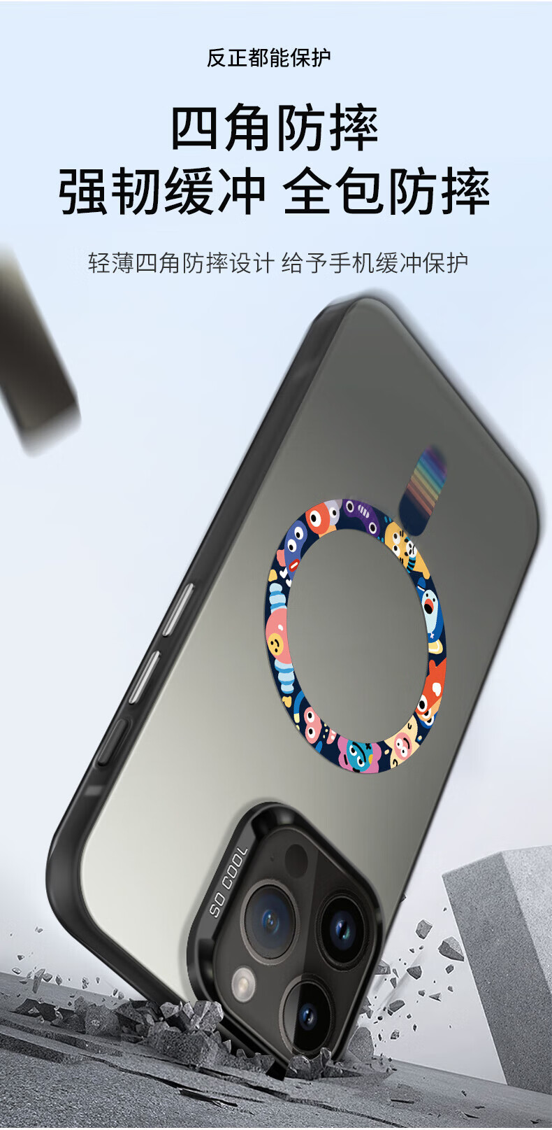 霸时代适用 iPhone16promax手机壳苹果16promax保护套全包磁吸超薄简约创意卡通彩银防摔女男款外壳 彩银imd磁吸【小怪兽派对】 苹果16promax