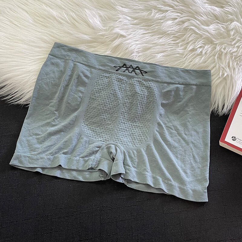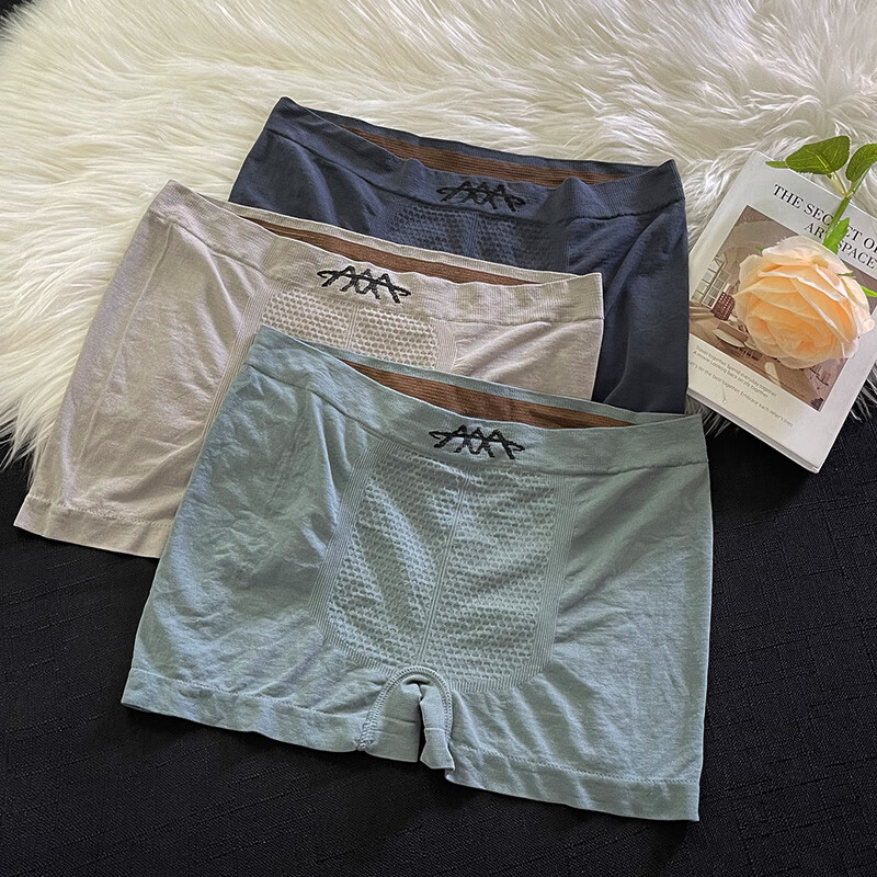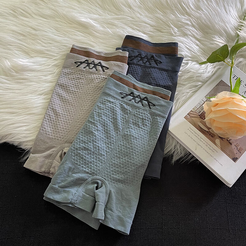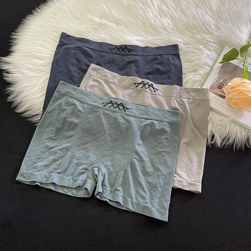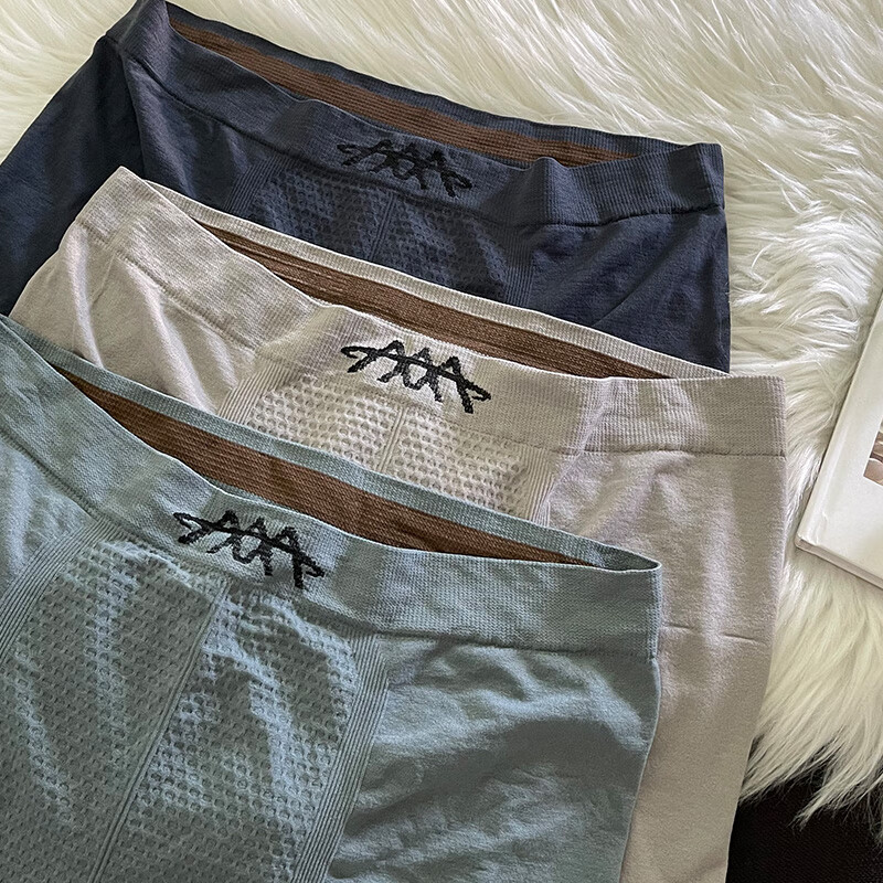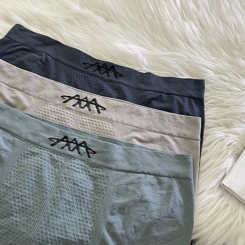 3条装男士内裤中腰透气舒适蜂巢平角裤无缝裸感高弹力大码短裤衩 灰色+蓝色+深蓝- 3条 2XL推荐140-170斤
