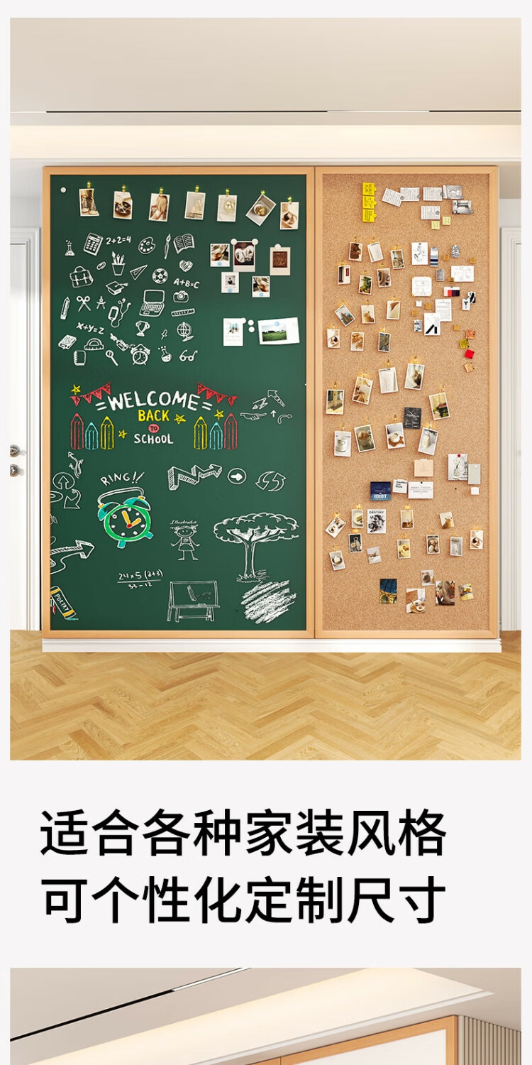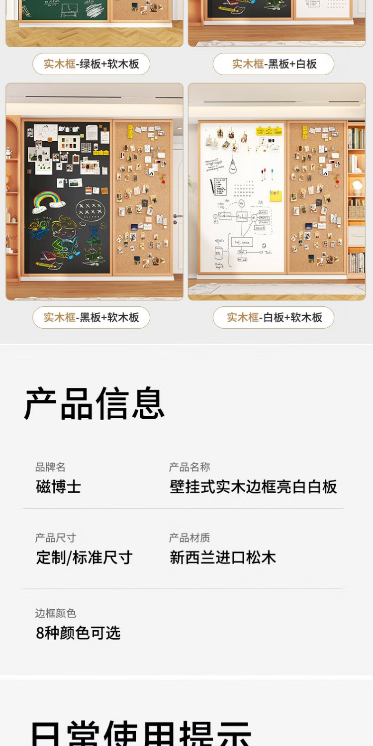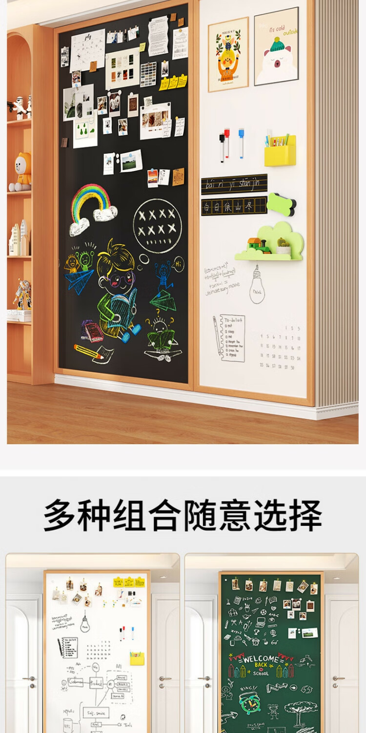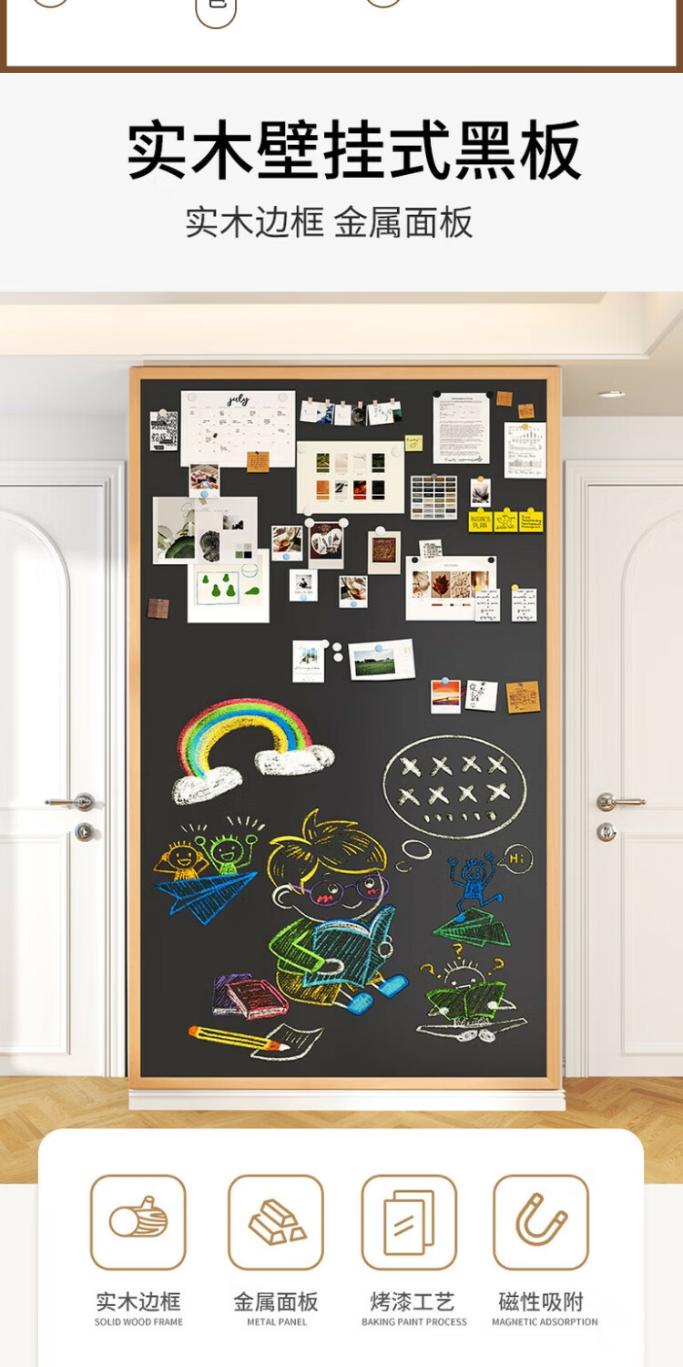 磁博士ciboshi实木框磁性挂墙式大白板墙磁吸儿童家用画板涂鸦照片墙面走廊玄关学生教学粉笔可擦写字板黑板定制 白板【棕色沙比利色】框 90*180cm