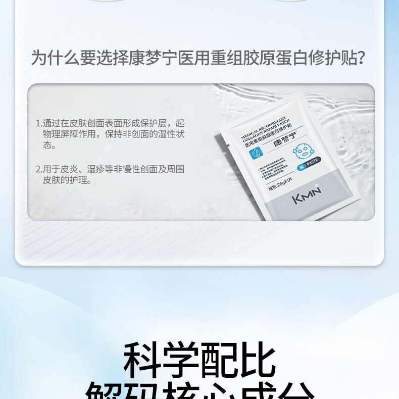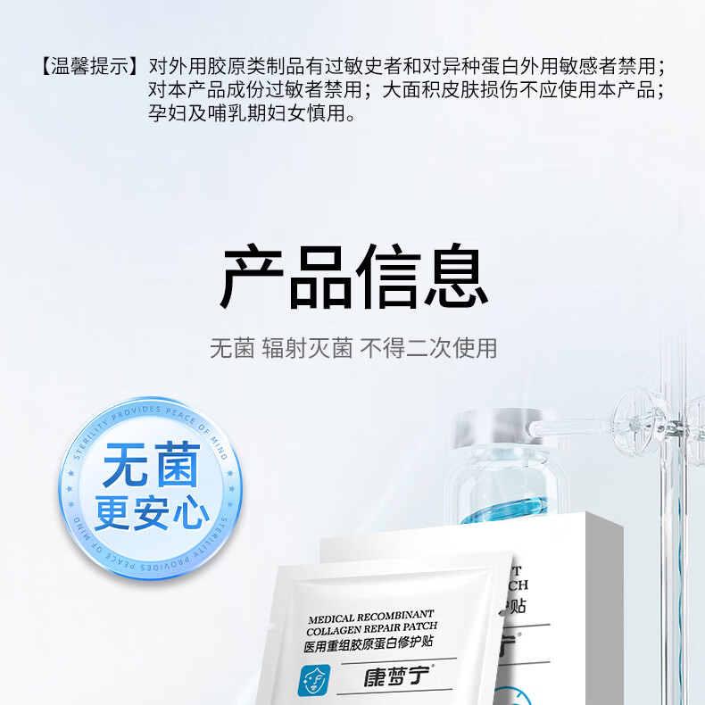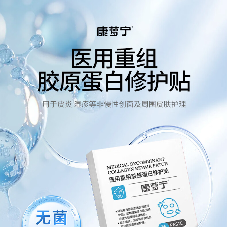 康梦宁医用重组胶原蛋白修护贴敷料修护冷敷贴械字号修复补水保湿面膜 医用面膜3盒 深度长效补水
