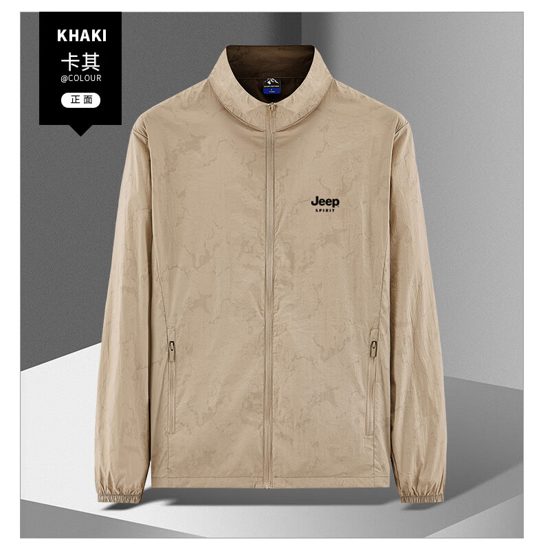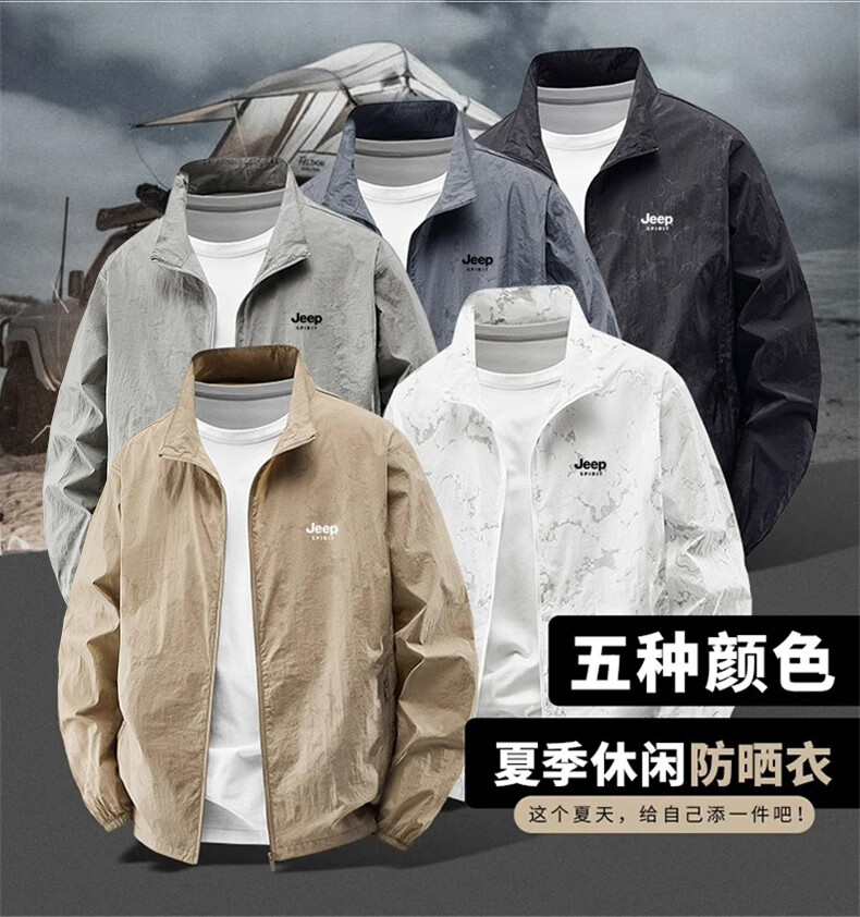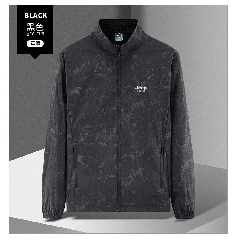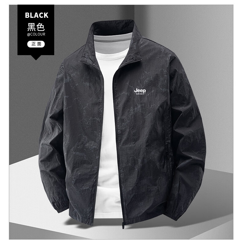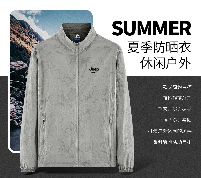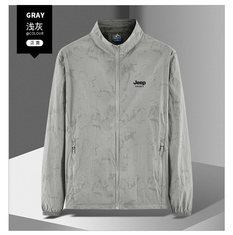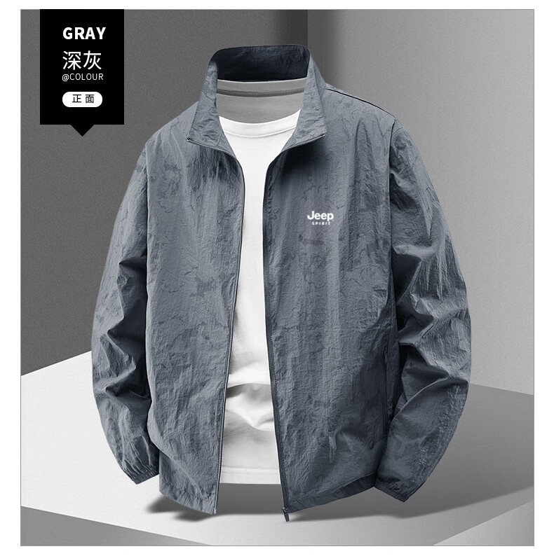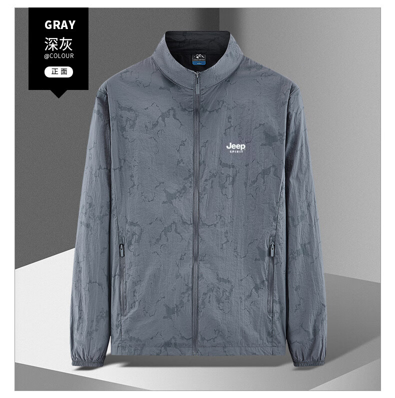 JEEP SPIRIT吉普户外防晒衣男夏季薄款透气皮肤衣男宽松休闲防紫外线立领外套 深灰色(B) XL (建议120-135斤)