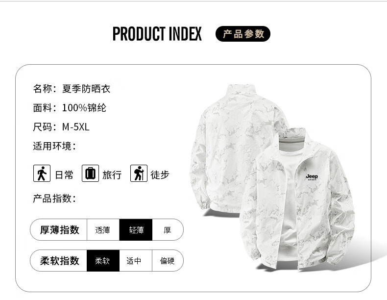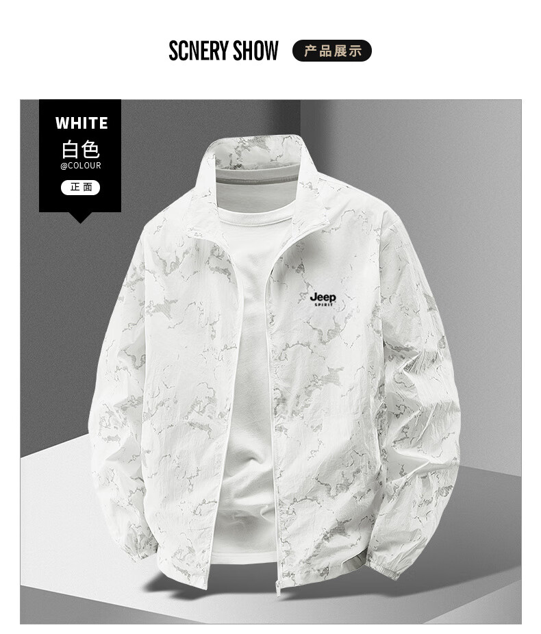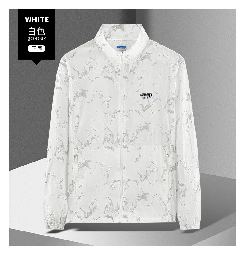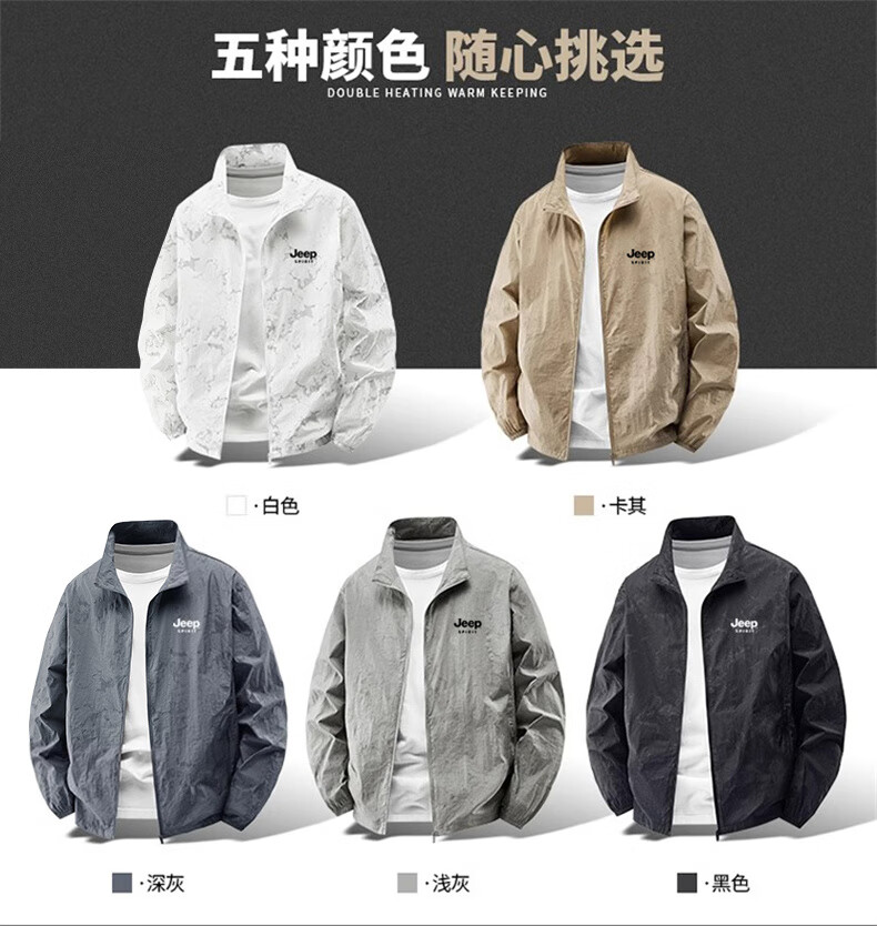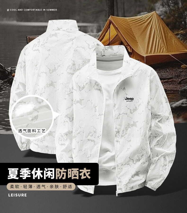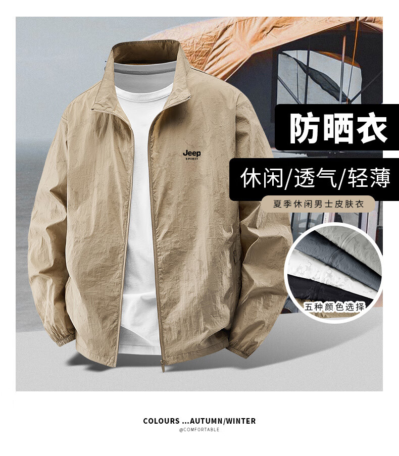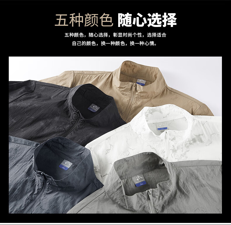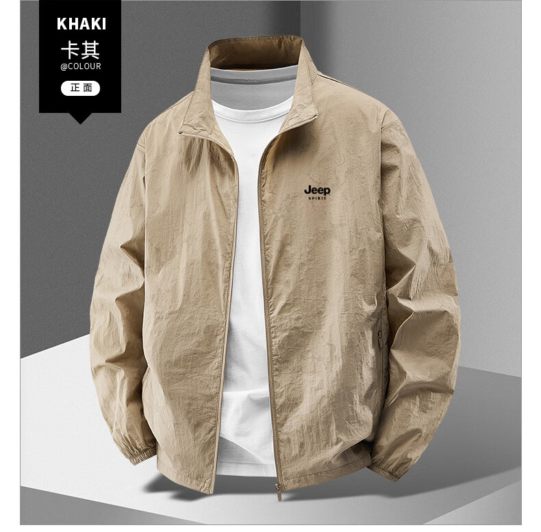 JEEP SPIRIT吉普户外防晒衣男夏季薄款透气皮肤衣男宽松休闲防紫外线立领外套 深灰色(B) XL (建议120-135斤)