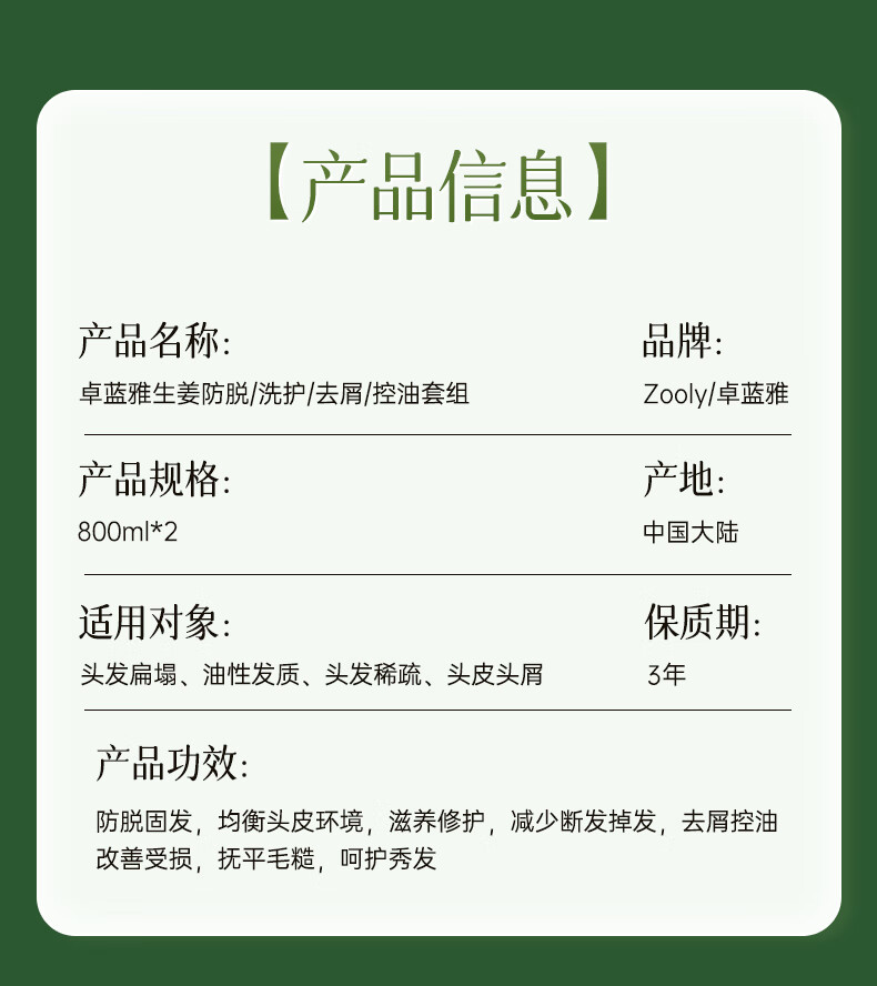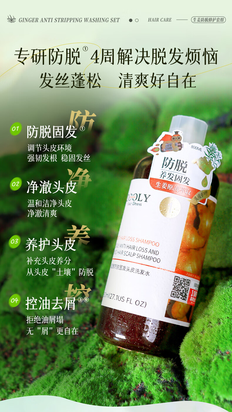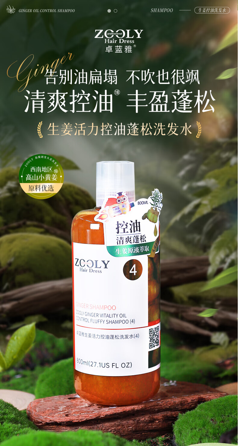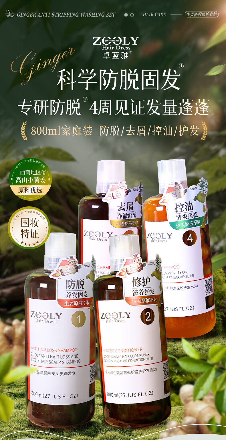 卓蓝雅(ZOOLY)洗发水800ml*2生姜控油防脱固发清洁去屑洗发水 防脱800ml洗发水+防脱800ml洗发水
