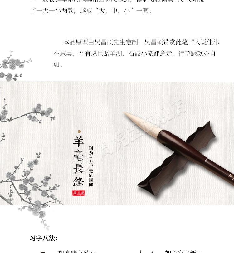 周虎臣上海周虎臣毛笔 吴昌硕定制羊毫长锋 行草 篆书 书法笔 单支装 直营 吴昌硕定制羊毫长锋大