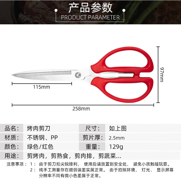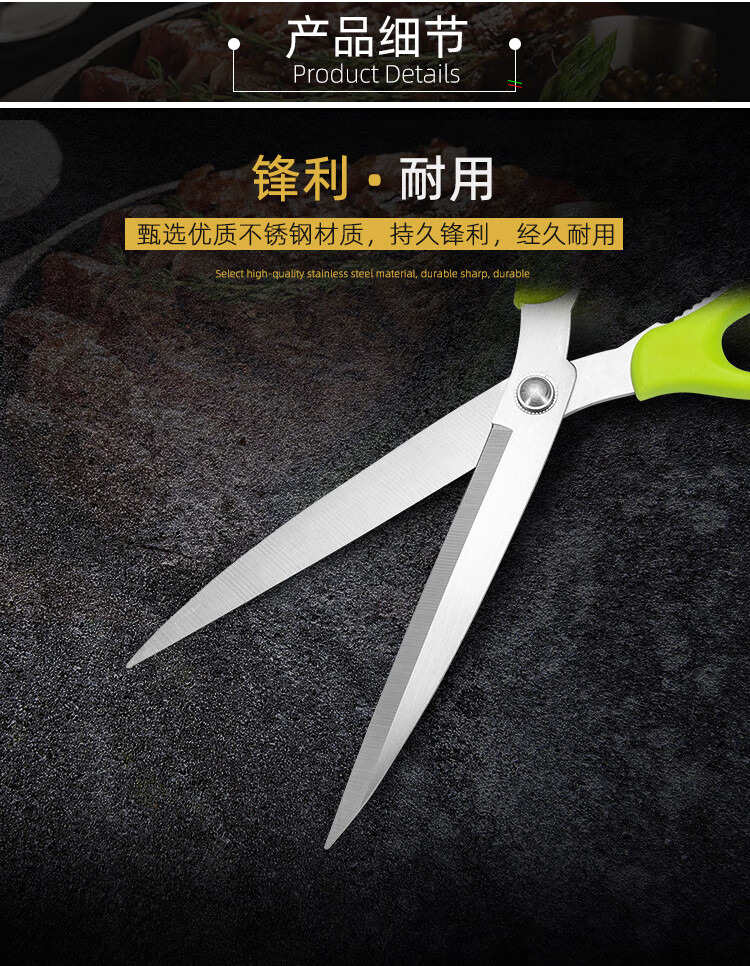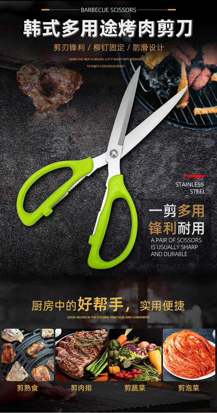 【甄选严选】烤肉剪刀家用鸡肉不锈钢厨房食用烧烤熟食厨剪牛排食 绿色