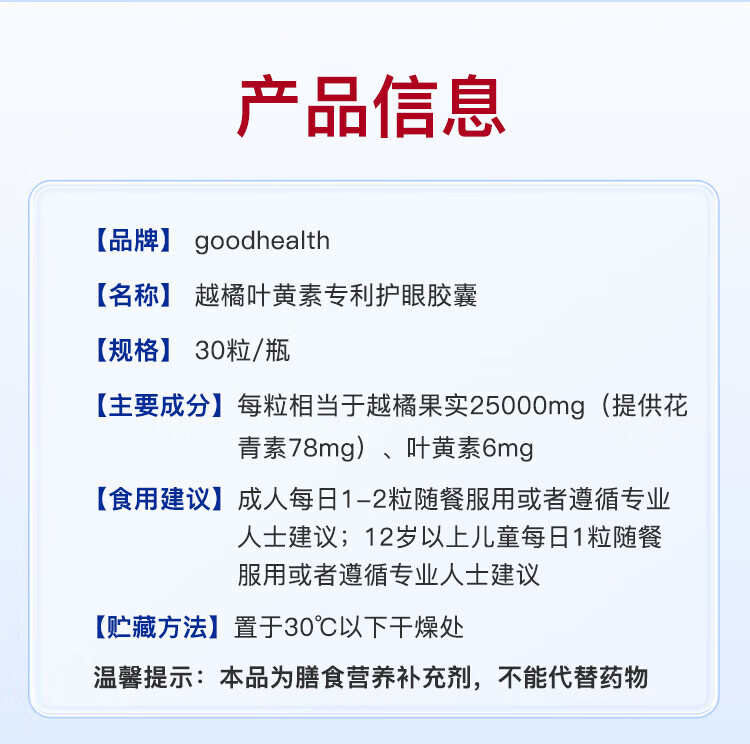 GoodHealthgoodhealth好健康蓝莓叶黄素护眼片成人青少年花青素防蓝光进口 蓝莓叶黄素30粒