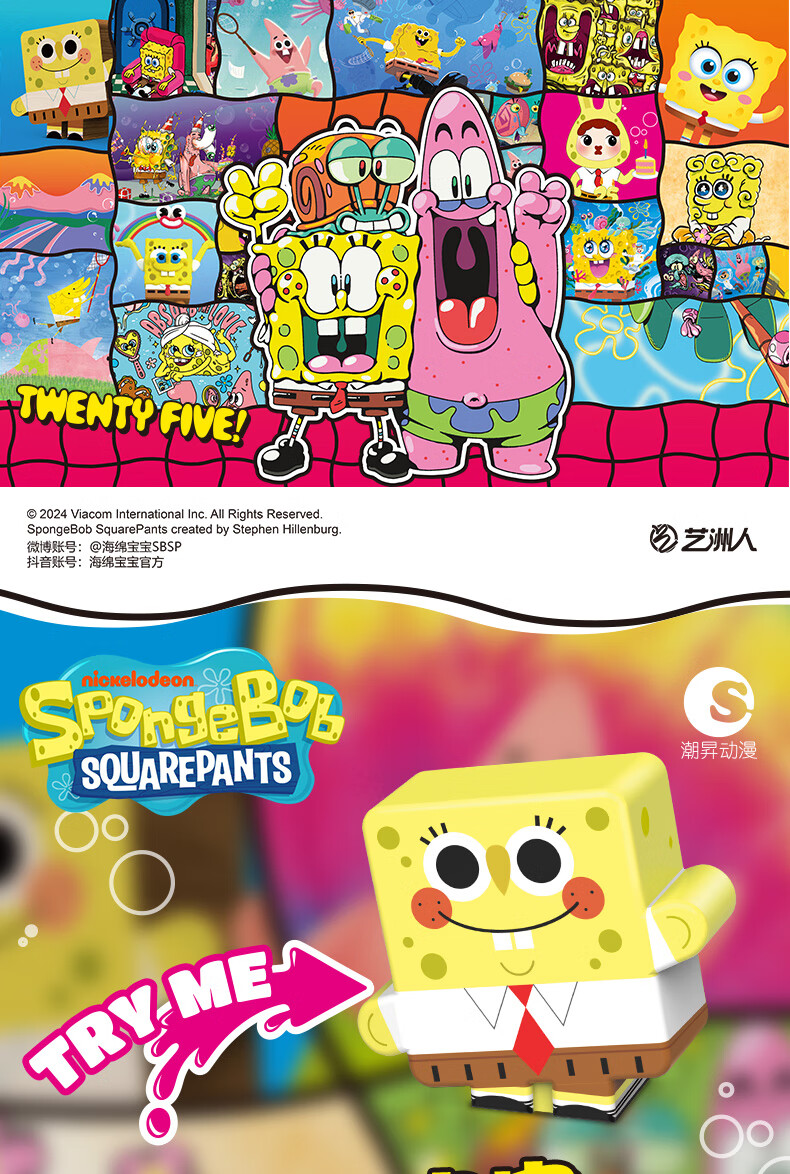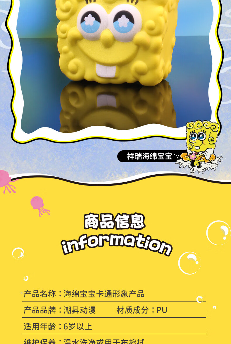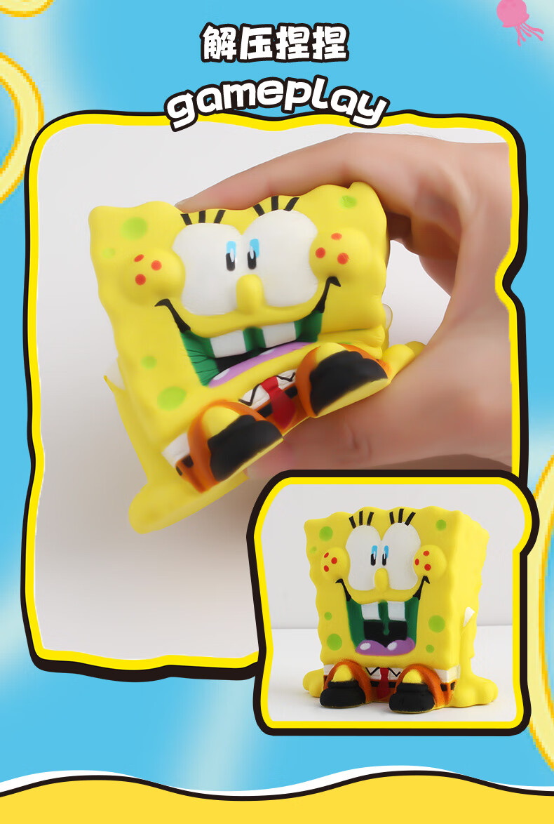 潮昇动漫正版海绵宝宝派大星挤挤捏捏乐慢回弹解压玩具记忆棉手办公仔 趣乐海绵宝宝