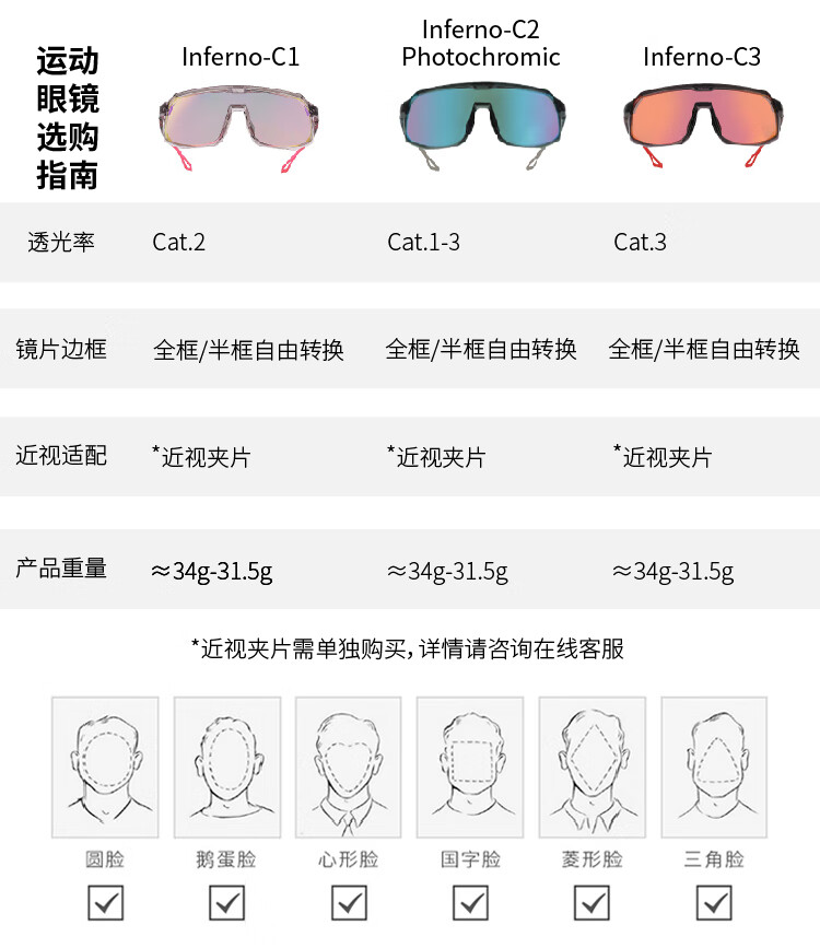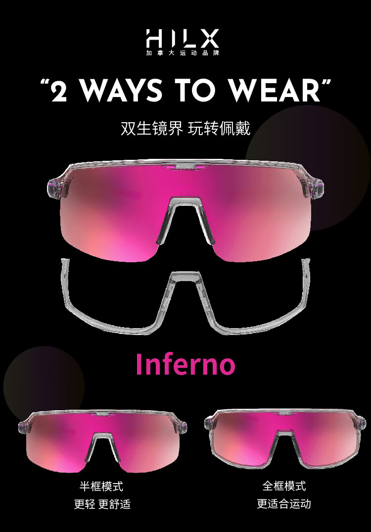 HILX加拿大骑行墨镜跑步变色登山户外眼镜男女半框可拆太阳镜Inferno Inferno-C3