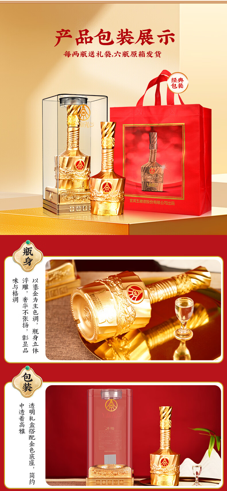 五粮液股份 新礼马年生肖 浓香型白酒 52度 500mL 2瓶 金水晶