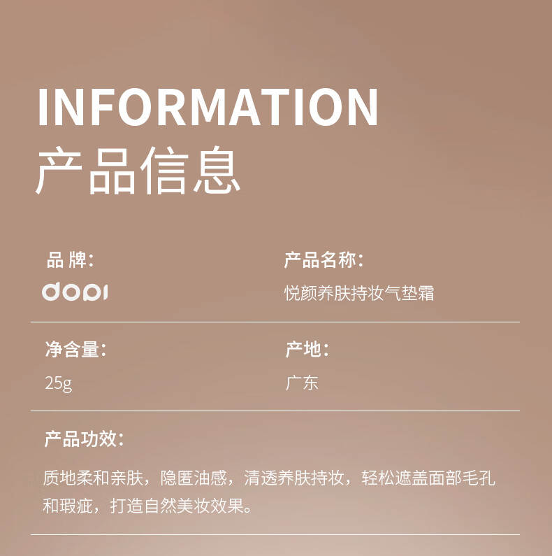 DOPI哆派悦颜养肤持妆气垫霜持妆控油防水防汗遮瑕大容量气垫正品 2号素瓷白(赠3色试用装)适合黄皮
