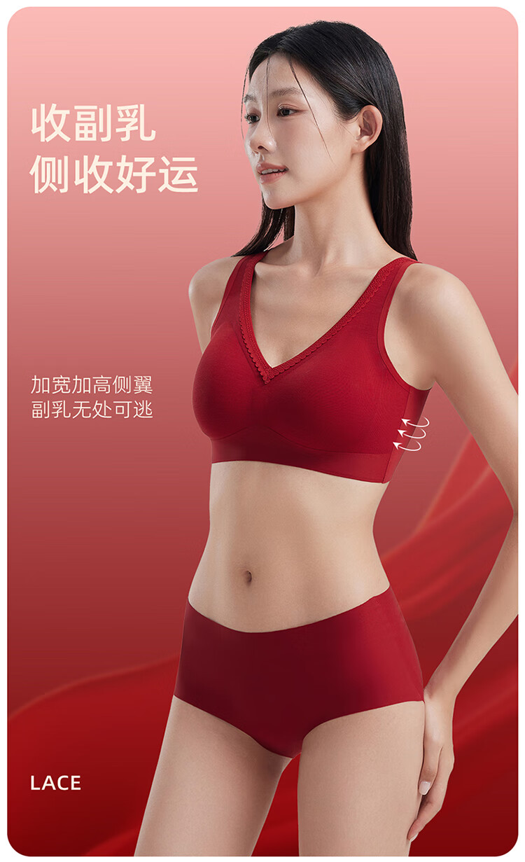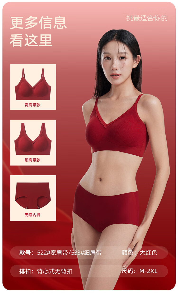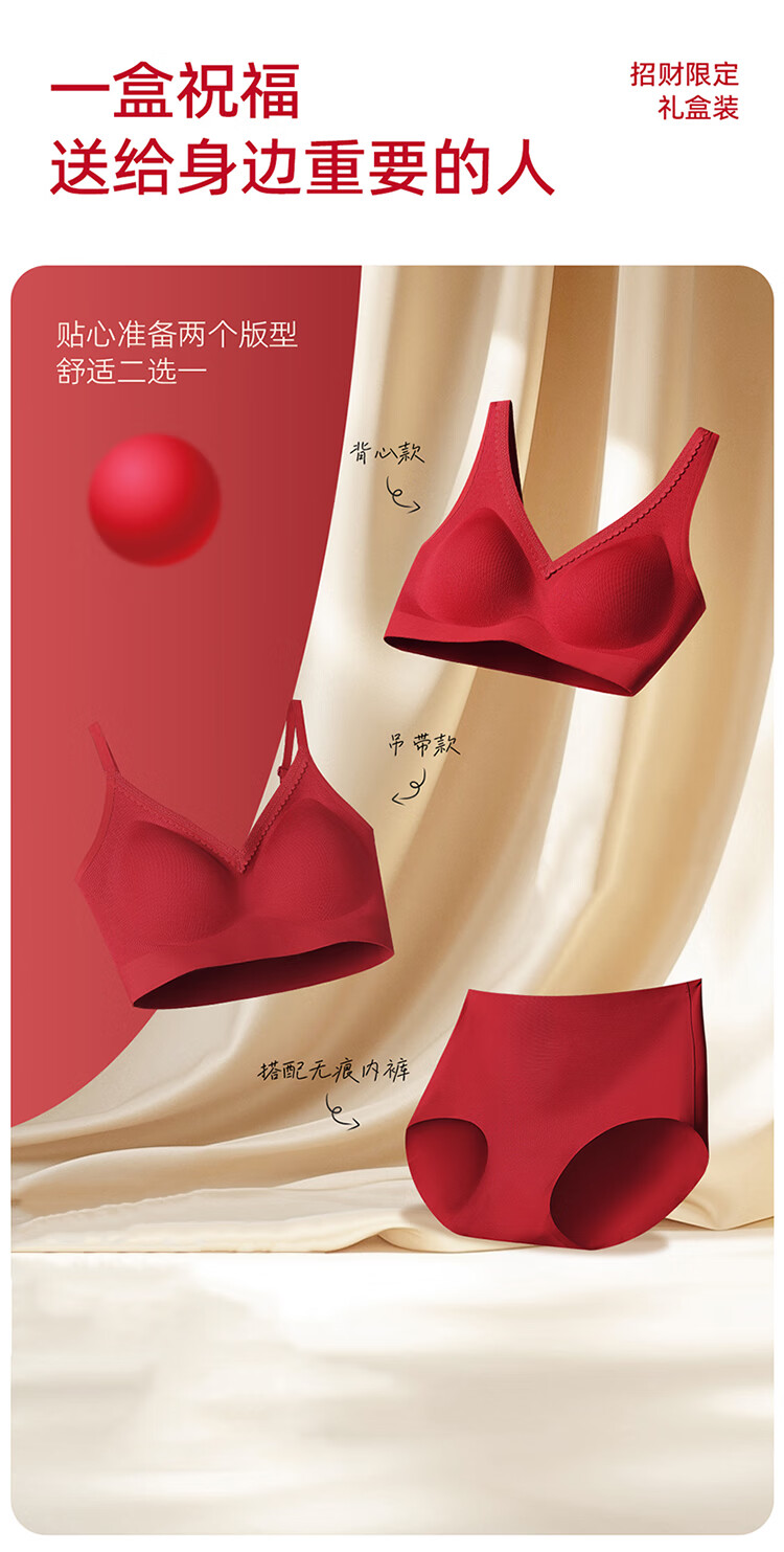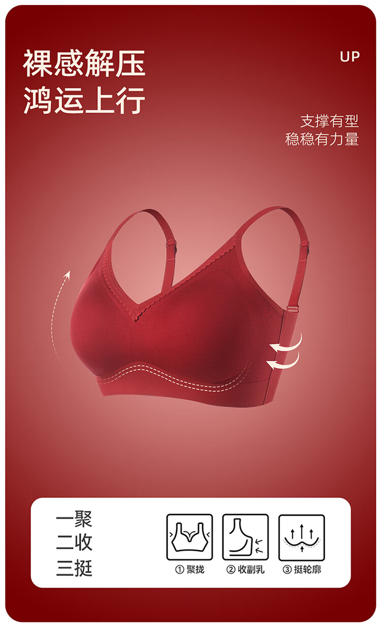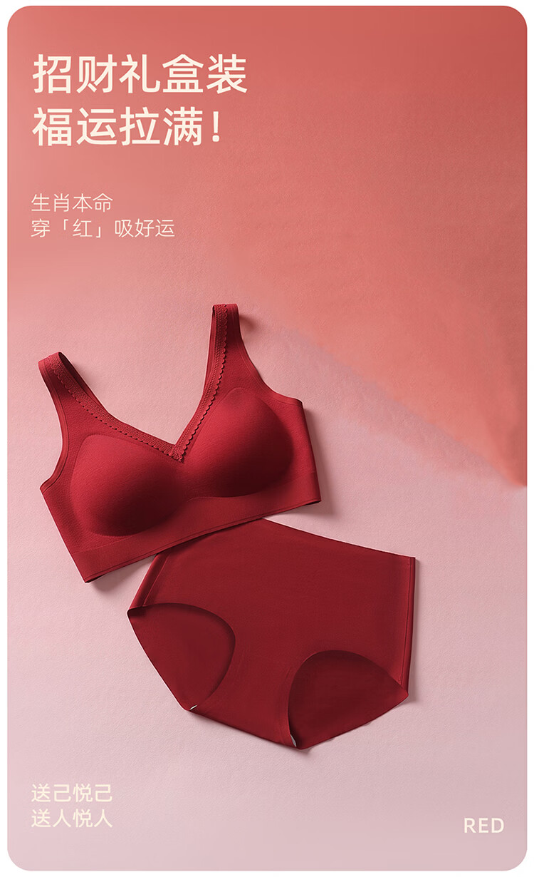 都市丽人红色本命年内衣套装女马年内裤文胸一套结婚新娘小胸聚拢大红胸罩 522文胸+内裤+礼盒套装 宽肩带款 XL 建议120-135斤