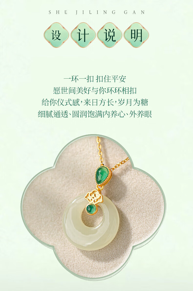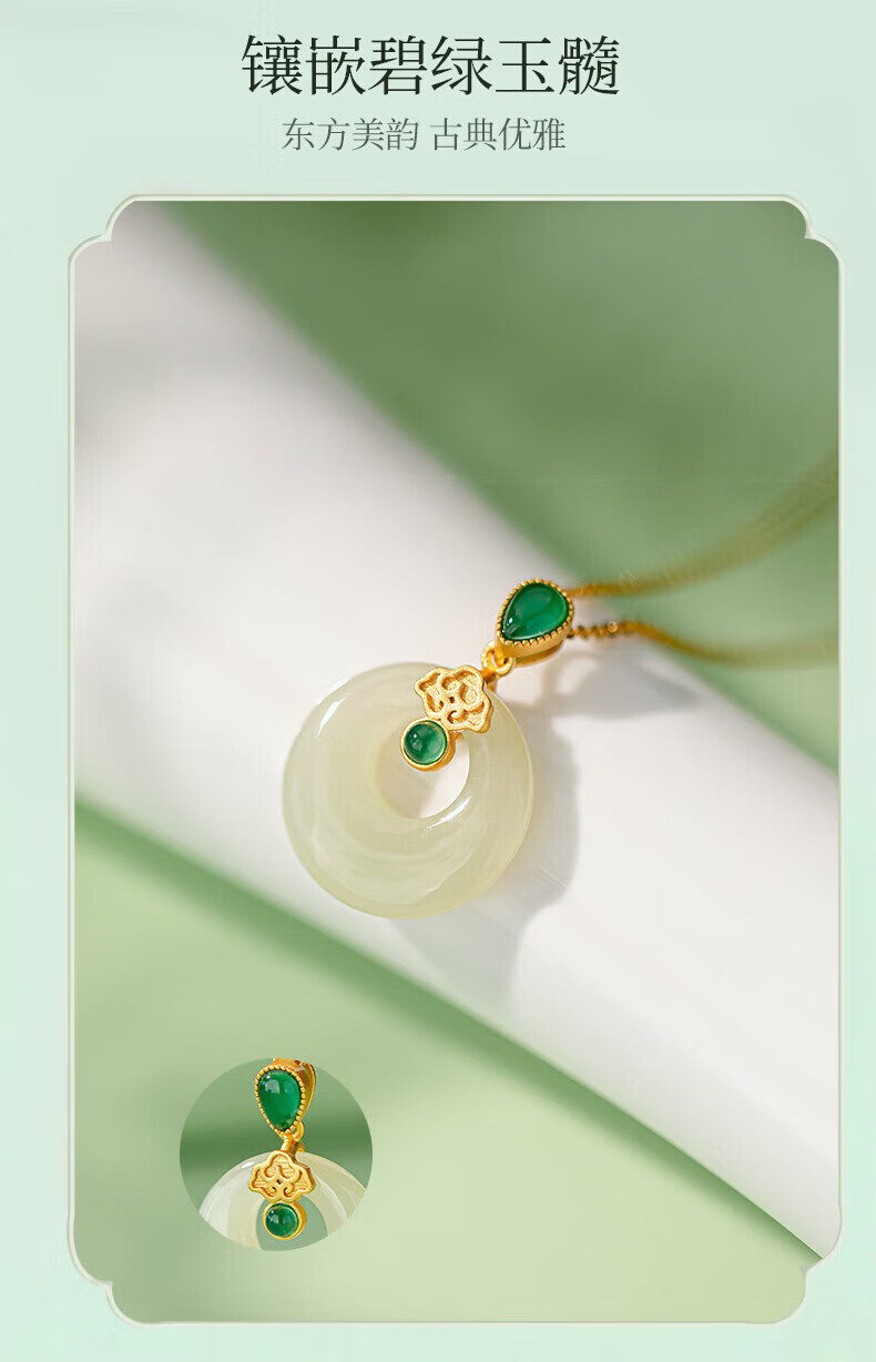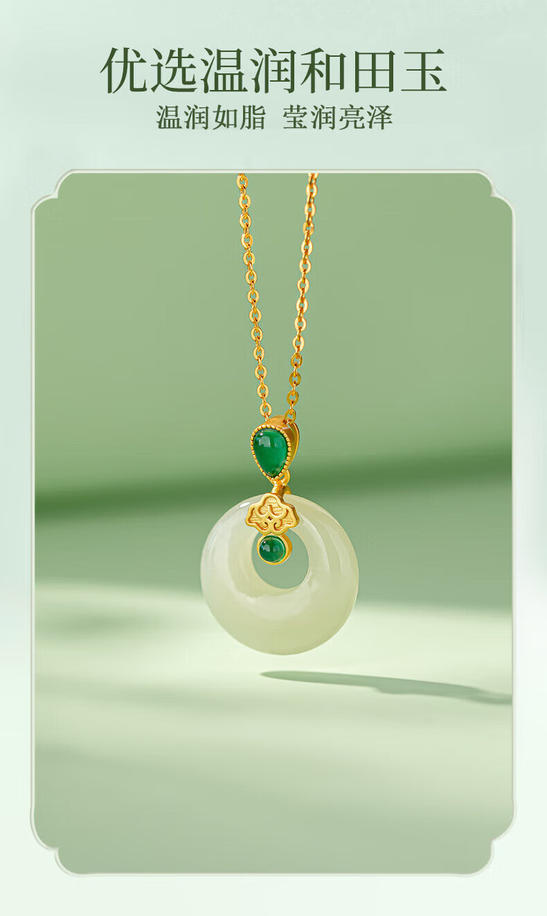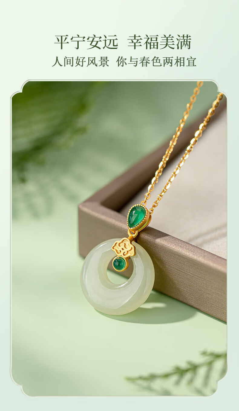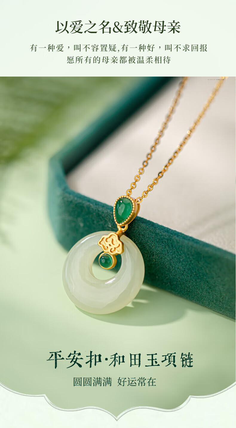 老凤祥如意和田玉平安扣项链女轻奢2026新款时尚轻奢情人节礼物送女朋友 今/次日达*如意和田玉平安扣项链【品牌礼盒】