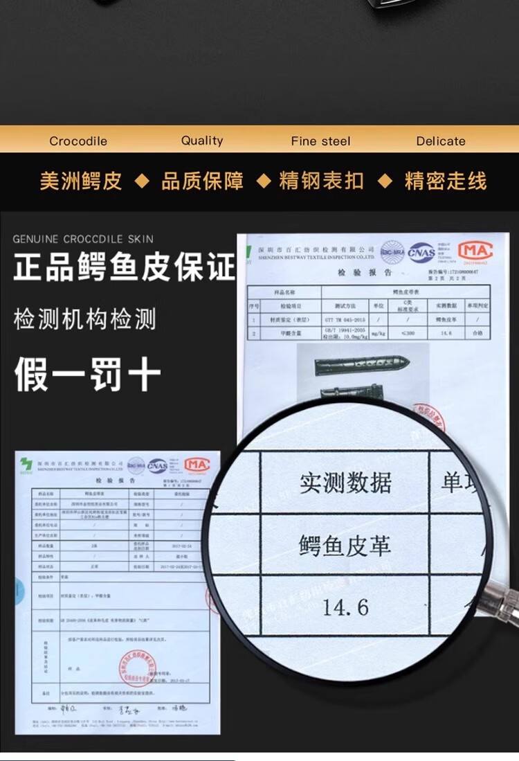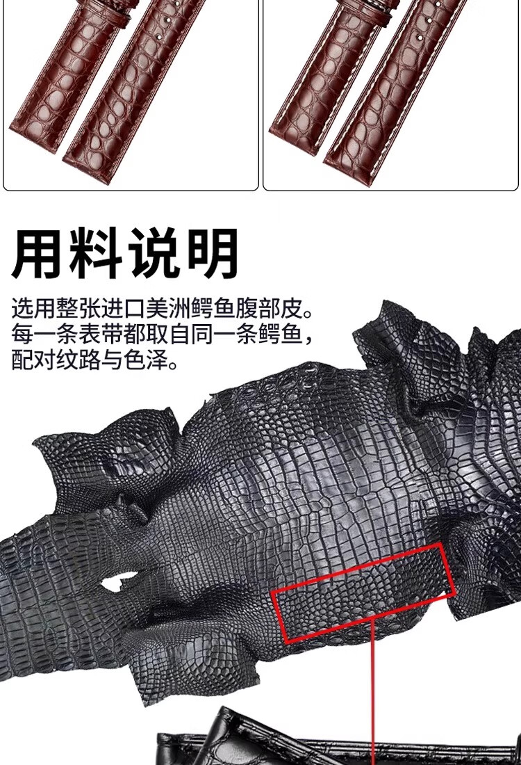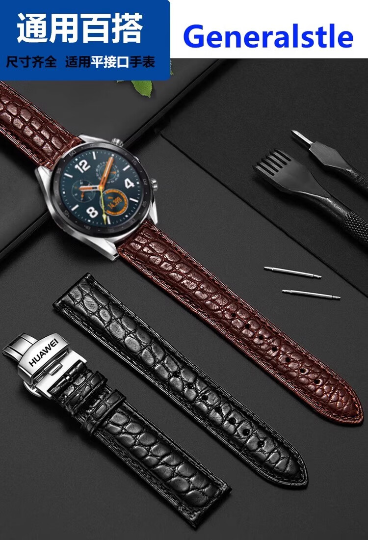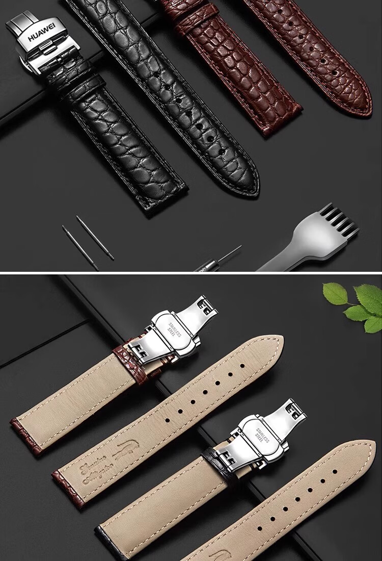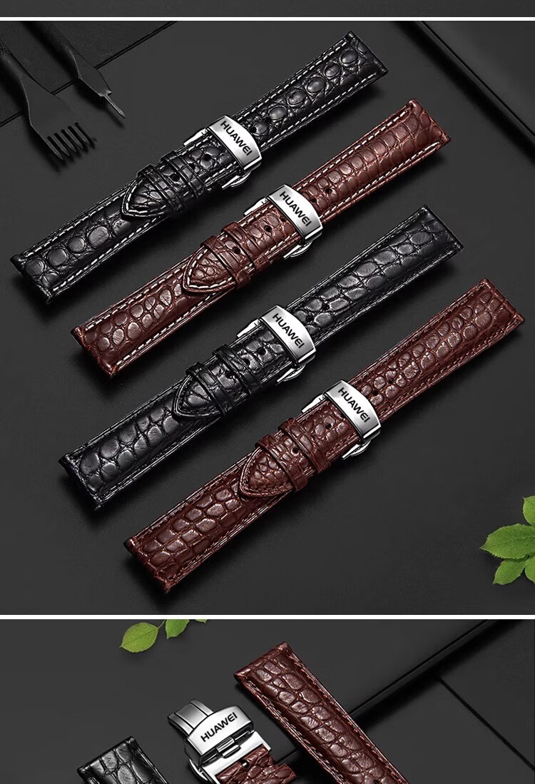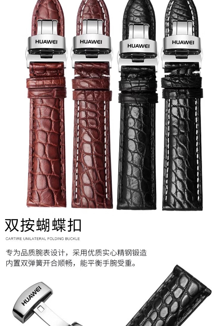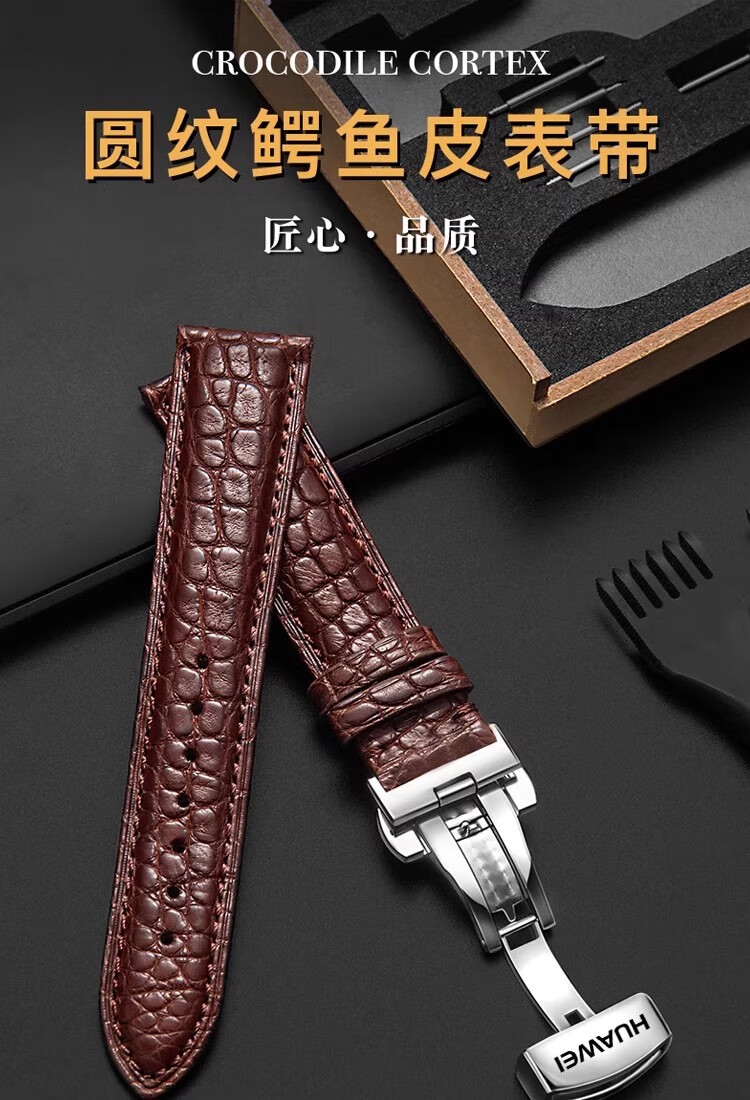 华为GT6/gt5真皮鳄鱼皮表带GT4/gt3/2蝴蝶扣Watch4男款手表带 鳄鱼皮-棕色白线+银色针扣 【GT6/GT5 46mm】新品爆款 【20mm】