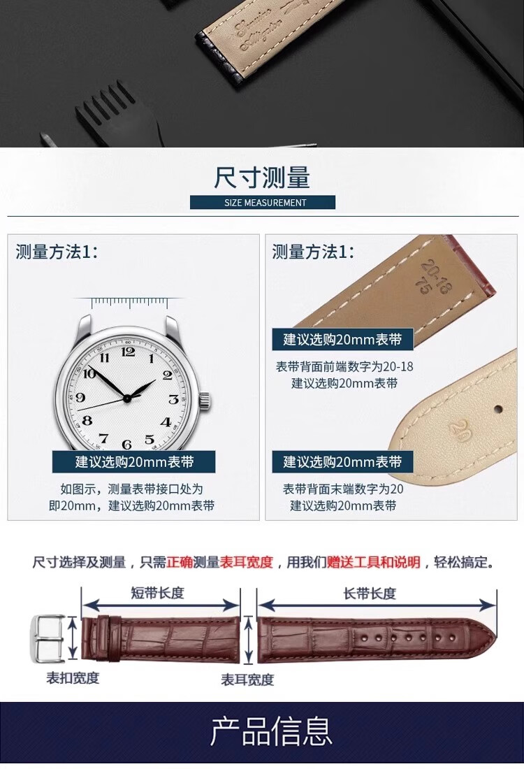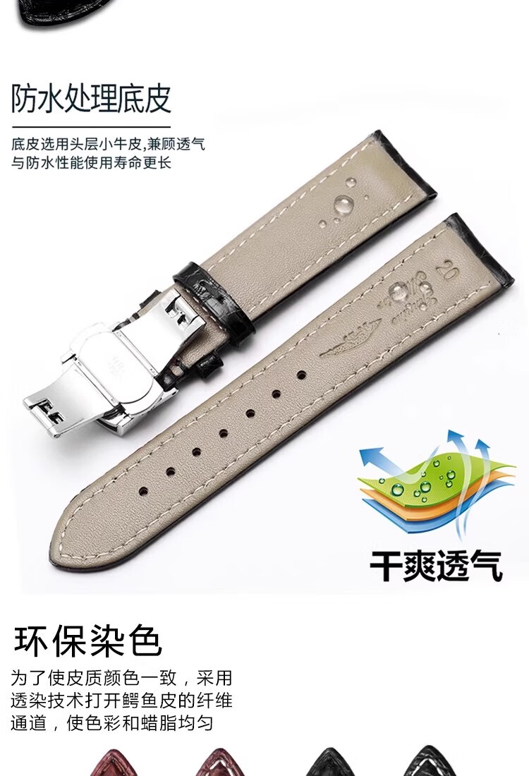 卷尾蜥适用浪琴表带男真皮名匠八针月相军旗瑰丽康卡斯嘉岚系列牛皮手表带 黑带-银色蝴蝶扣 20mm(原装同款扣型)