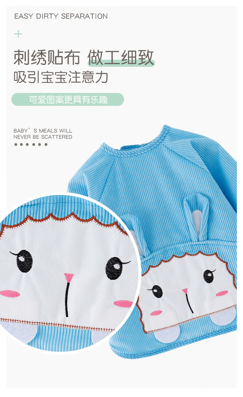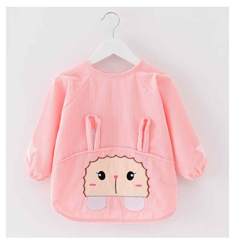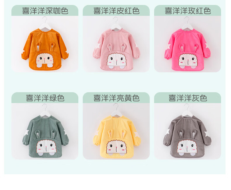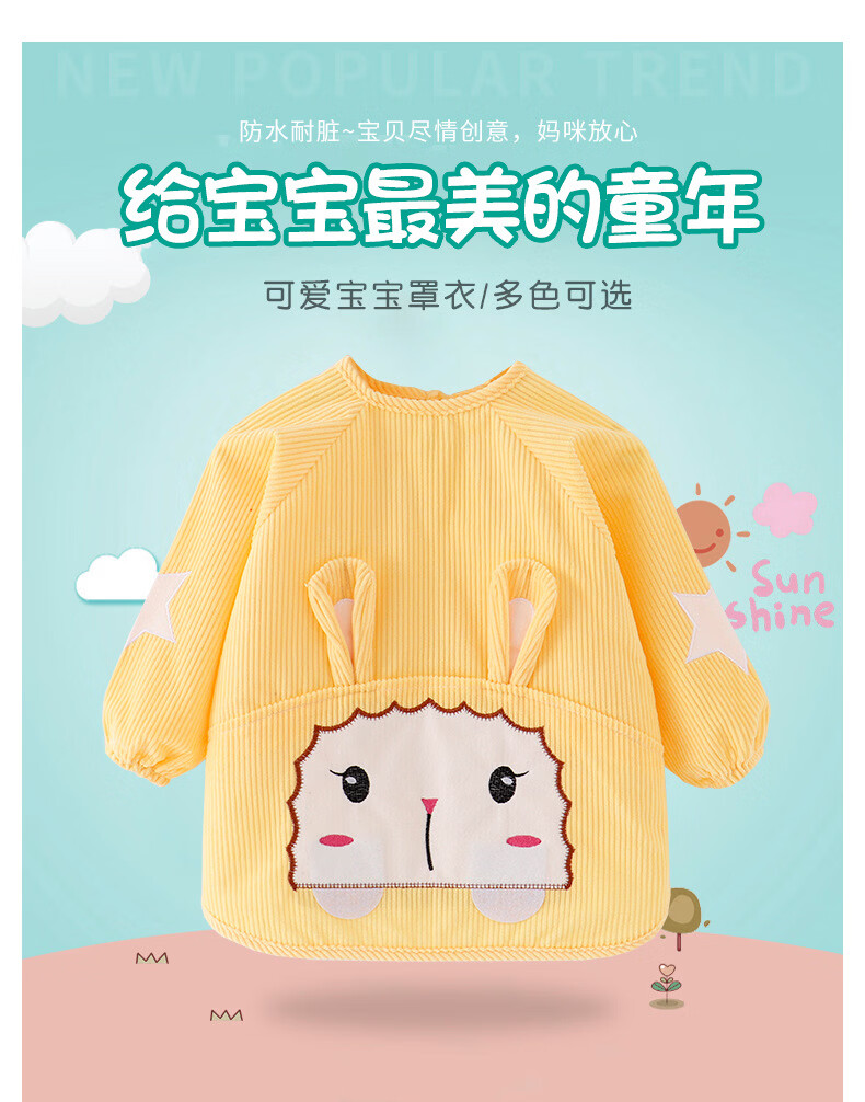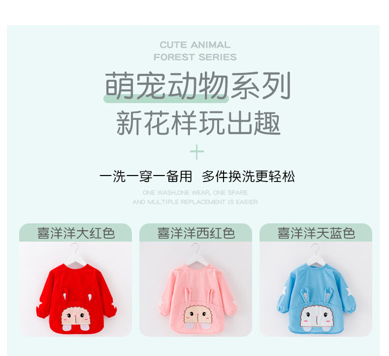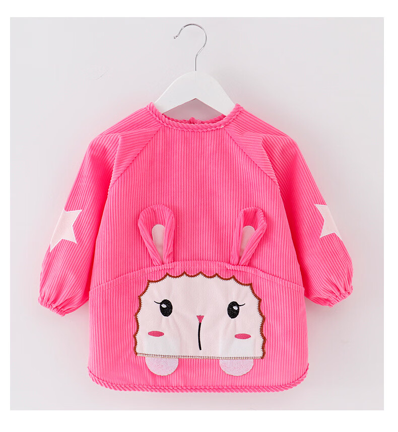 【直发】宝宝卡通罩衣围兜防水防污倒褂衣儿童反穿衣围裙秋冬季水 水晶条小羊西红 80码建议0-1岁