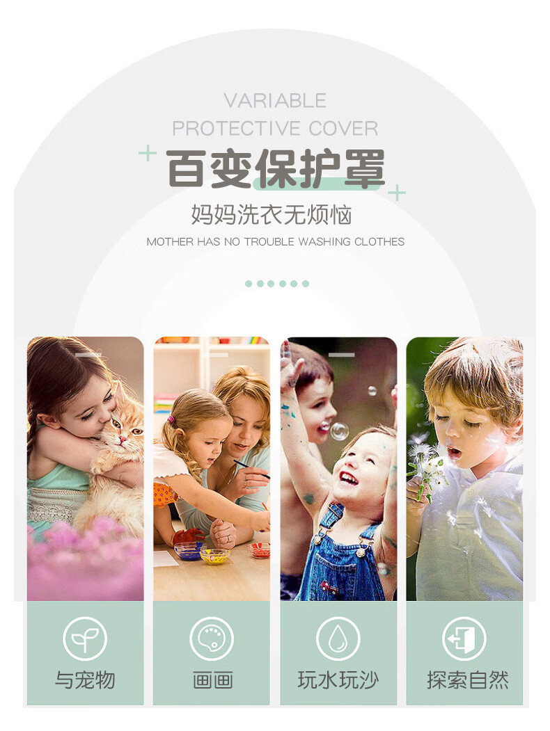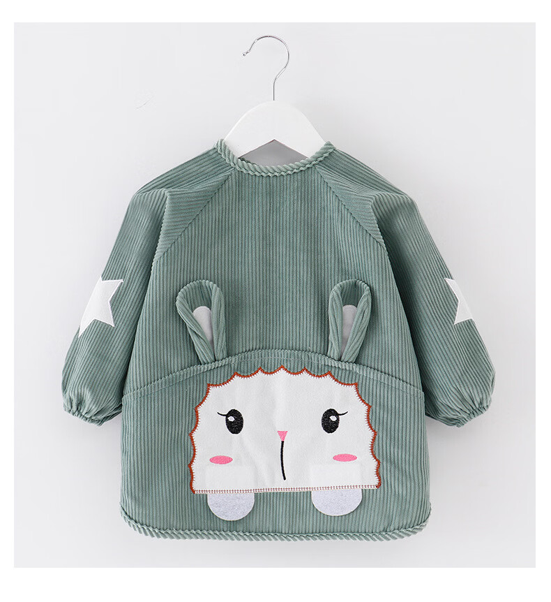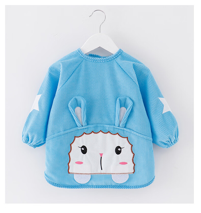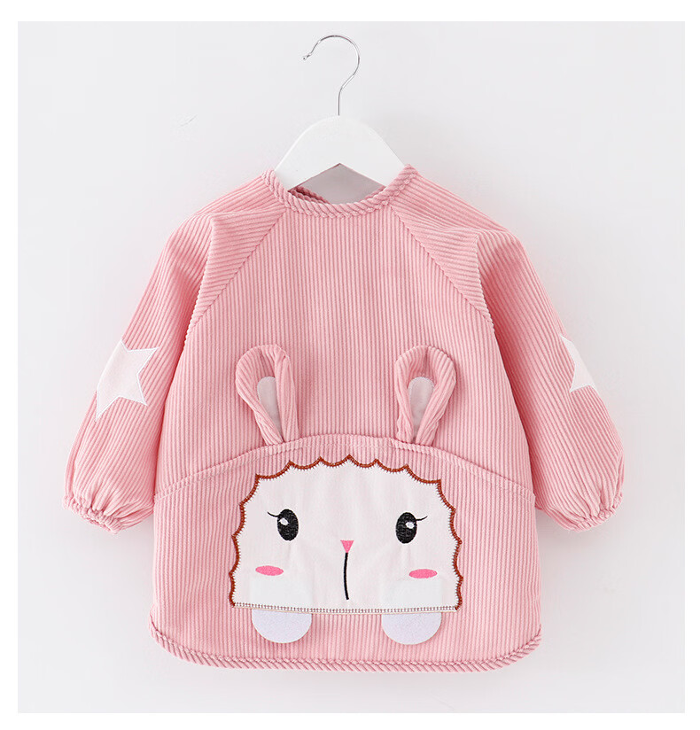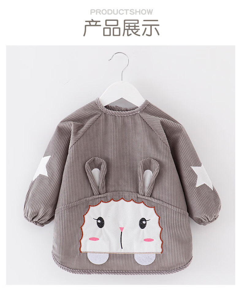 【直发】宝宝卡通罩衣围兜防水防污倒褂衣儿童反穿衣围裙秋冬季水 水晶条小羊西红 80码建议0-1岁