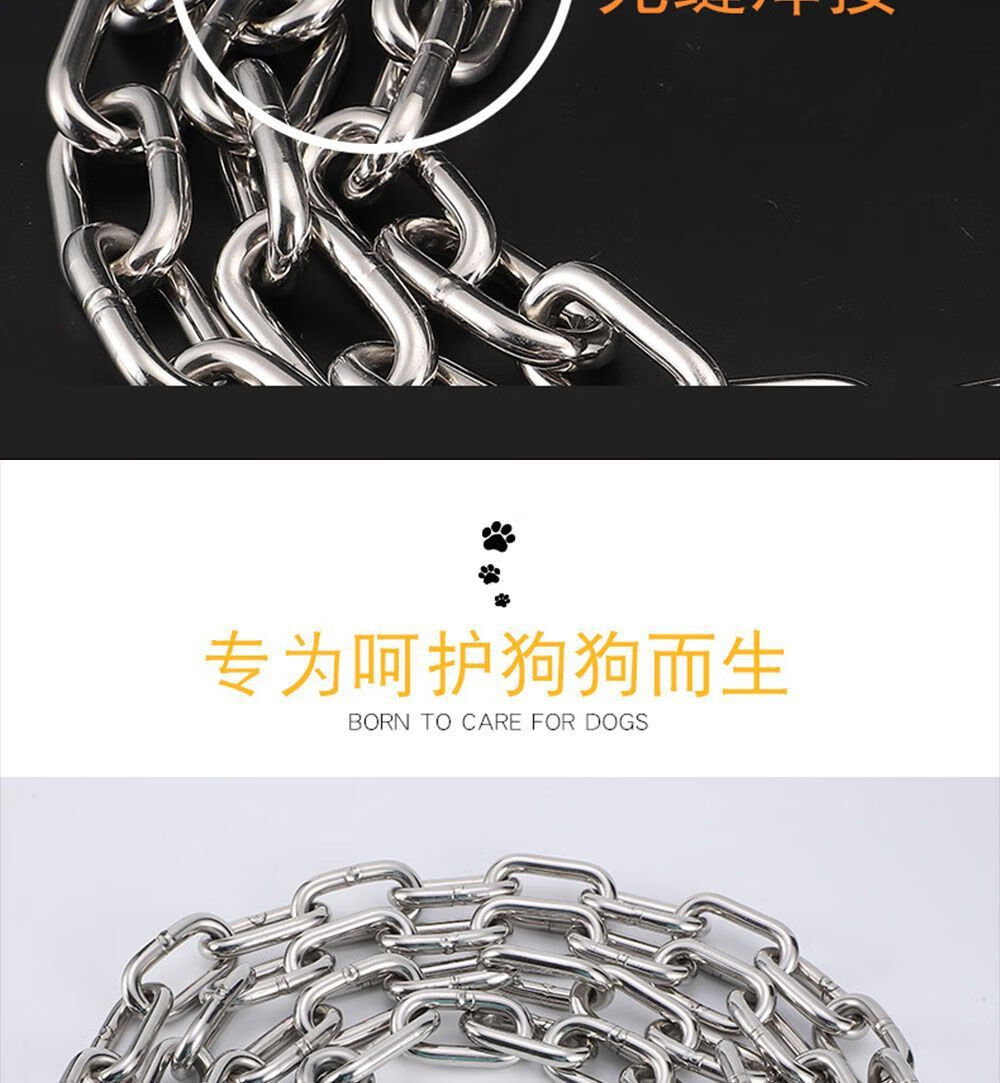【工厂直发】不锈钢狗链农村栓狗链子大型中型小型犬防咬项圈狗绳 2mm粗不锈钢狗链适合【10斤内爱犬】 1.5米长【太短不推荐】