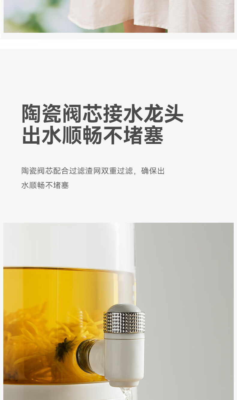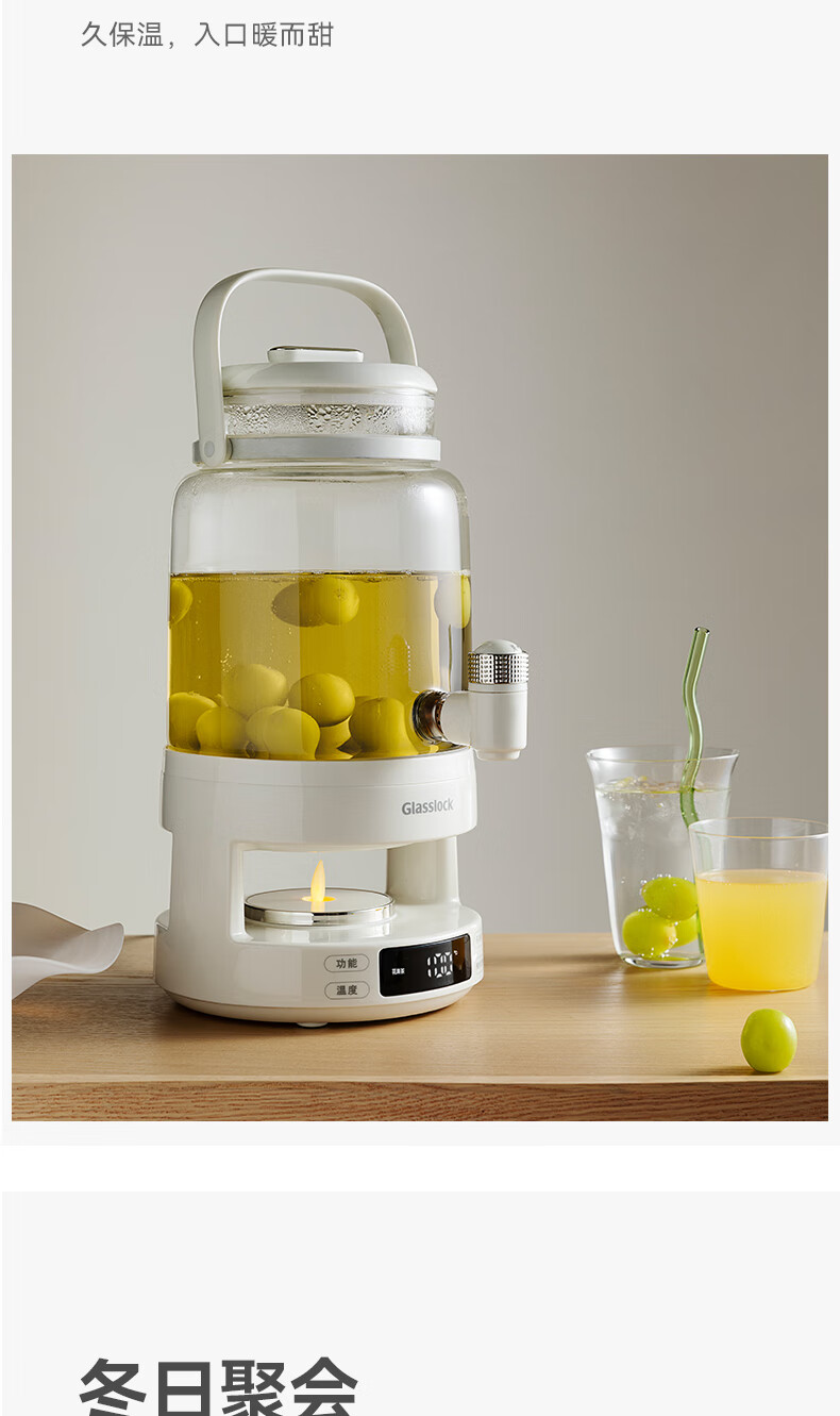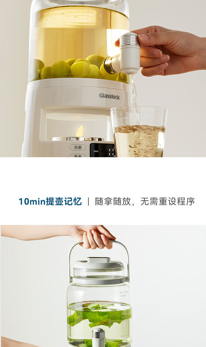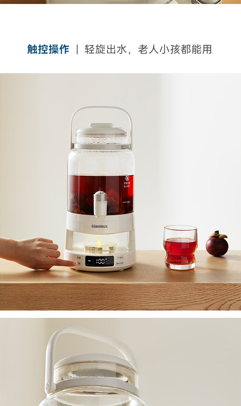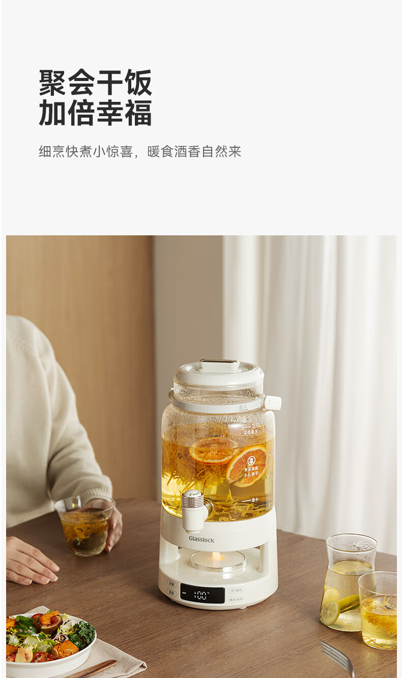 GLASSLOCK盖朗养生壶2.8L花茶壶炖煮一体家用多功能带水龙头煮茶壶聚会果酒 2.8L 花茶桶【冷热两用】