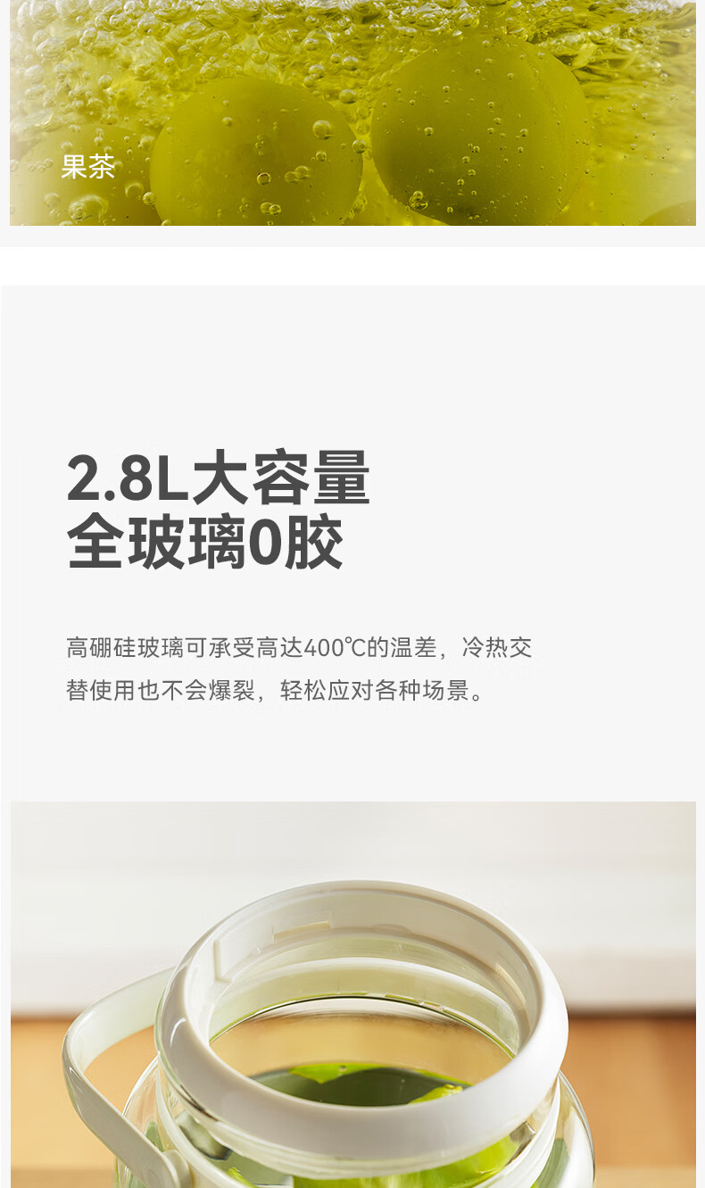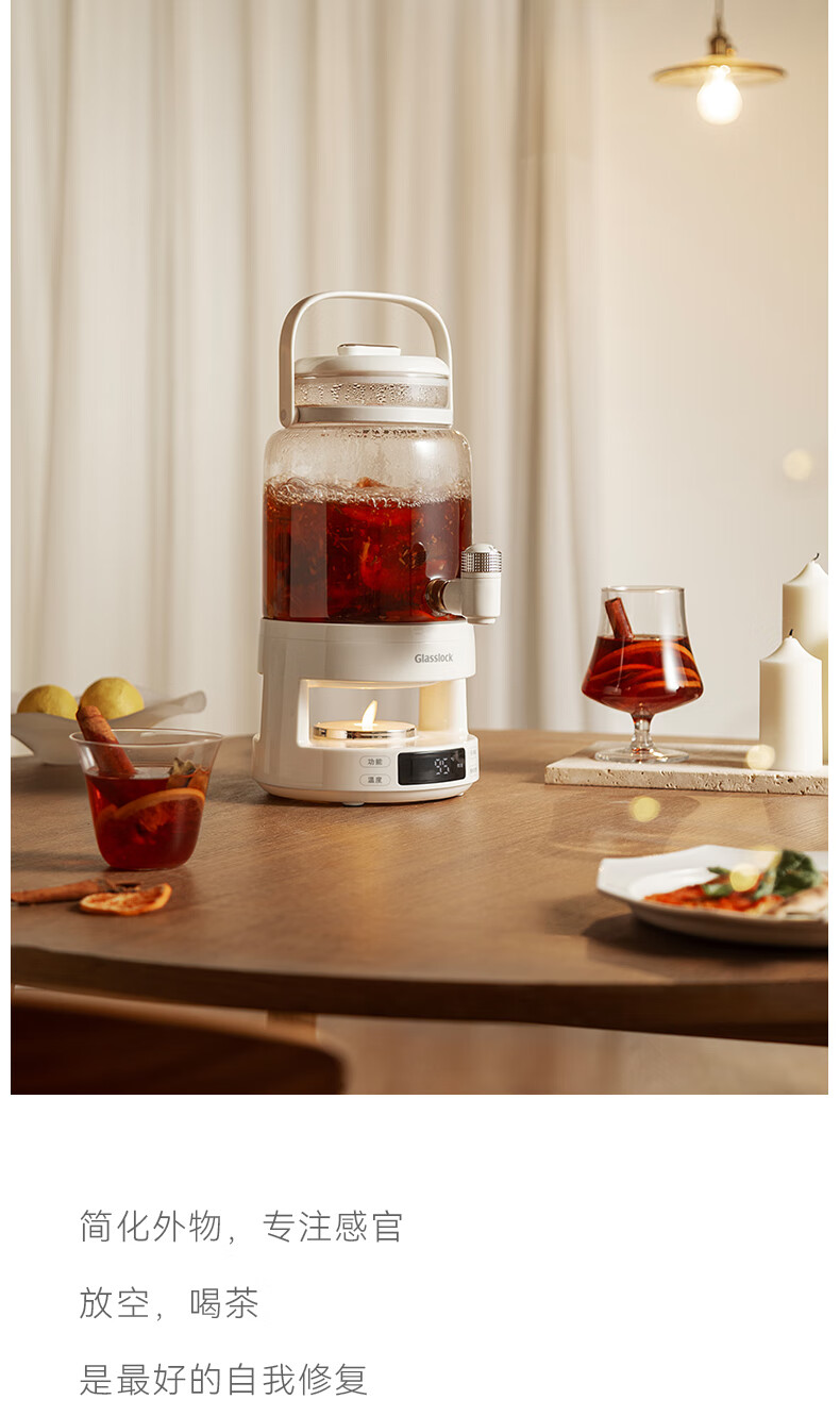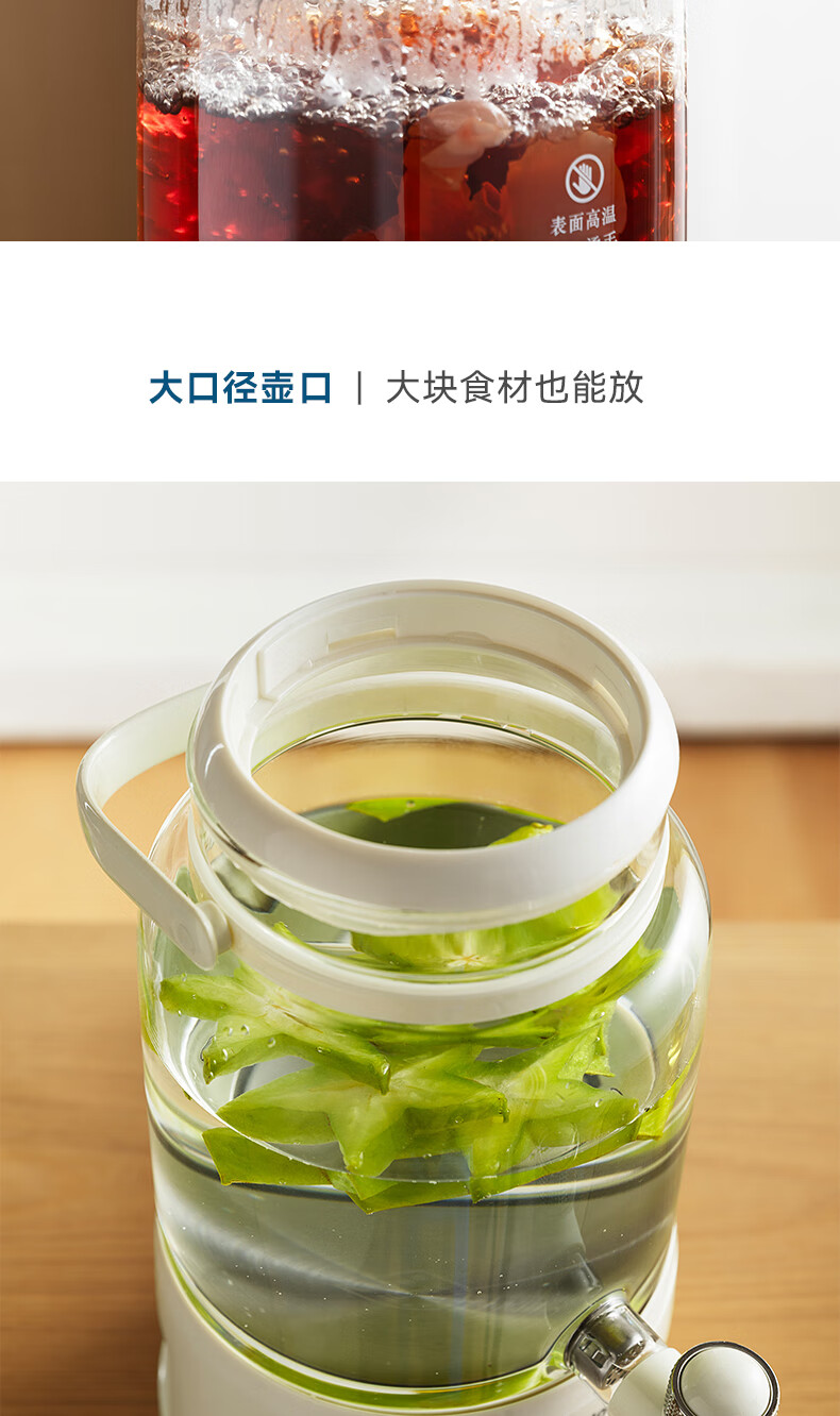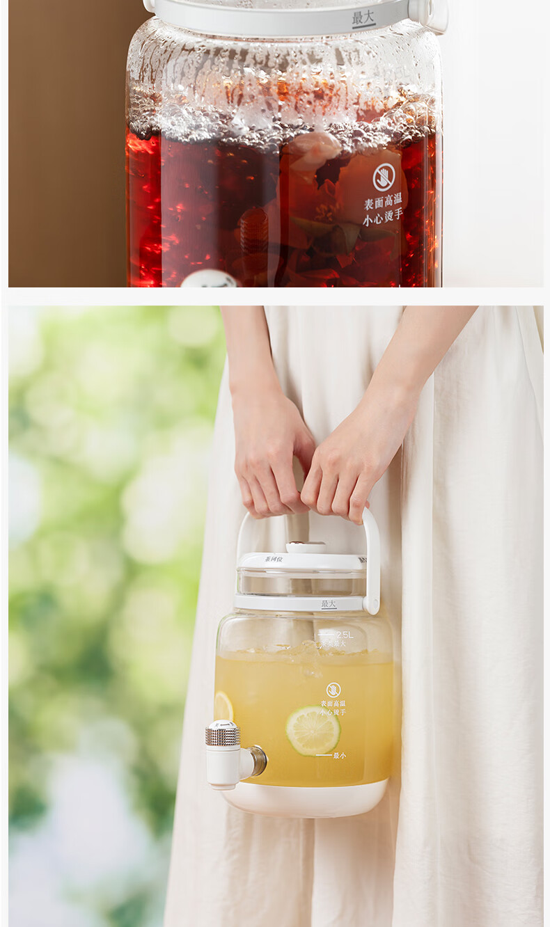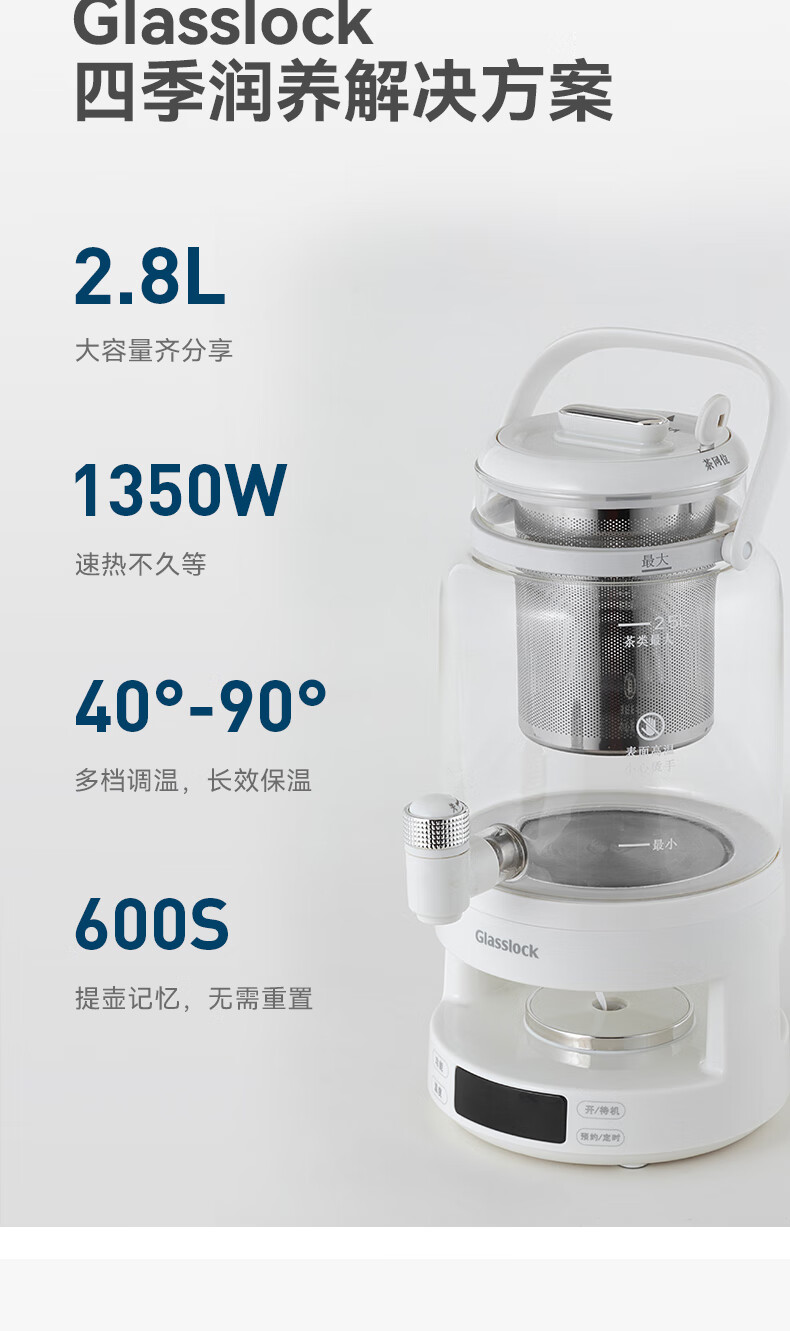 GLASSLOCK盖朗养生壶2.8L花茶壶炖煮一体家用多功能带水龙头煮茶壶聚会果酒 2.8L 花茶桶【冷热两用】