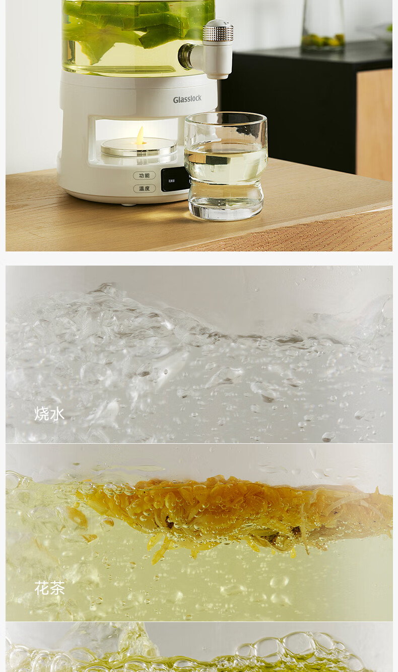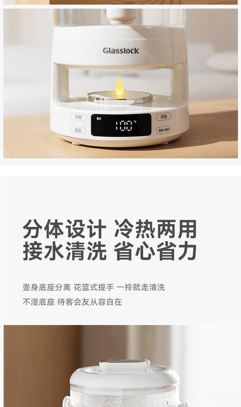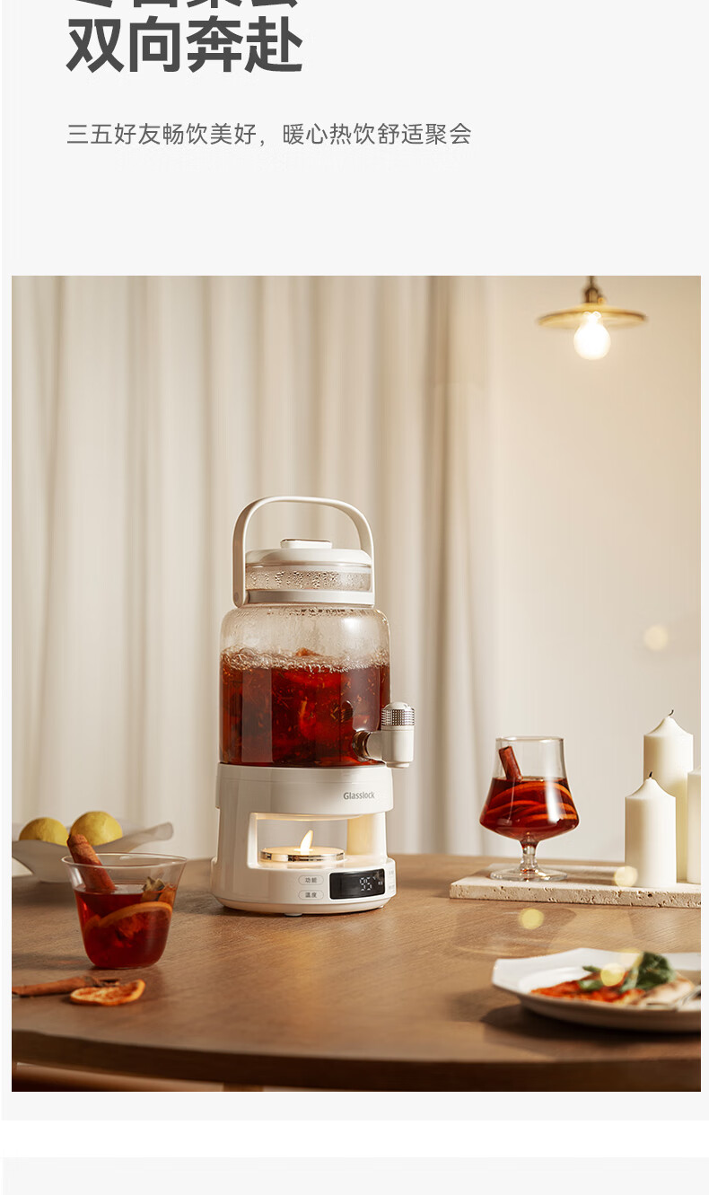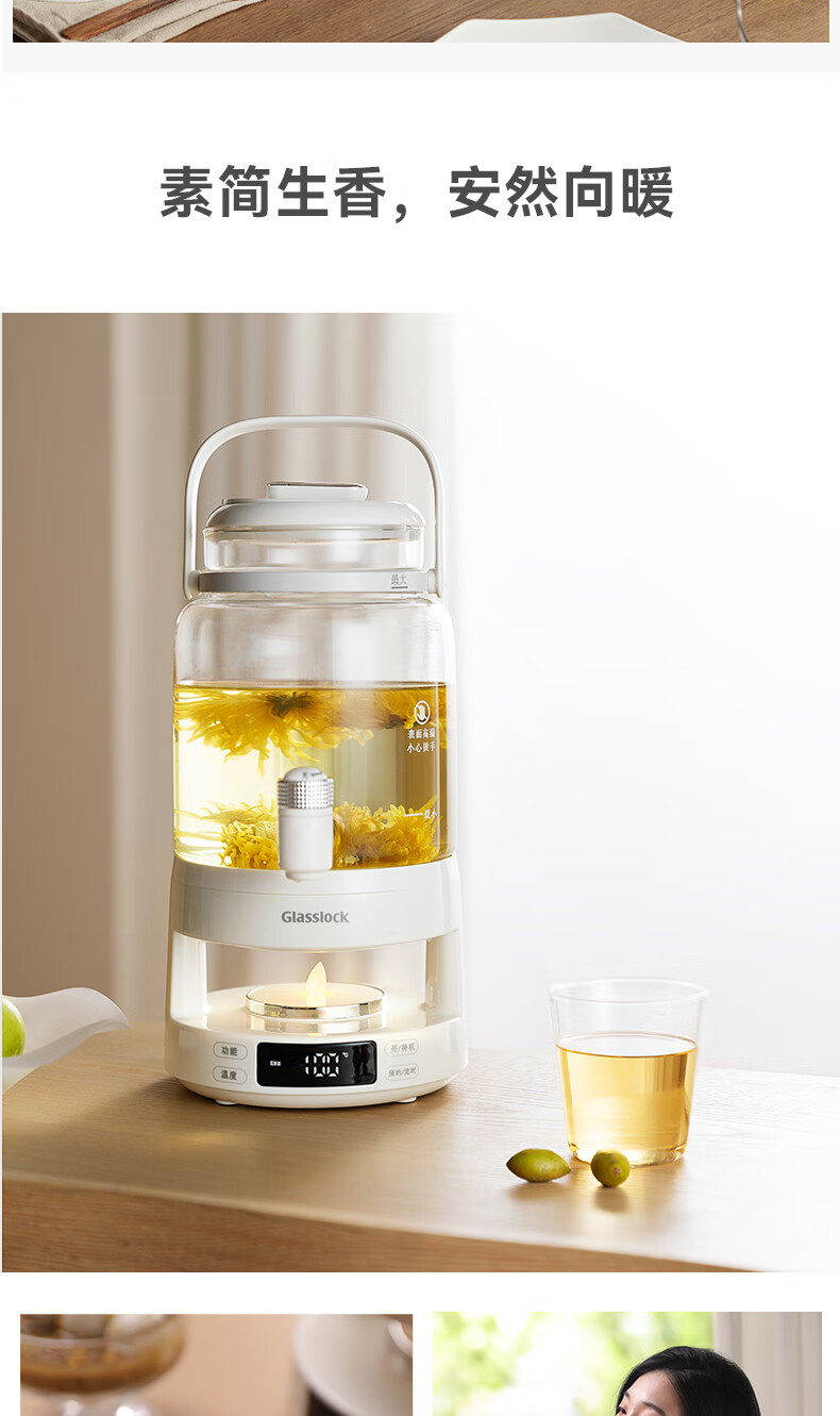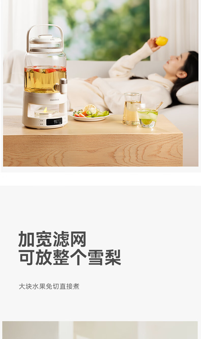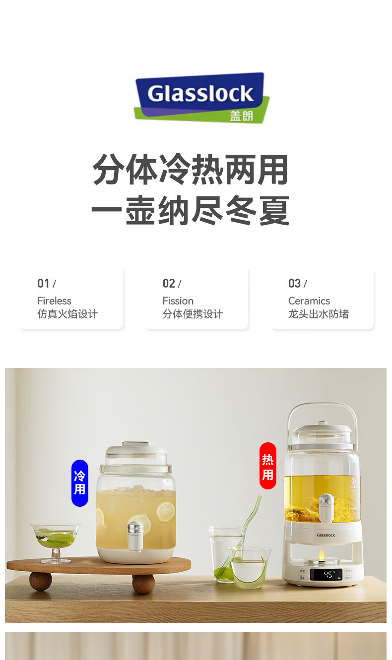 GLASSLOCK盖朗养生壶2.8L花茶壶炖煮一体家用多功能带水龙头煮茶壶聚会果酒 2.8L 花茶桶【冷热两用】