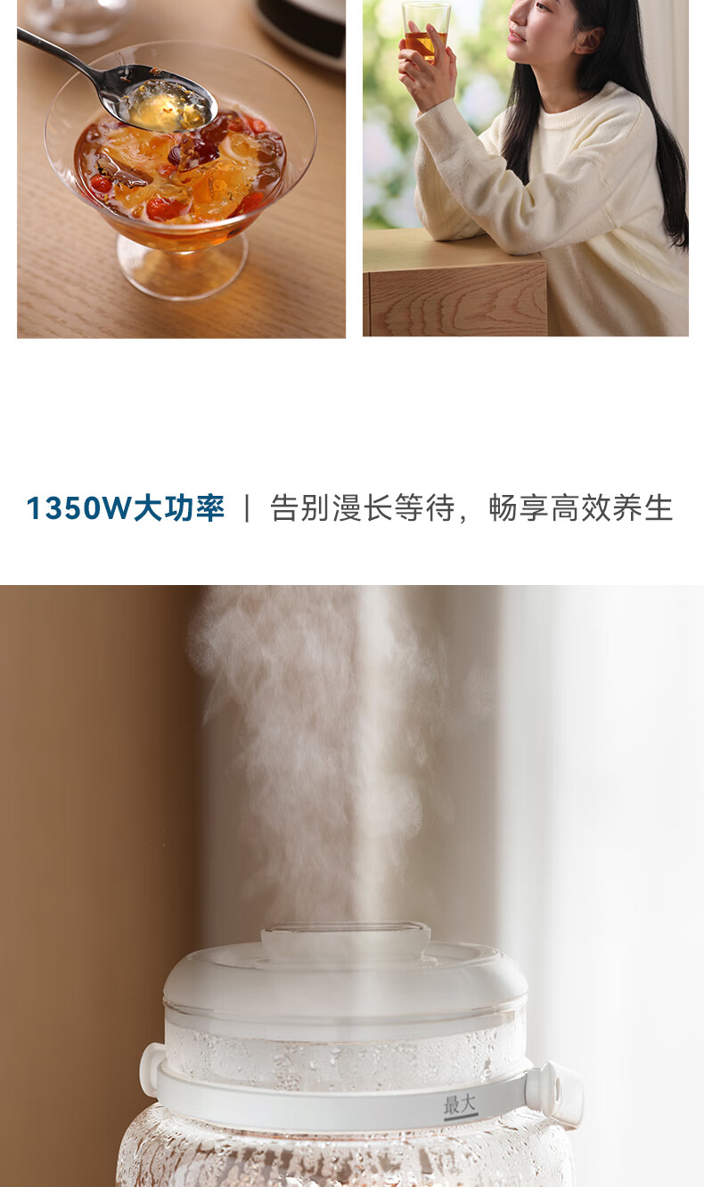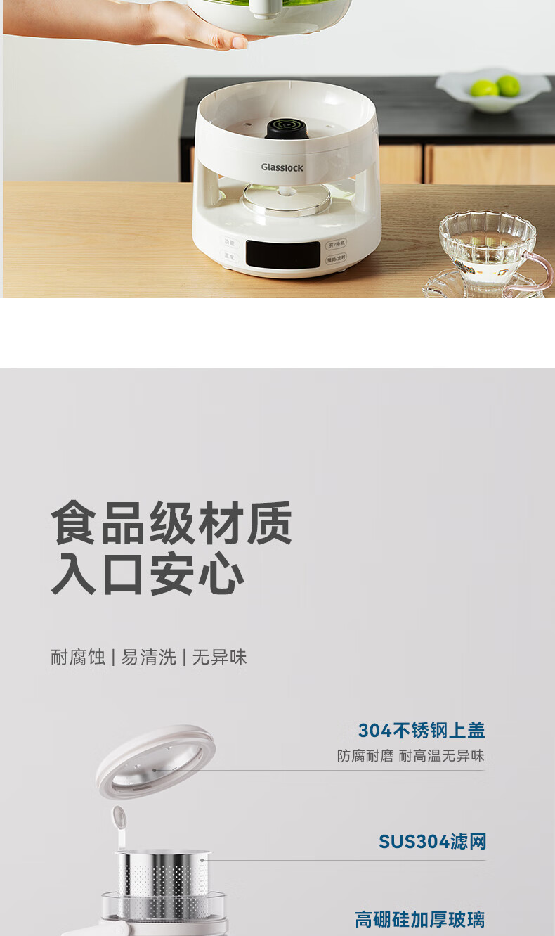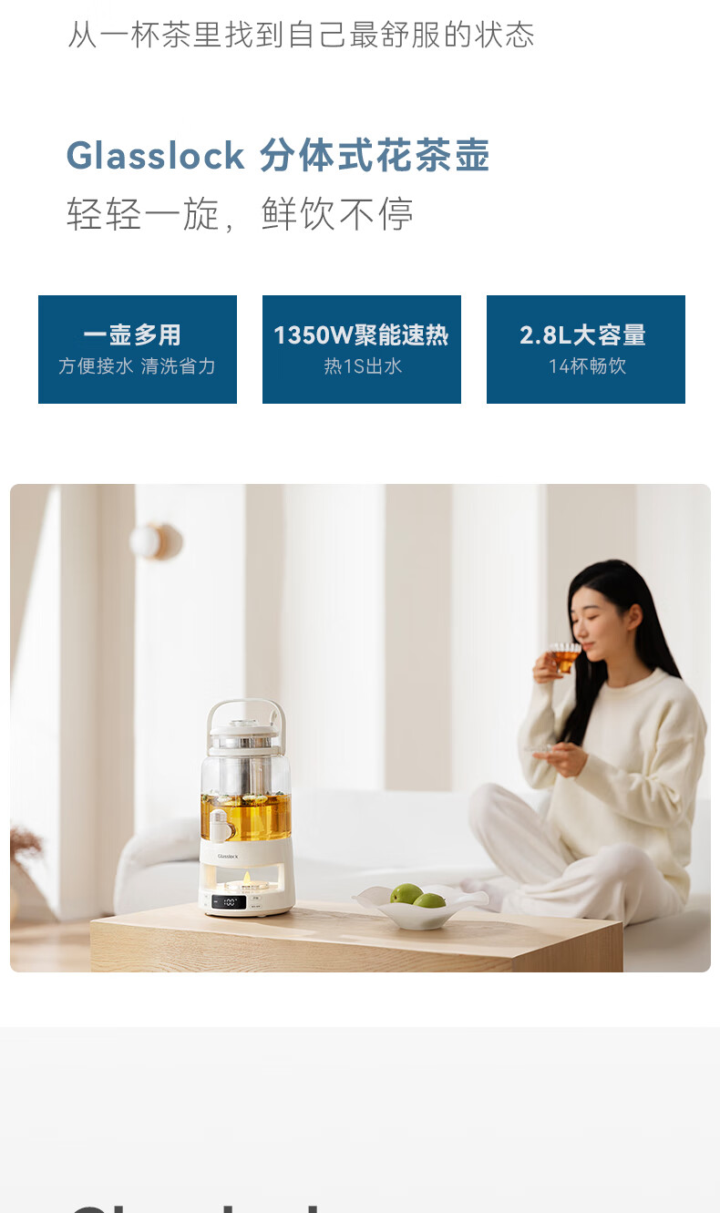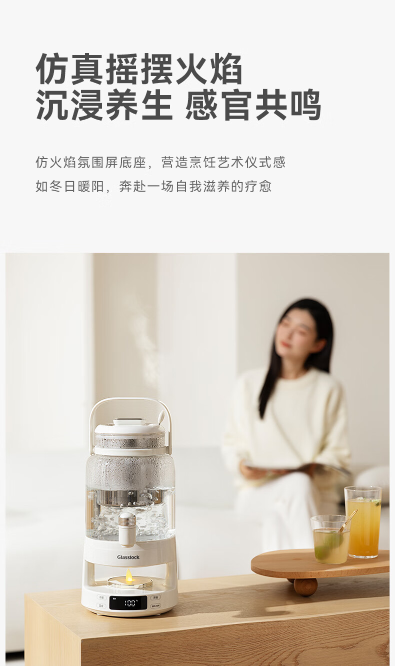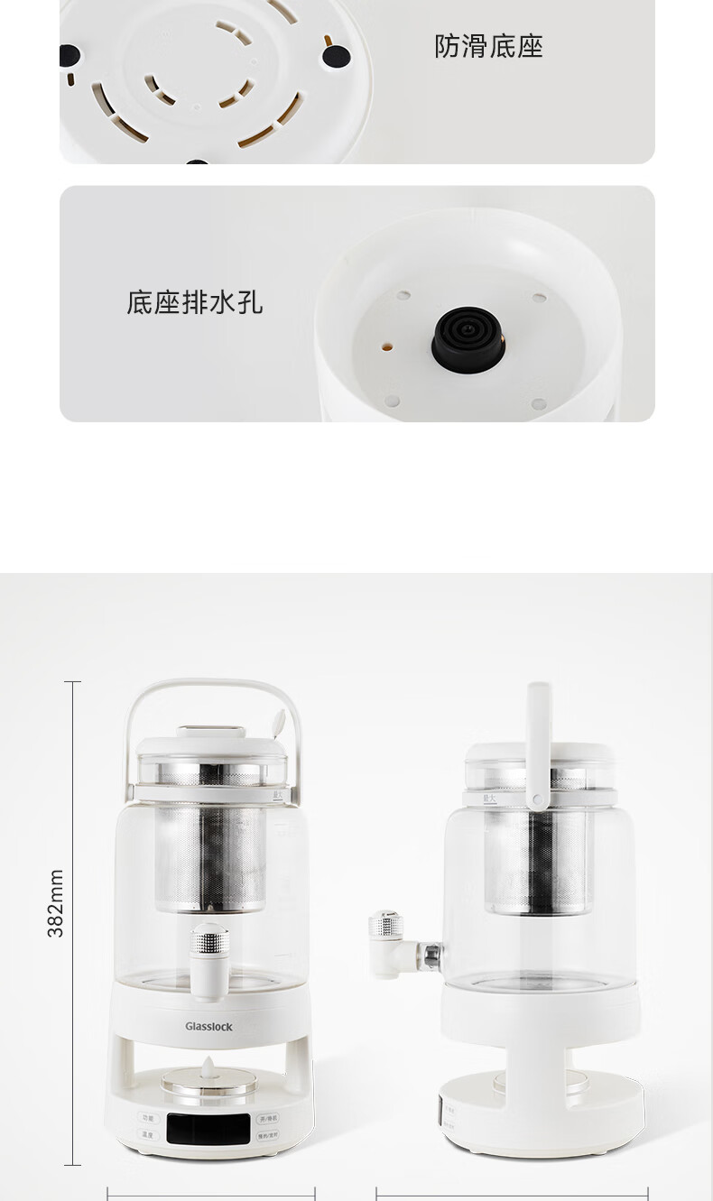 GLASSLOCK盖朗养生壶2.8L花茶壶炖煮一体家用多功能带水龙头煮茶壶聚会果酒 2.8L 花茶桶【冷热两用】