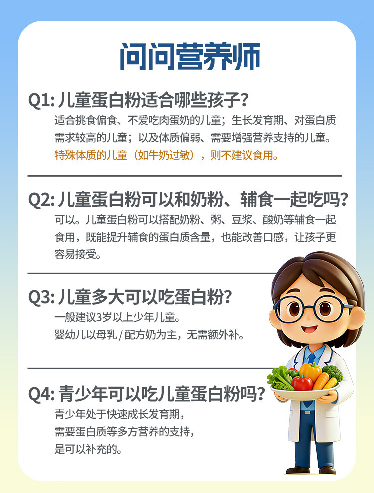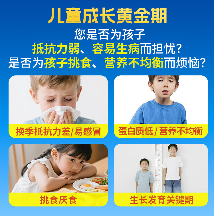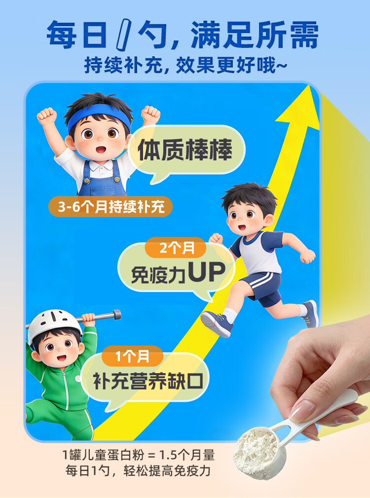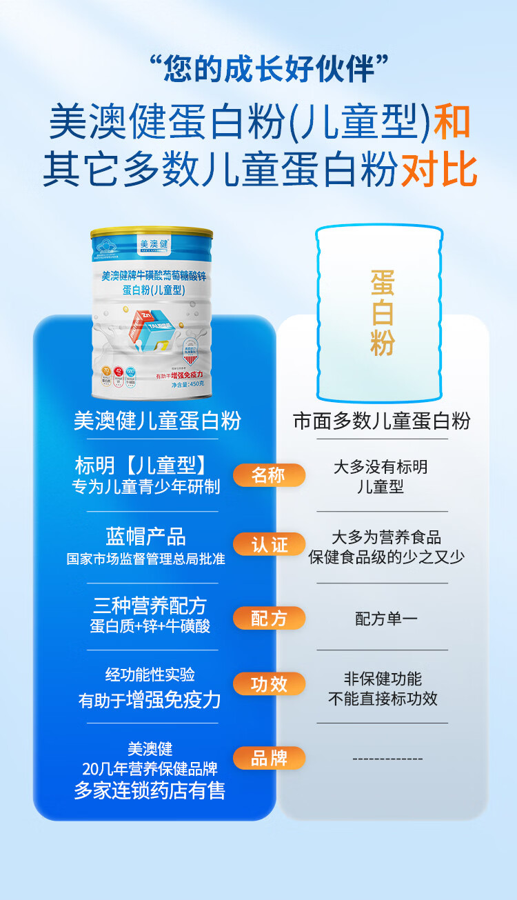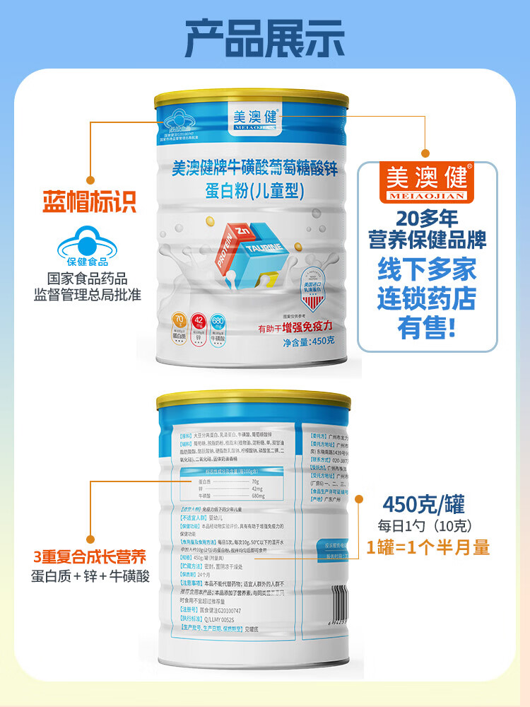 美澳健儿童蛋白粉学生青少年增强免疫力成长牛磺酸锌补乳清蛋白营养礼品 尝鲜装】增强免疫 450g*1罐 送维C+钙