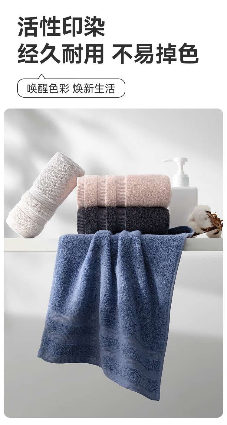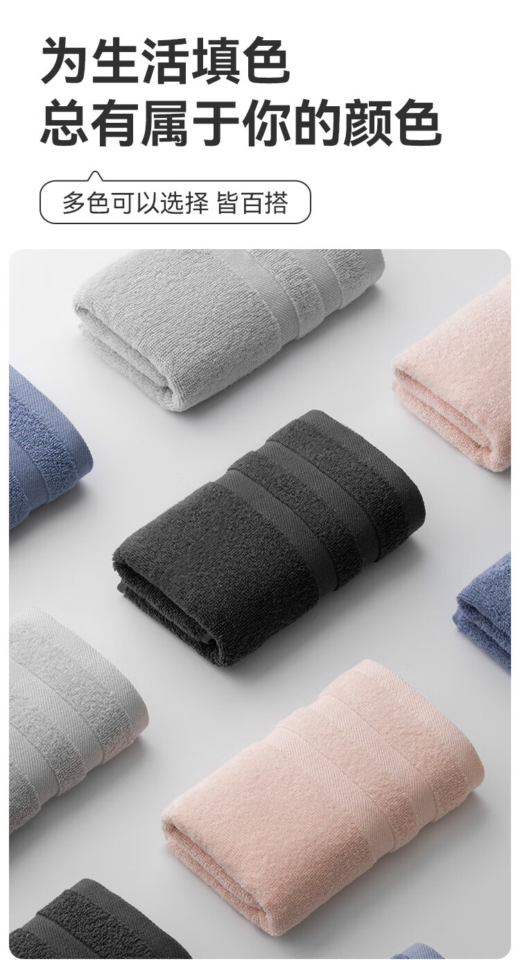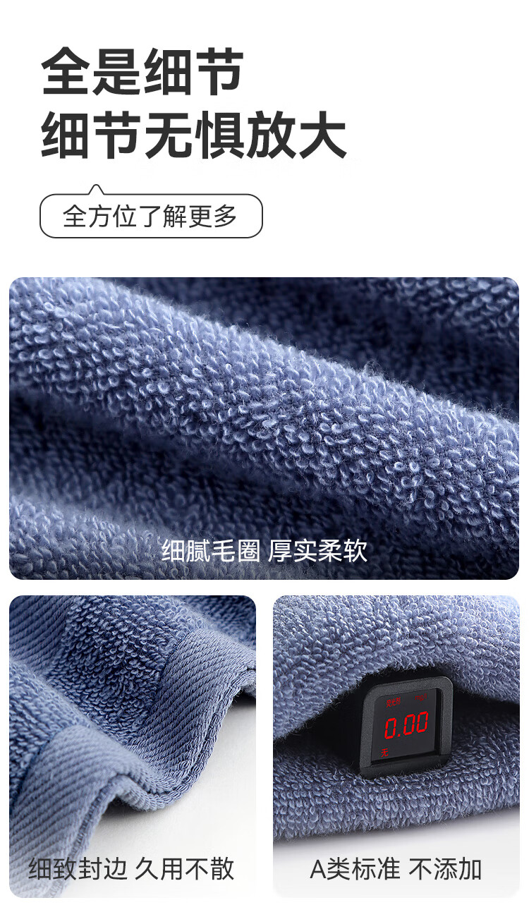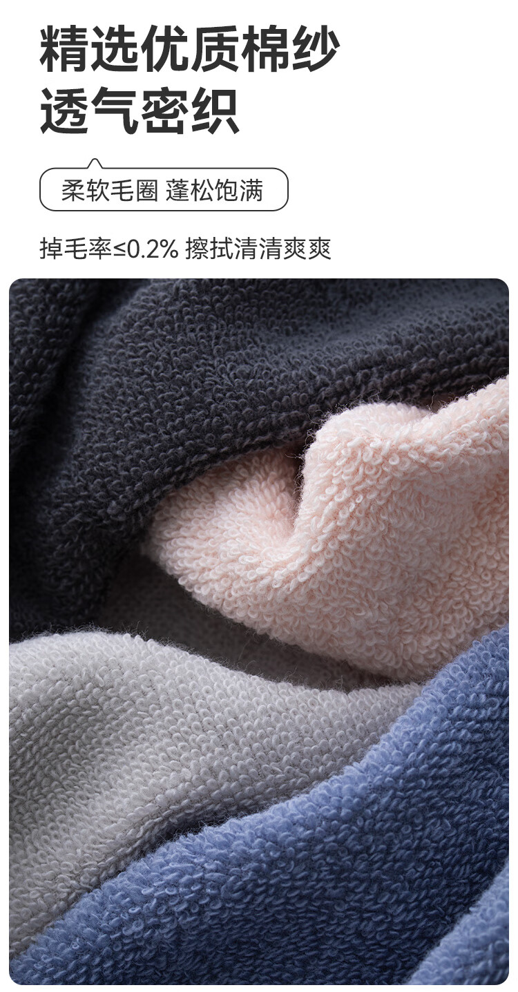 三利毛巾 7A纯棉抗菌毛巾加厚柔软顺滑吸水速干成人男女家用擦脸巾 深灰色+浅灰色 2条