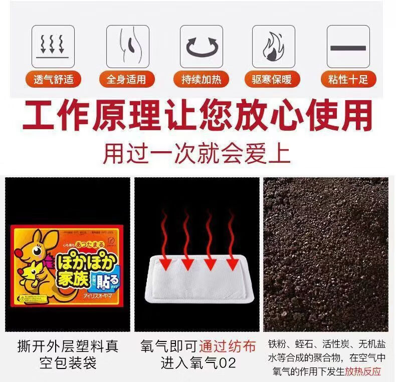 艾智元暖贴袋鼠宝宝贴防寒保温暖身贴足暖贴热敷腰腹部热帖自发热保暖贴 暖贴暖身贴100片