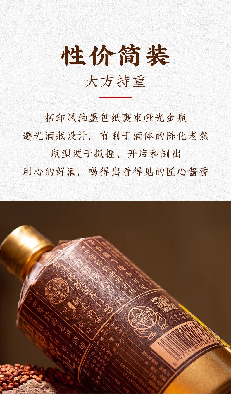 台甄贵州酱香白酒53度纯粮佳酿高粱坤沙老酒保价甄·叁拾保价 53%vol 500mL 6瓶