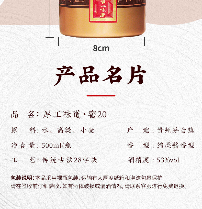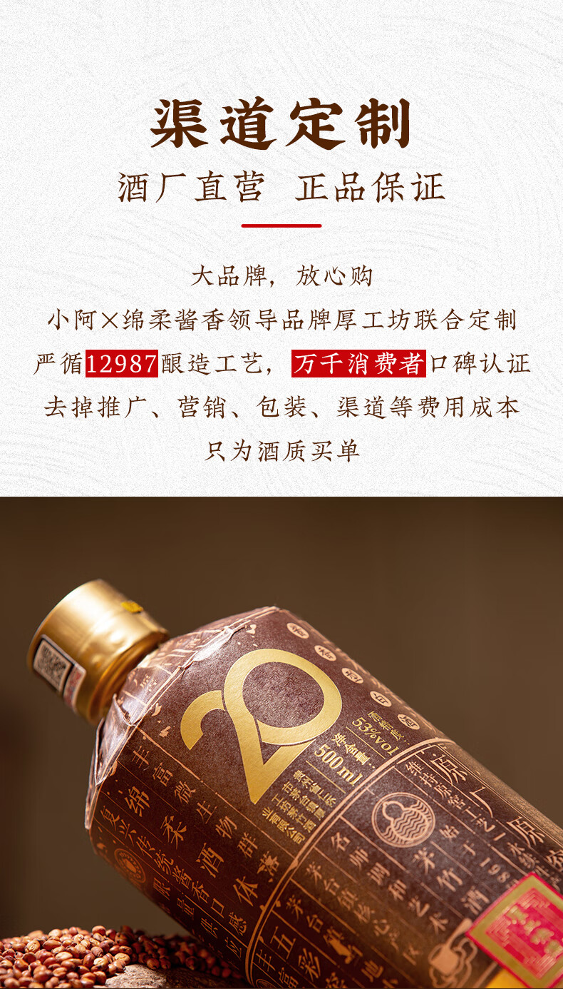 厚工坊厚工味道 窖20 贵州大曲坤沙酱香型53度白酒 熟龄老窖酿造 53度 500mL 6瓶 (窖20 单箱)