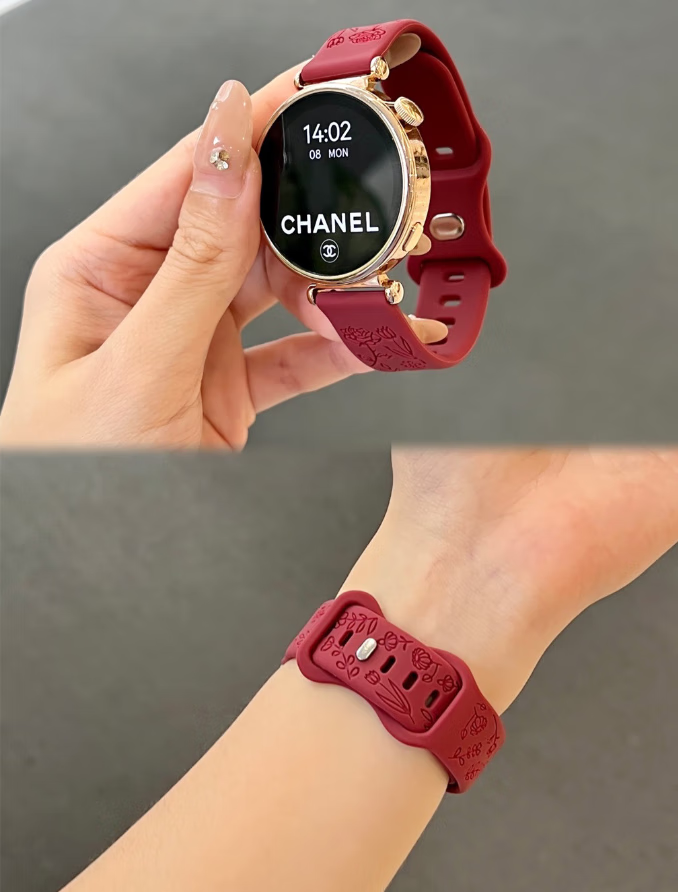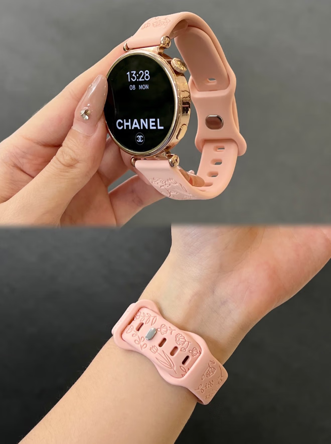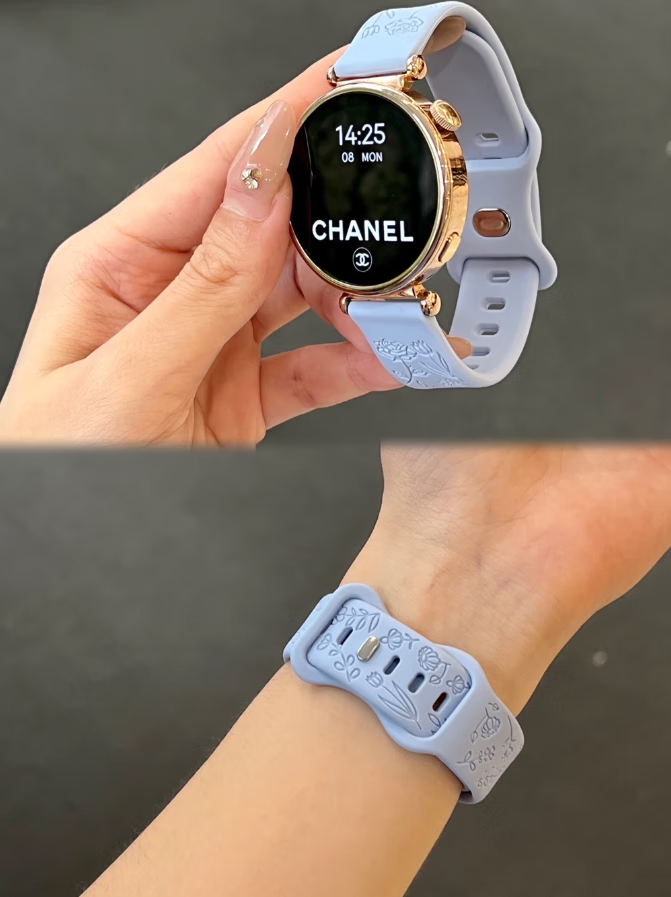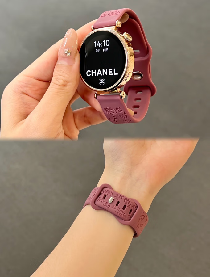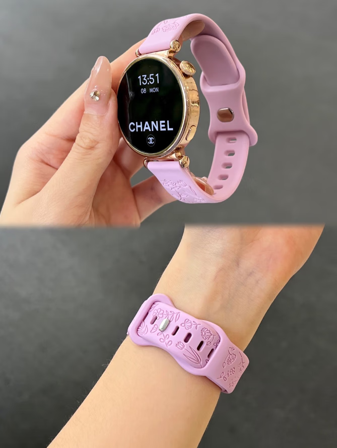 适用华为watch5表带新款浮雕花朵GT5女士夏季透气硅胶高级感表带 灰色 华为Watch5 42mm