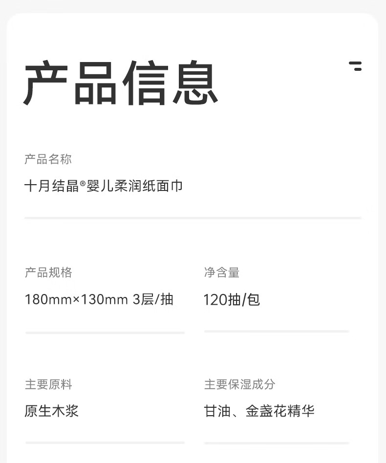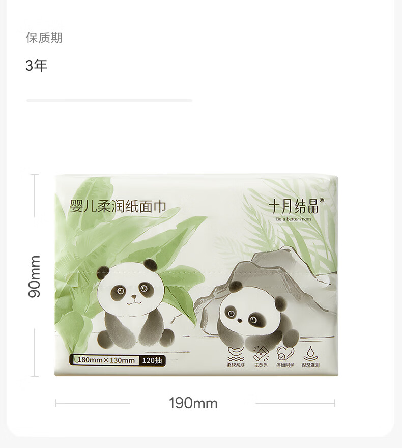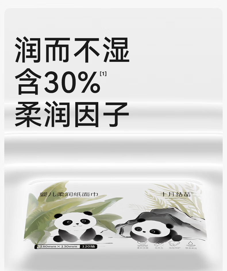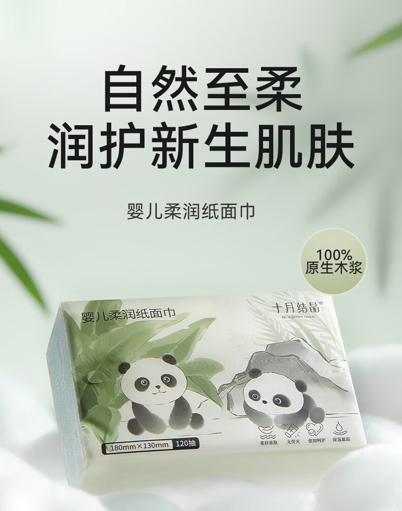 十月结晶婴儿纸巾云柔巾3层柔软婴儿抽纸宝宝乳霜纸 3层 120抽*5包 【加柔30%】
