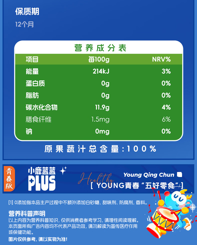 小鹿蓝蓝梨汁山楂汁清润5层保鲜材质不加香精色素防腐剂原果汁总含量100% 【膳食纤维果蔬饮】 125ml*12盒