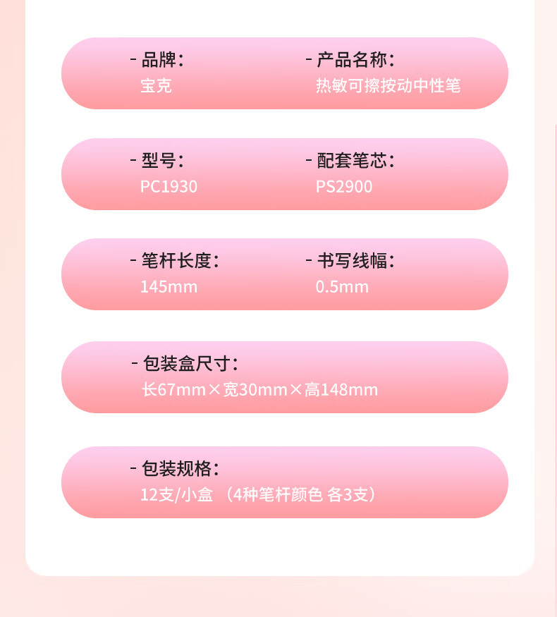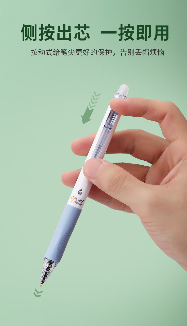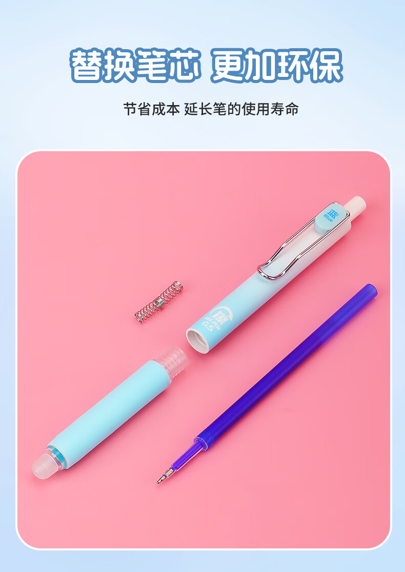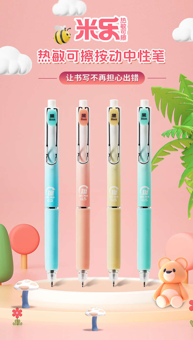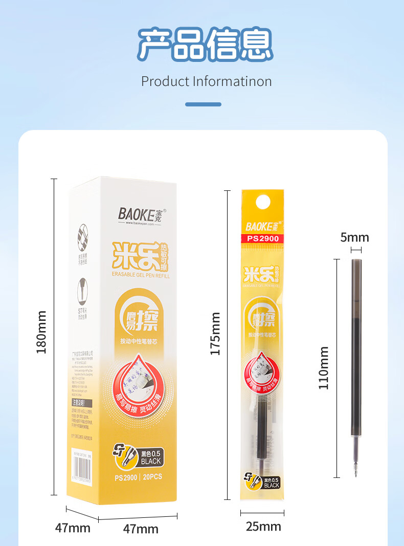 宝克(BAOKE)可擦按动中性笔0.5mm小学生专用三年级黑色水笔ST笔头热敏可擦笔可替换笔芯文具 黑色【可擦笔】PC1964 8支/盒可擦笔【囤货批发价】