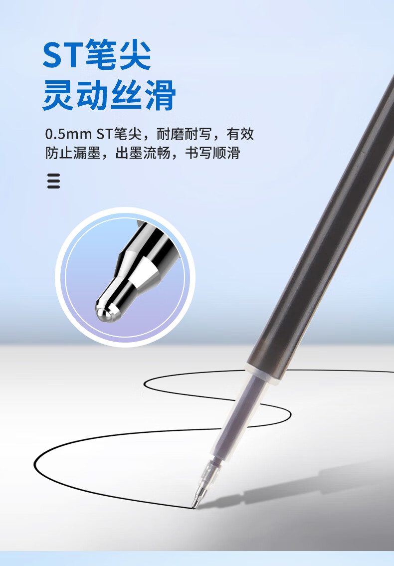 爱好(AIHAO) 爱好st笔头刷题笔纠错速干按动笔黑色水笔小学生专用签字笔走珠笔中性笔GP2345 GR1103原装配套笔芯黑色20支装