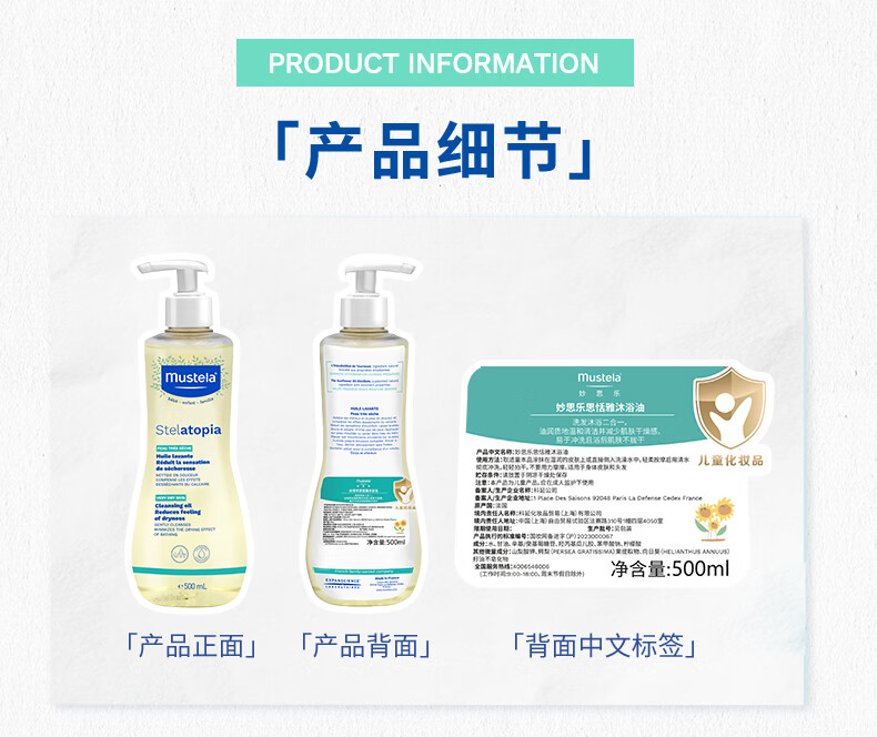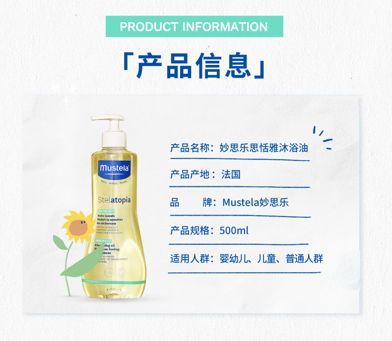 妙思乐思恬雅婴儿沐浴油500ml 儿童沐浴露无泪宝宝洗澡沐浴液 法国进口 思恬雅沐浴油500ml【敏感肌适用】
