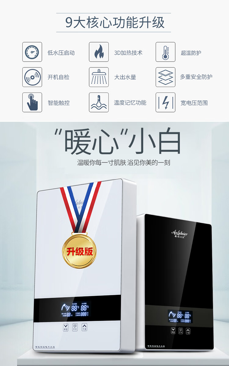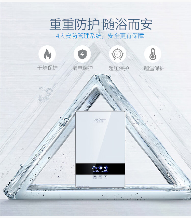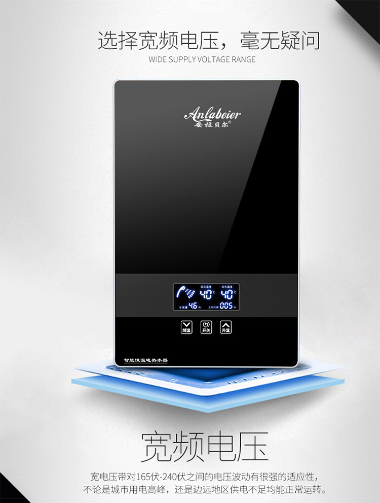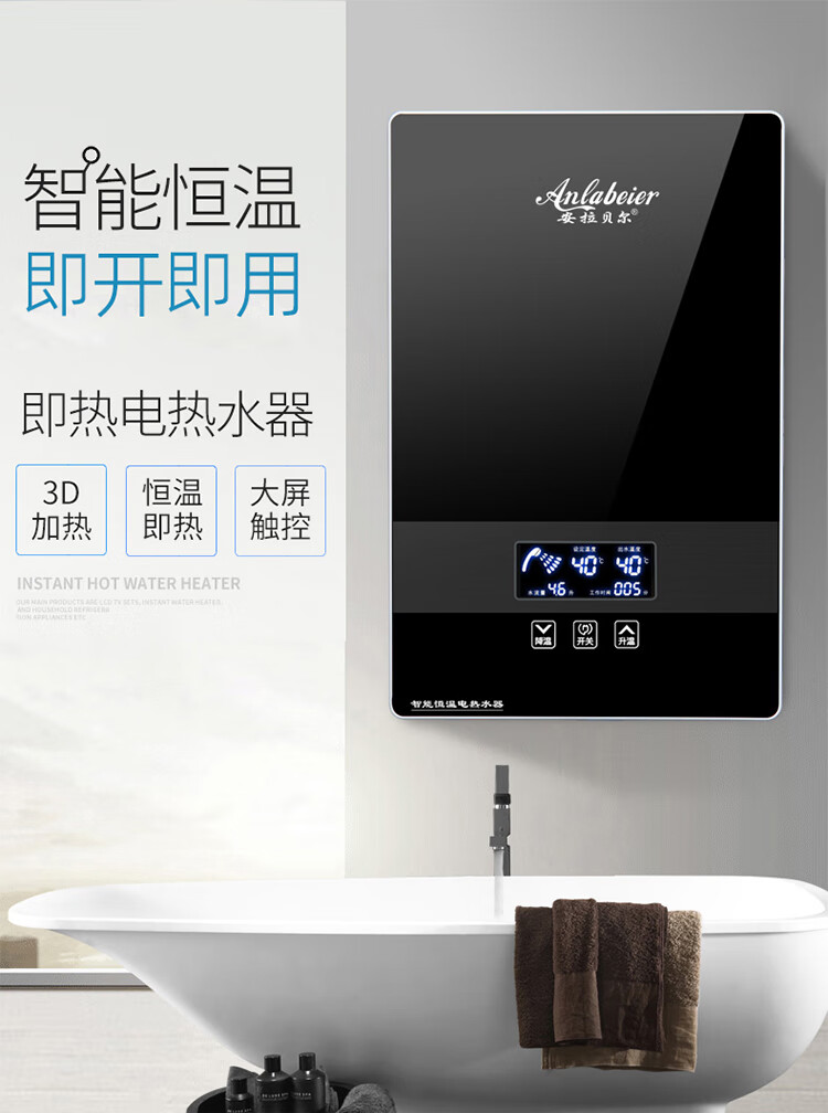安拉贝尔(anlabeier) 即热式电热水器家用智能恒温速热洗澡机快热式淋浴AL-AP 8000W 黑色(配空开套装)上门安装 上门安装
