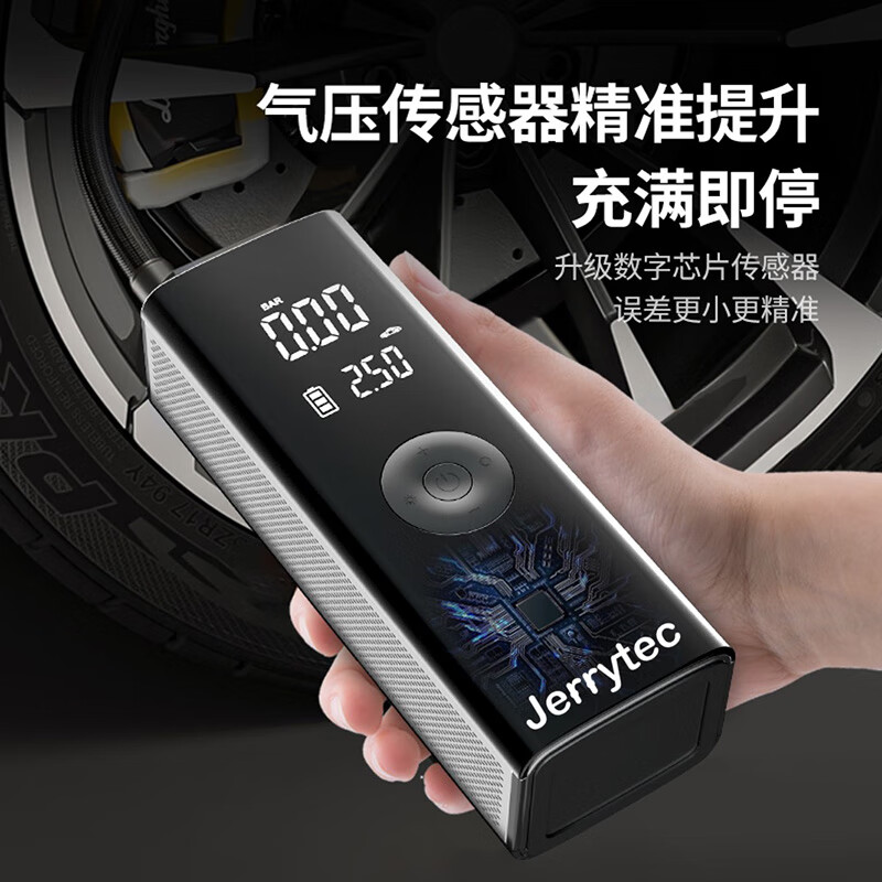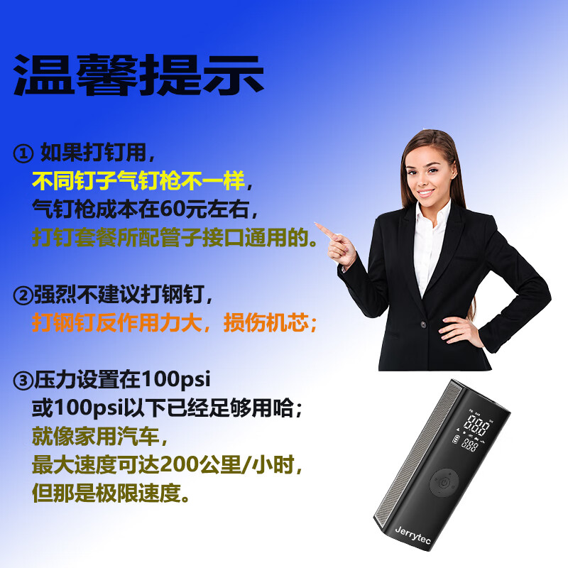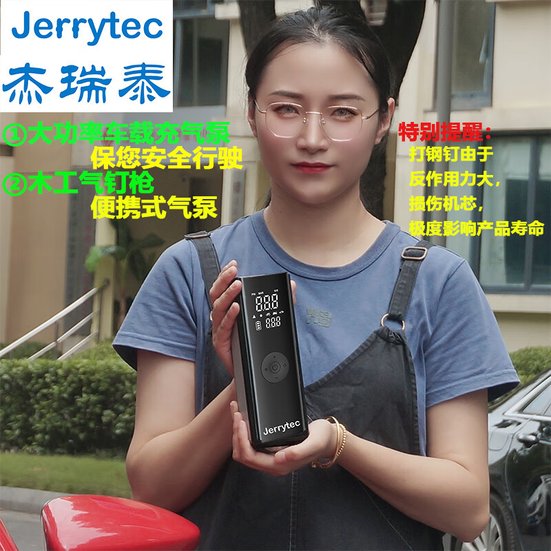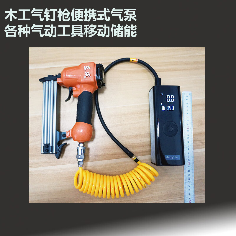 杰瑞泰(JERRYTEC)车载充气泵汽车打气泵木工气泵气钉枪预设胎压自动充停电动打气筒 打钉套餐-气泵+收纳袋+钉枪3米管